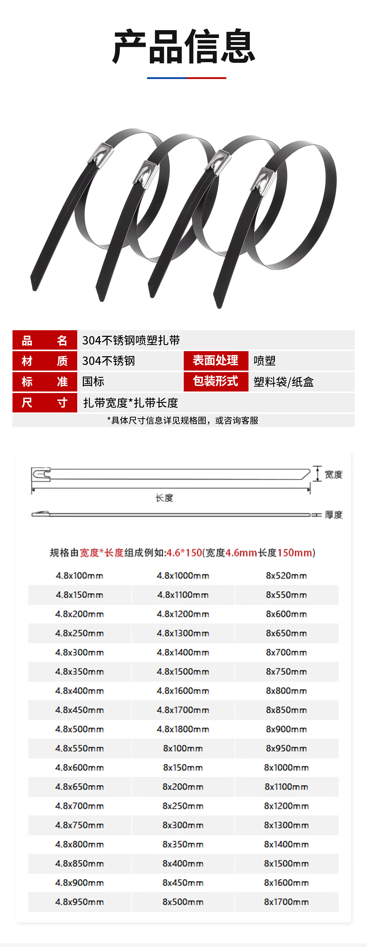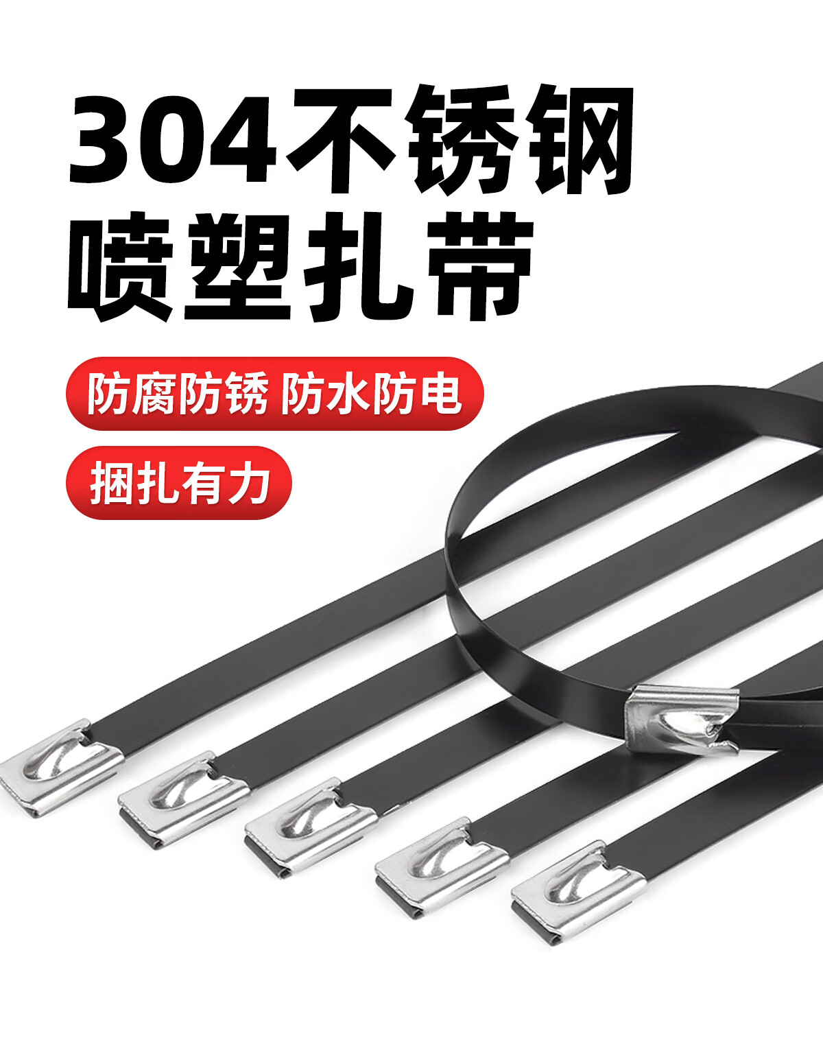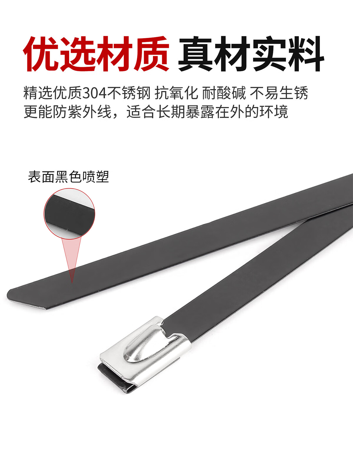 固万基(GUWANJI)304不锈钢喷塑扎带黑色扎带船用线绑金属防锈收紧束线卡扣4.8/8MM 4.8x100mm[100条]