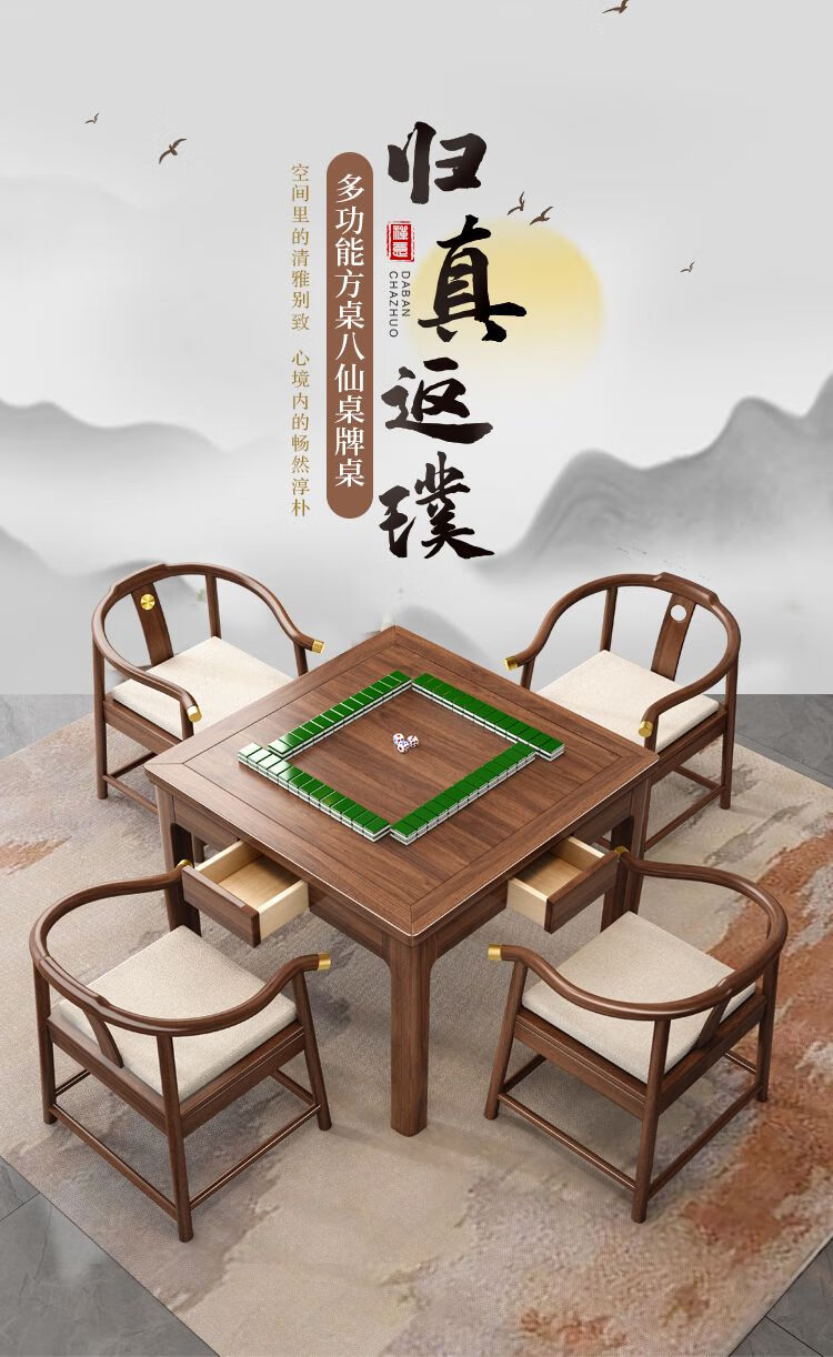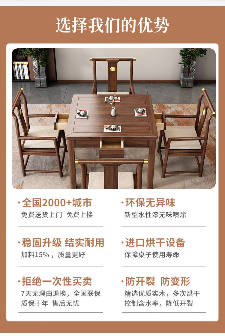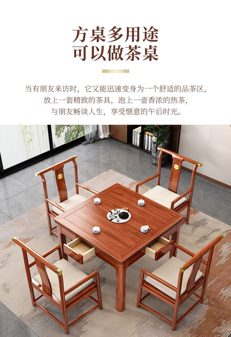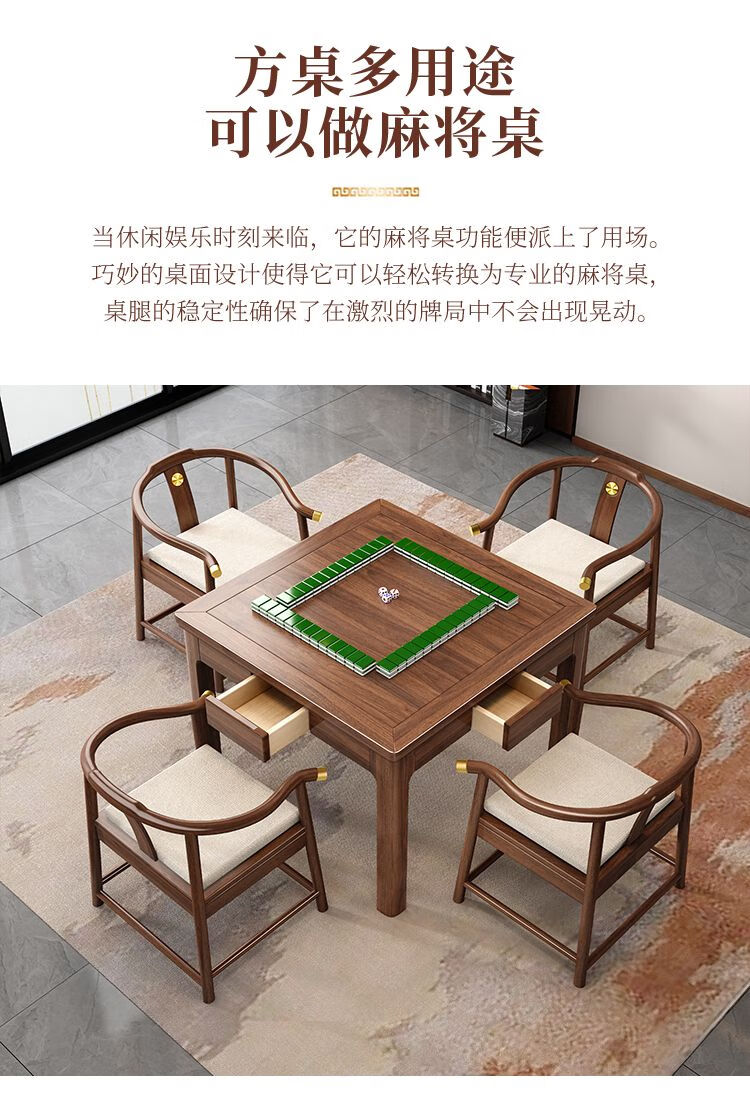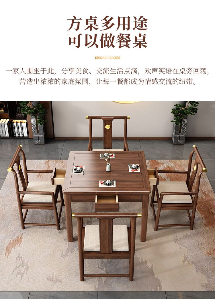 倘然之家实木茶桌桌椅组合掼蛋打牌小型方桌正方形棋牌中式餐桌八仙桌家用 胡桃色单桌(脚加厚7cm) 90*90*78cm