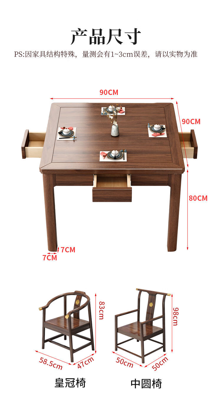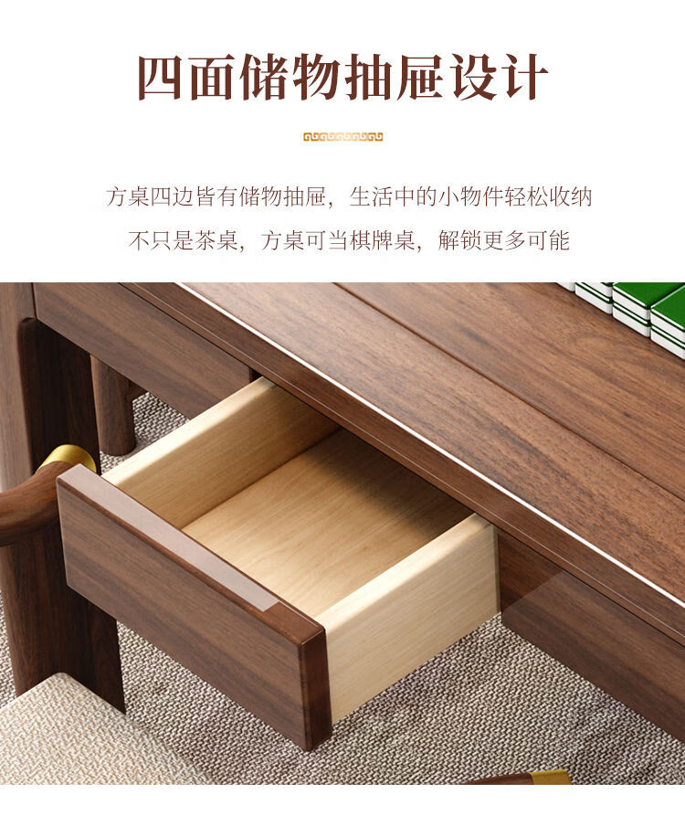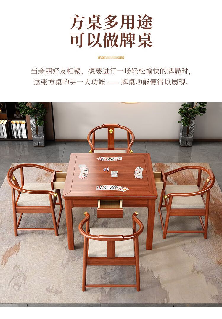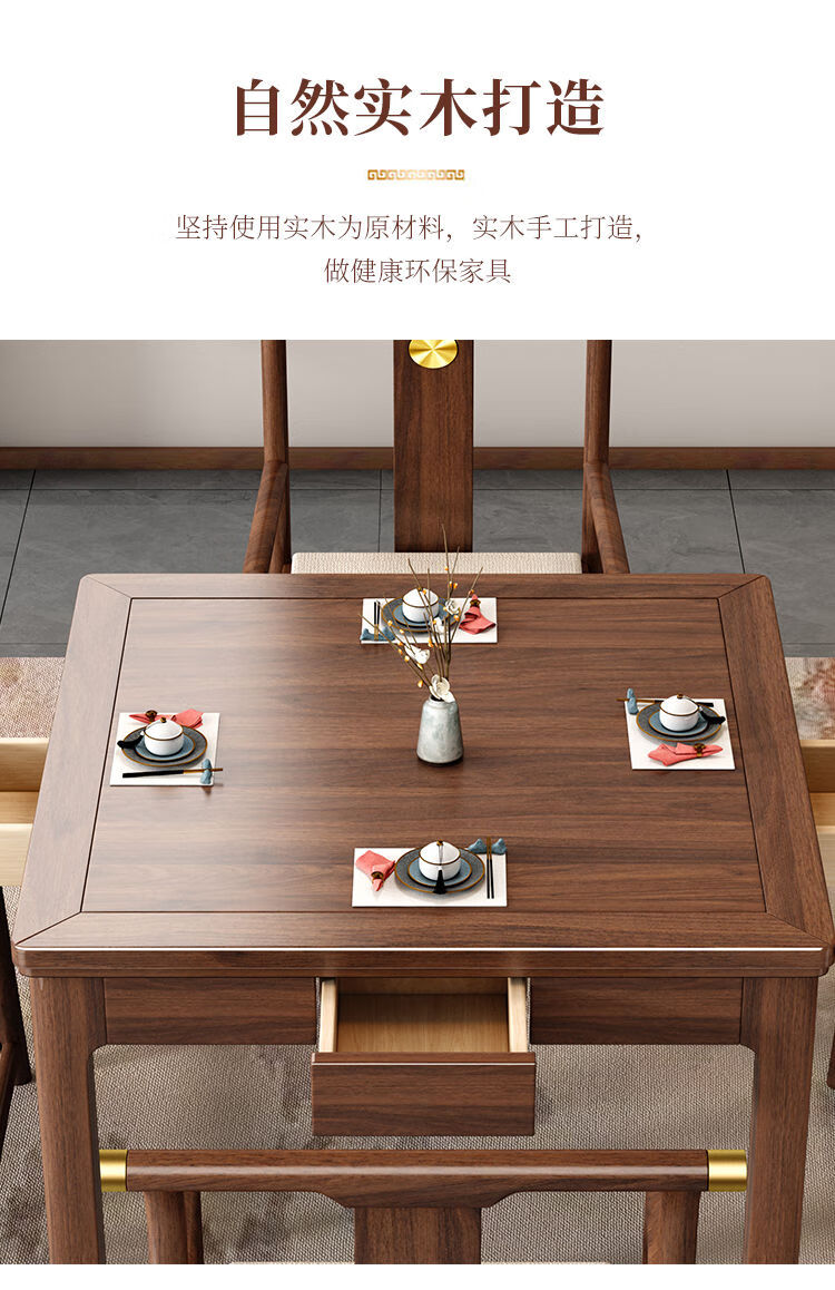 倘然之家实木茶桌桌椅组合掼蛋打牌小型方桌正方形棋牌中式餐桌八仙桌家用 胡桃色单桌(脚加厚7cm) 90*90*78cm