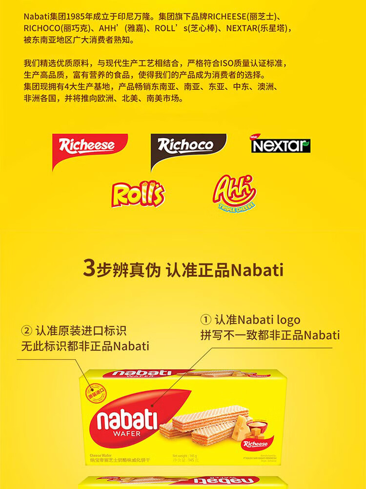 丽芝士(Richeese)纳宝帝印尼进口威化饼干巧克力味145g/盒休闲零食 早餐代餐送礼