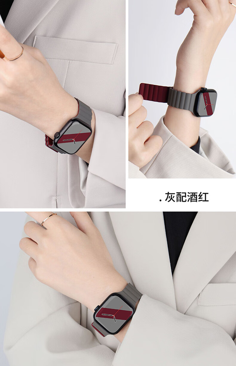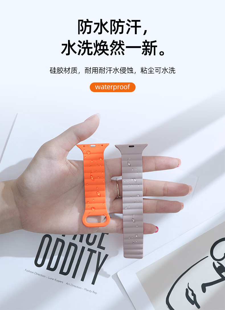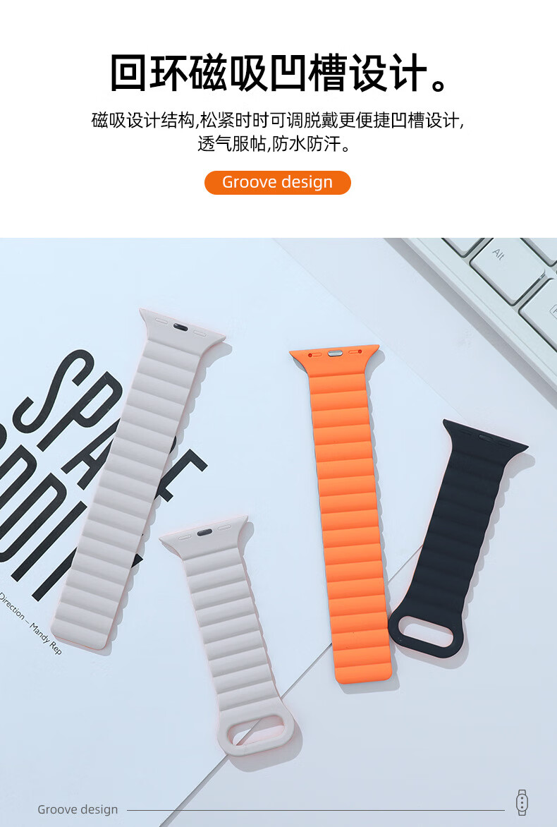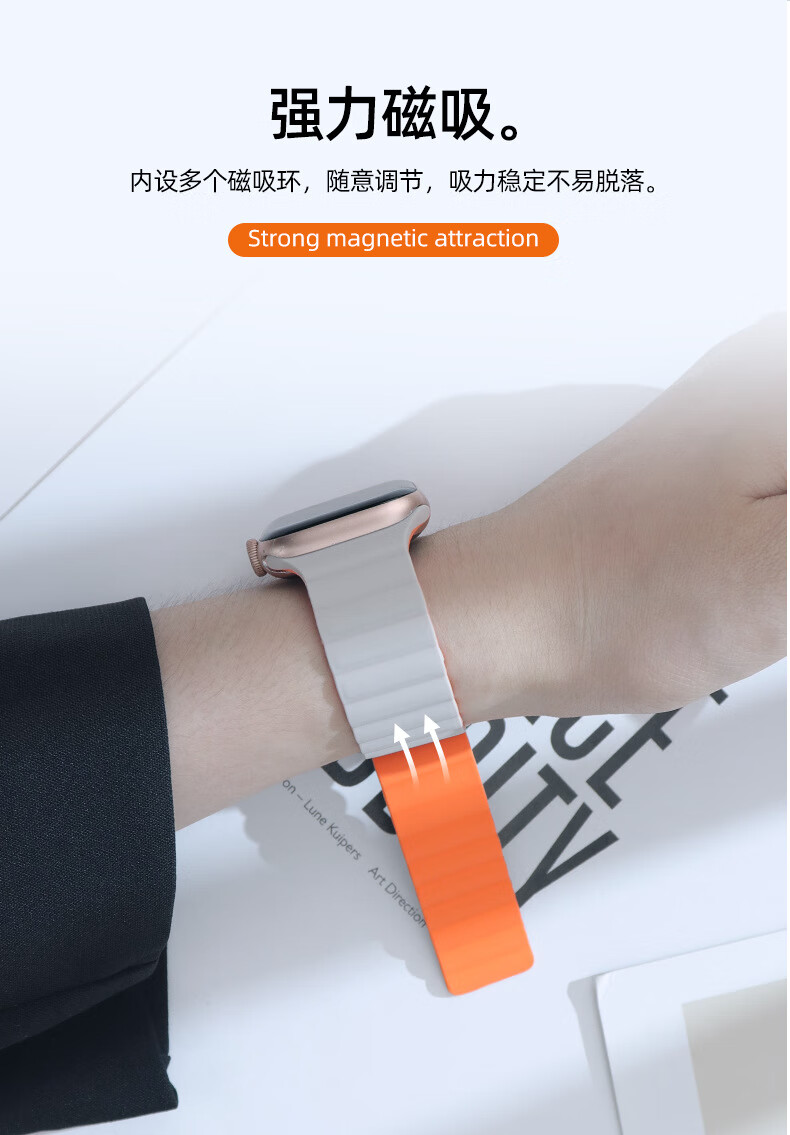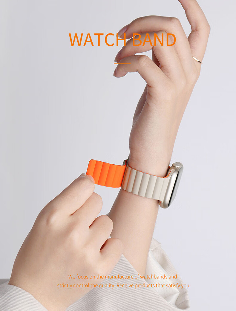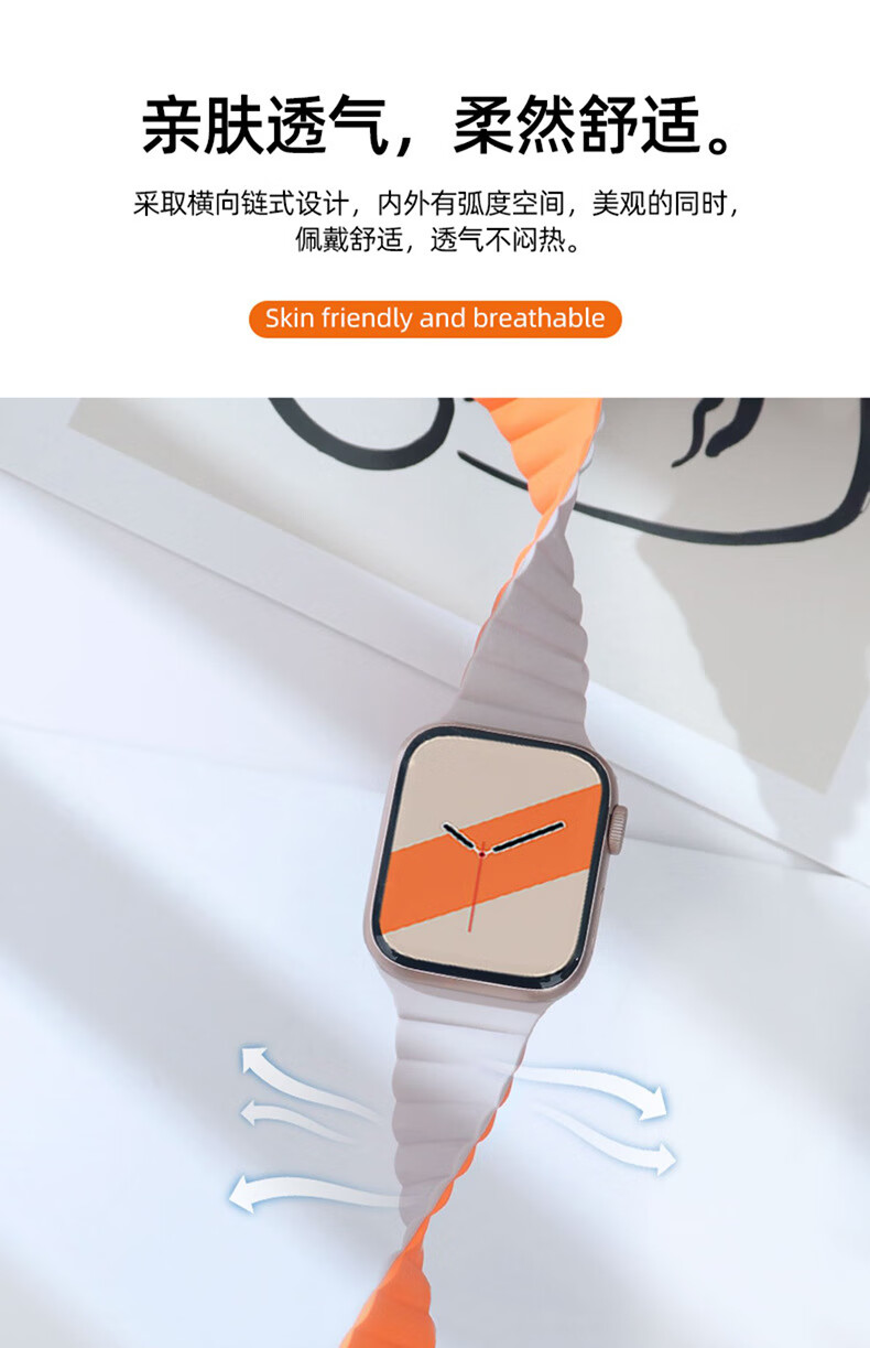 适用苹果手表表带appleiWatchs98se手表带765ultra2硅胶磁吸表帯 星光配橙 42444549mm
