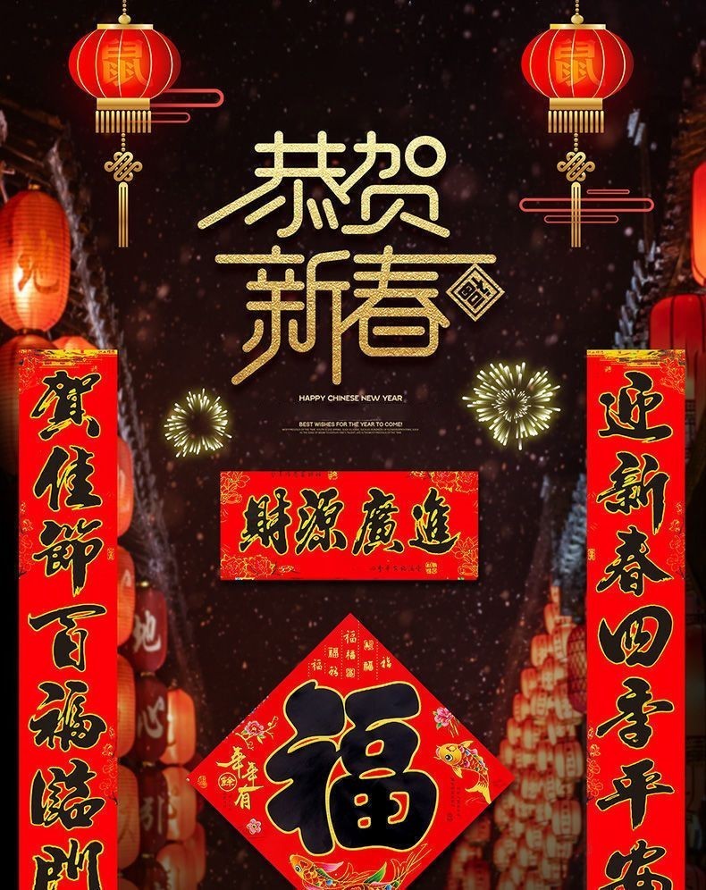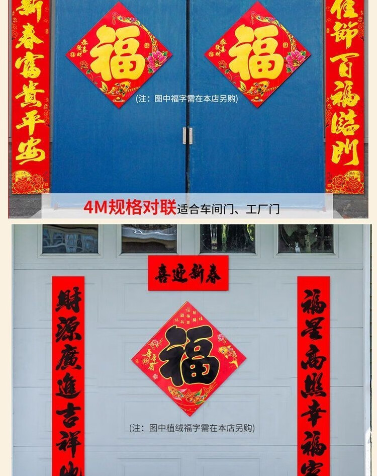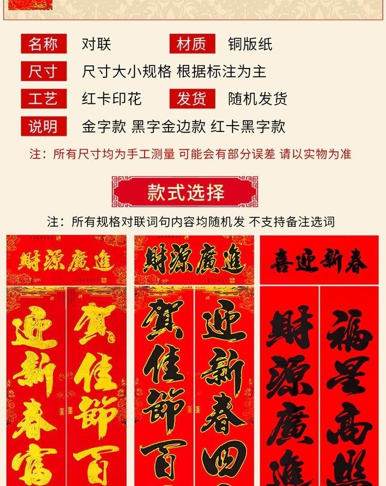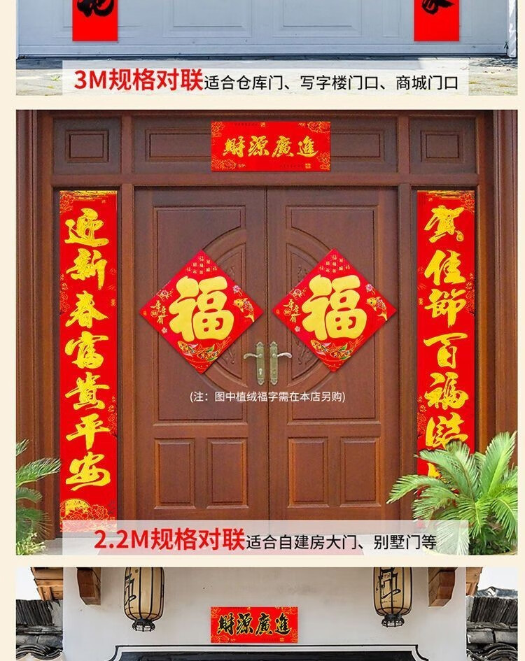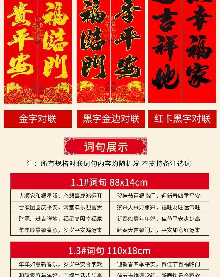 对联家用过年高档烫金新春布立体春联农村大门贴装饰福字2026新款 盒装金字植绒-高档红卡纸【词句随机】 1.3米【实际尺寸110*18cm】