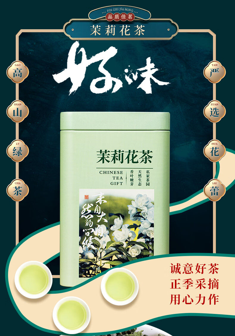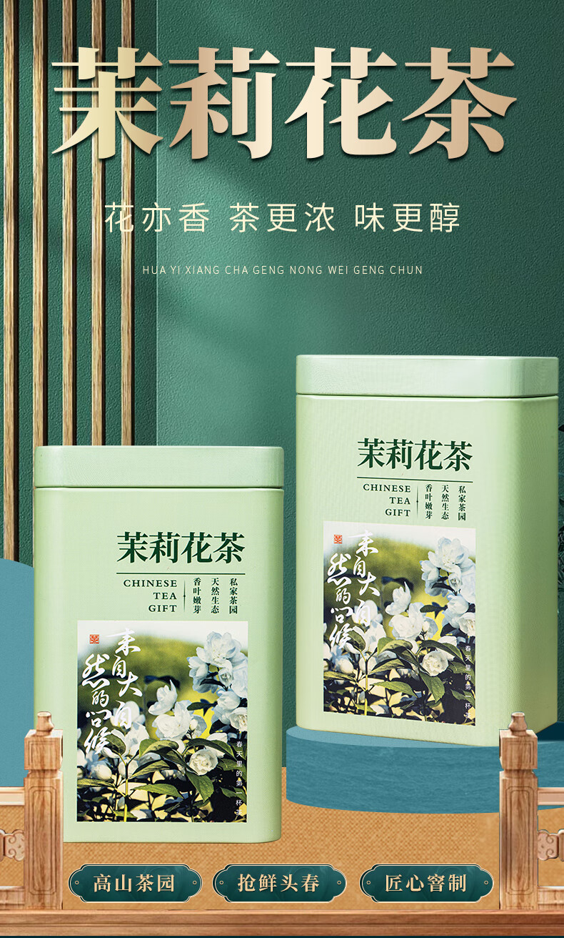 茶成道 广西横县一级茉莉花茶茉莉绿茶 2025年新茶叶 花香怡人 铁罐装 (200克)100克*2罐