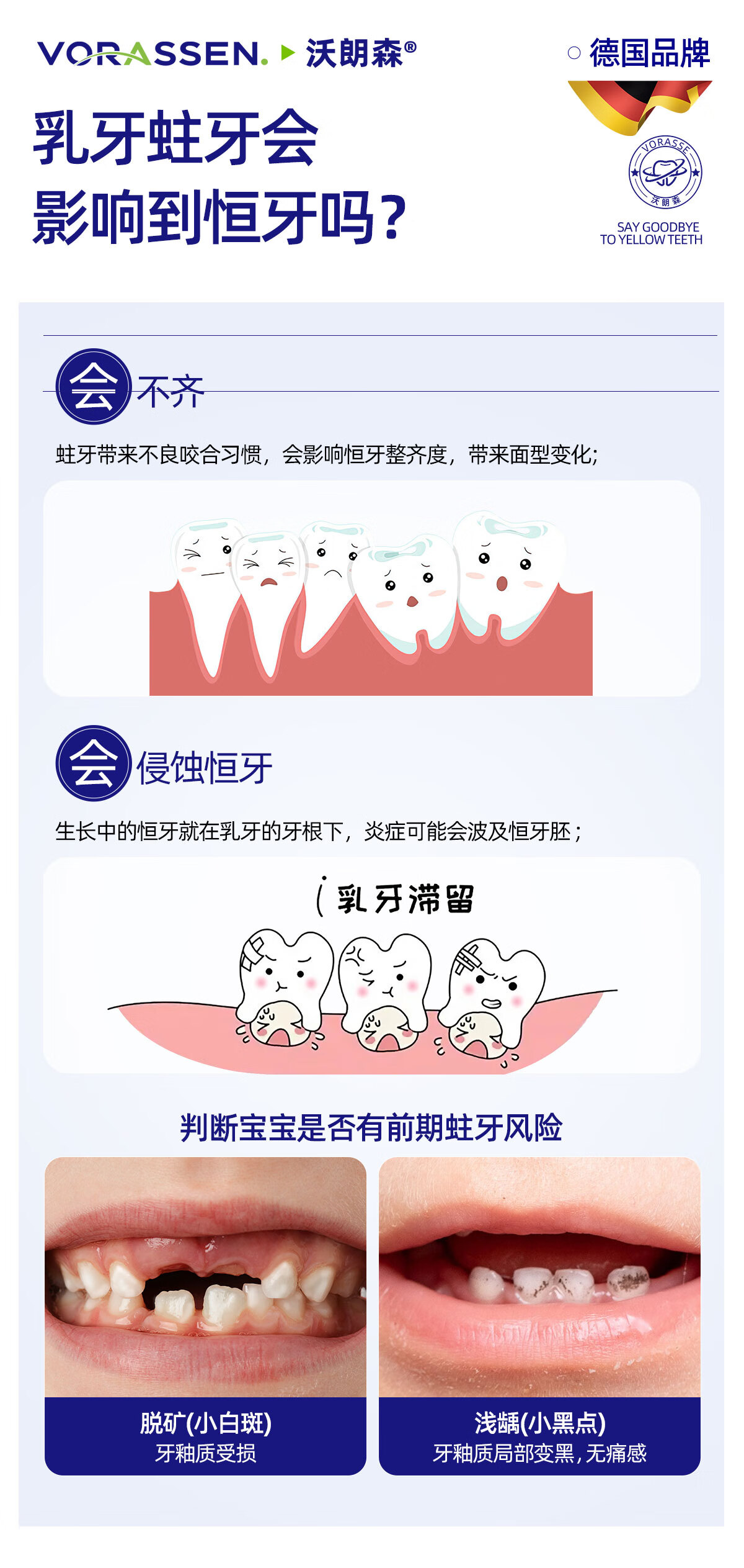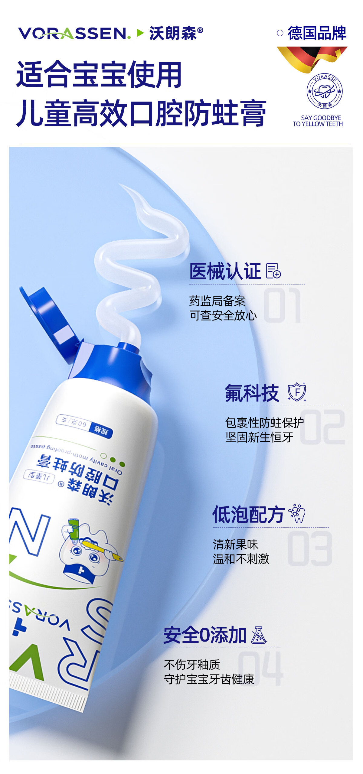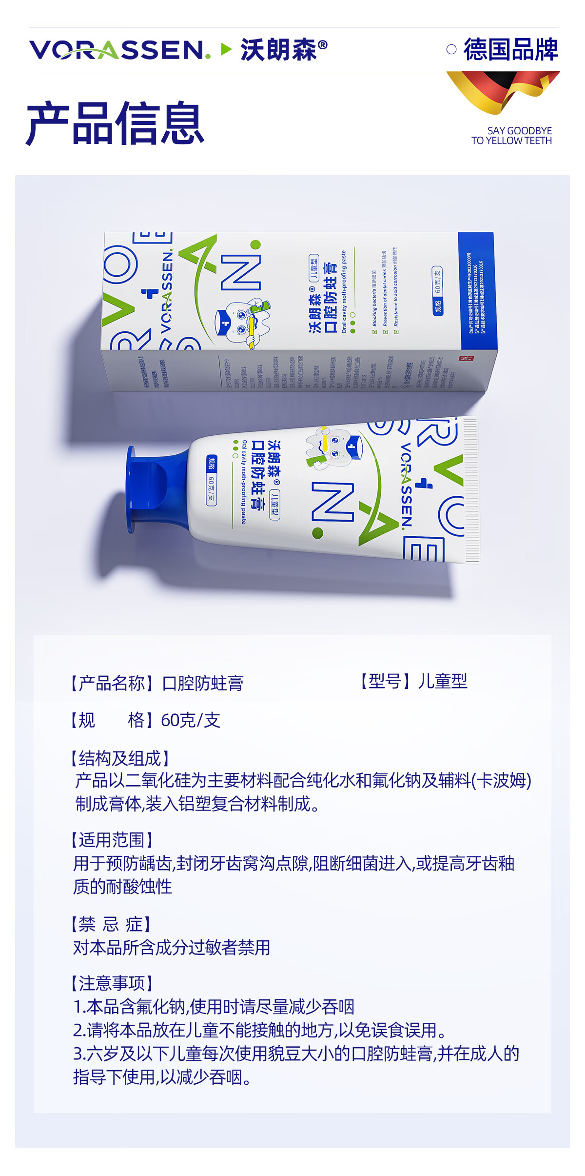沃朗森儿童牙膏状3-6-12岁防蛀含氟10-15岁青少年初中生除牙菌斑换牙期蛀牙洞修复龋齿抗糖消炎小学生小孩烂牙专用