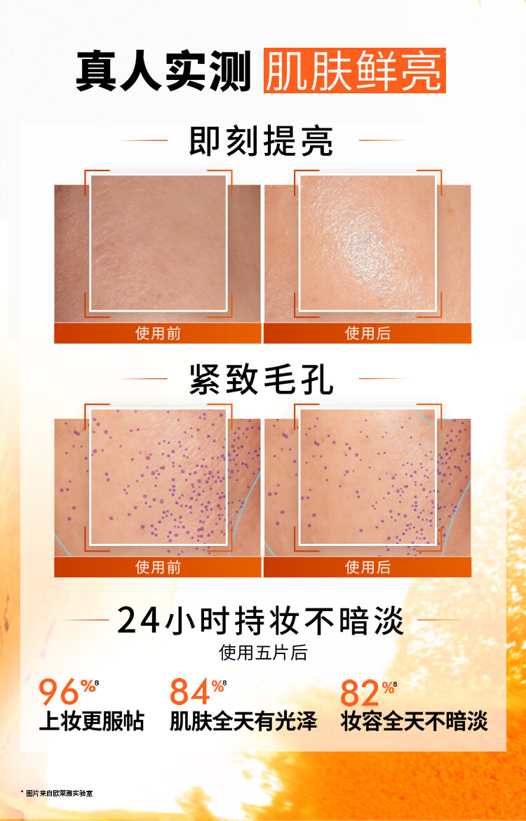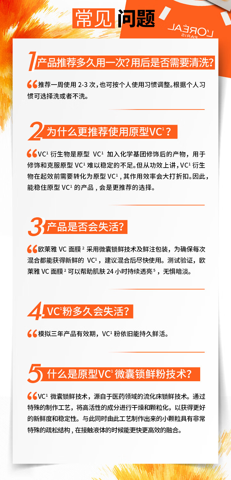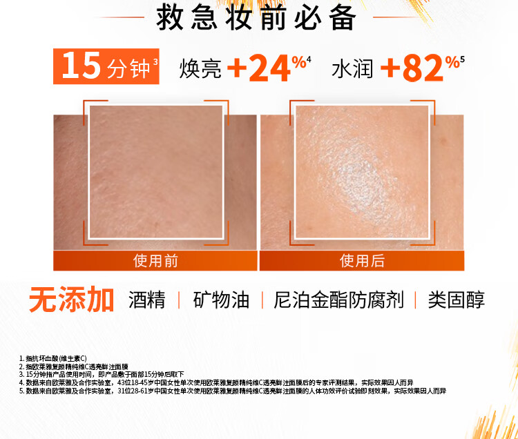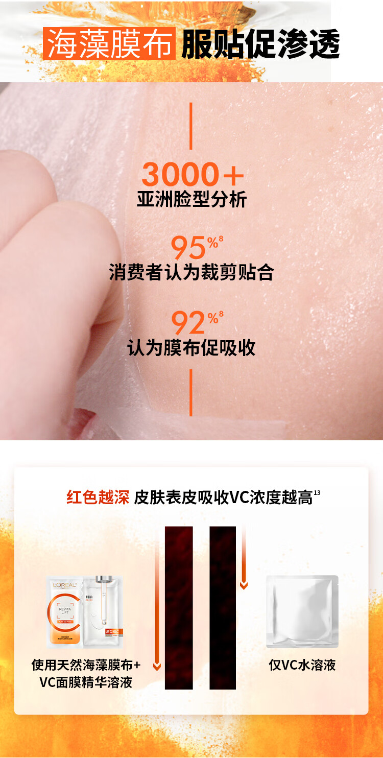 欧莱雅复颜VC面膜补水5片维C玻尿酸保湿抗皱提亮护肤品圣诞礼物