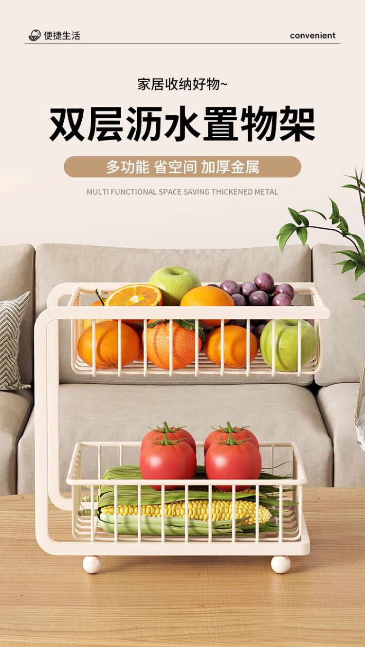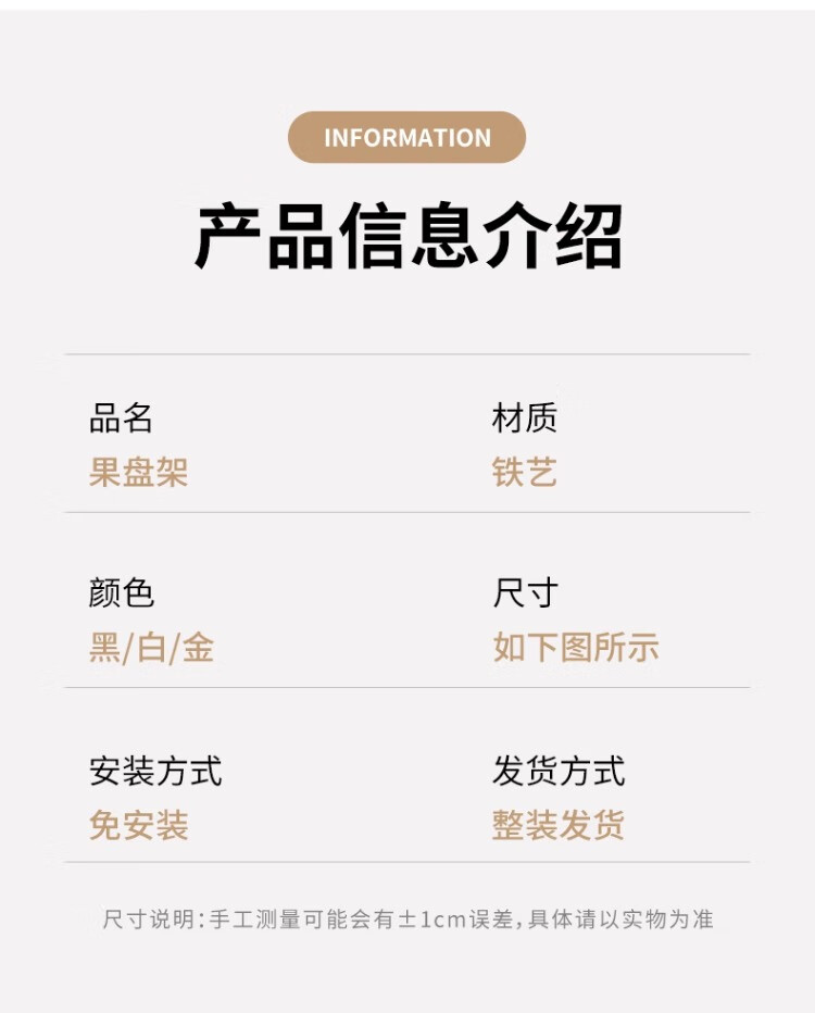 尔思家果盘客厅茶几家用水果盘多层水果收纳筐轻奢高档置物架零食摆放盘 白色