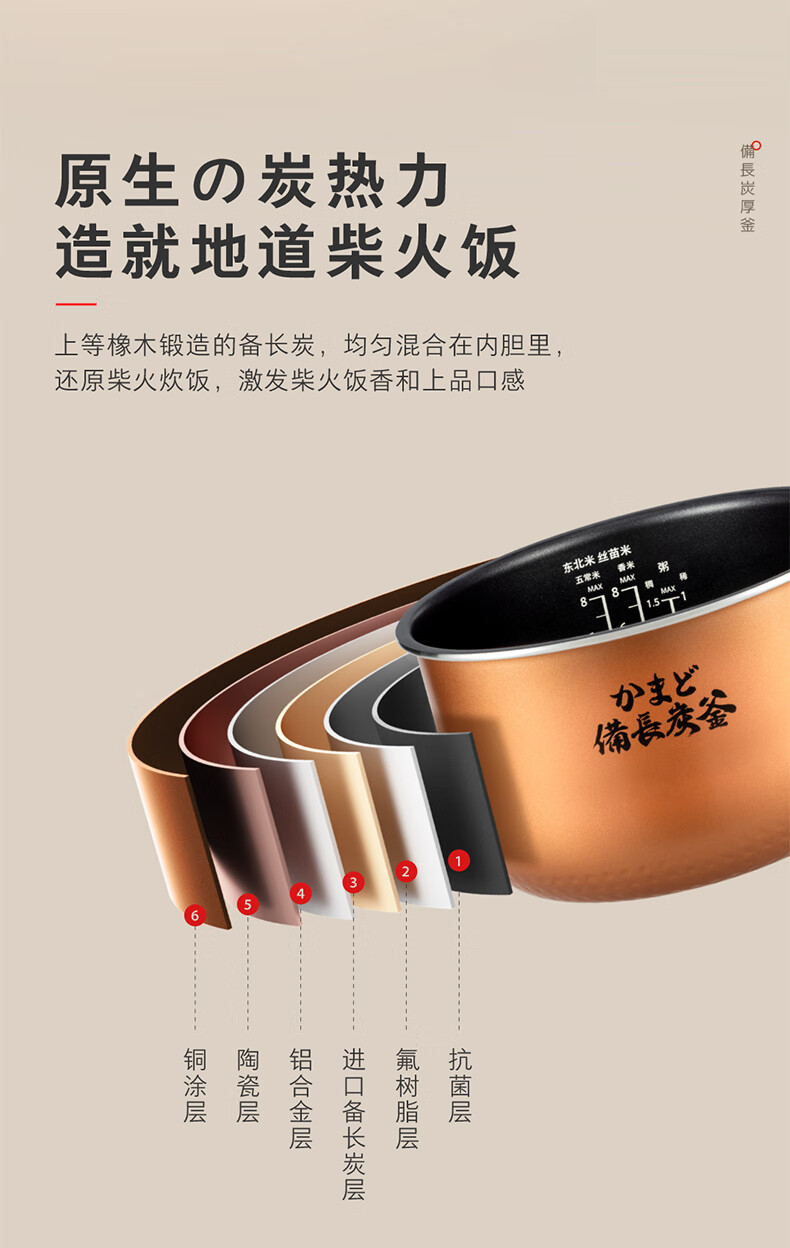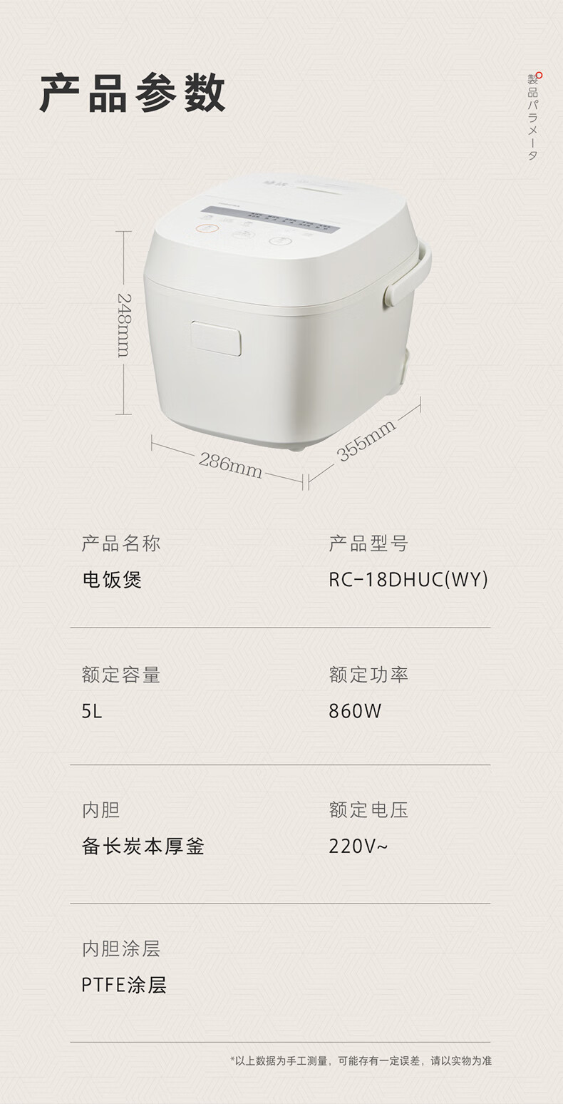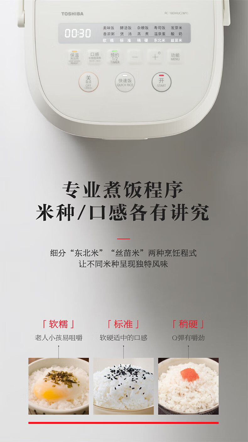 东芝(TOSHIBA)鲜米电饭煲4-5人 变温醒米技术家用不粘智能预约5升备长炭电饭锅三维立体加热RC-18DHUC(WY)