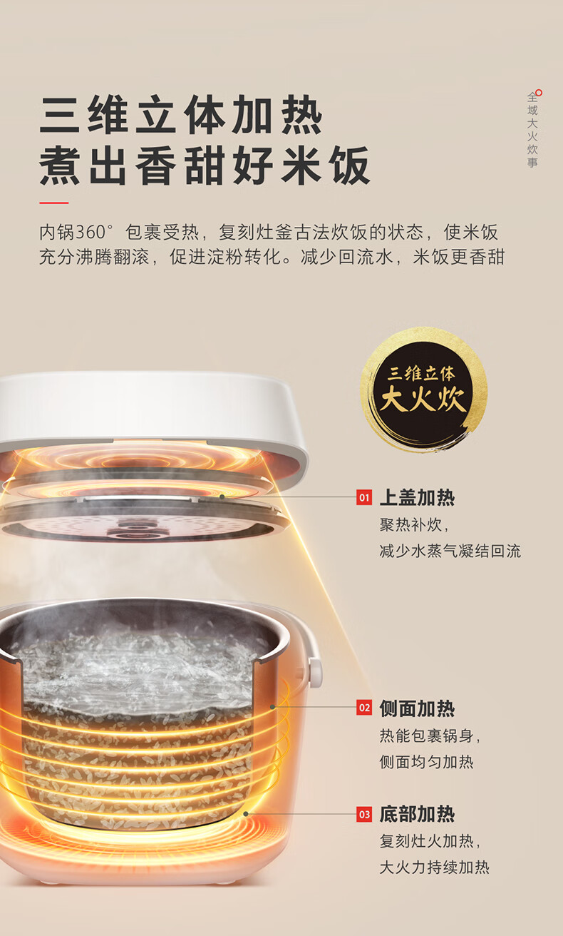 美的(Midea)家用电饭煲电饭锅1-2-3-4人用柴火饭不粘锅 3升4升迷你小型智能微压焖香煮饭小米粥电饭煲蒸煮一体 【25年节能款】微压焖香 3L
