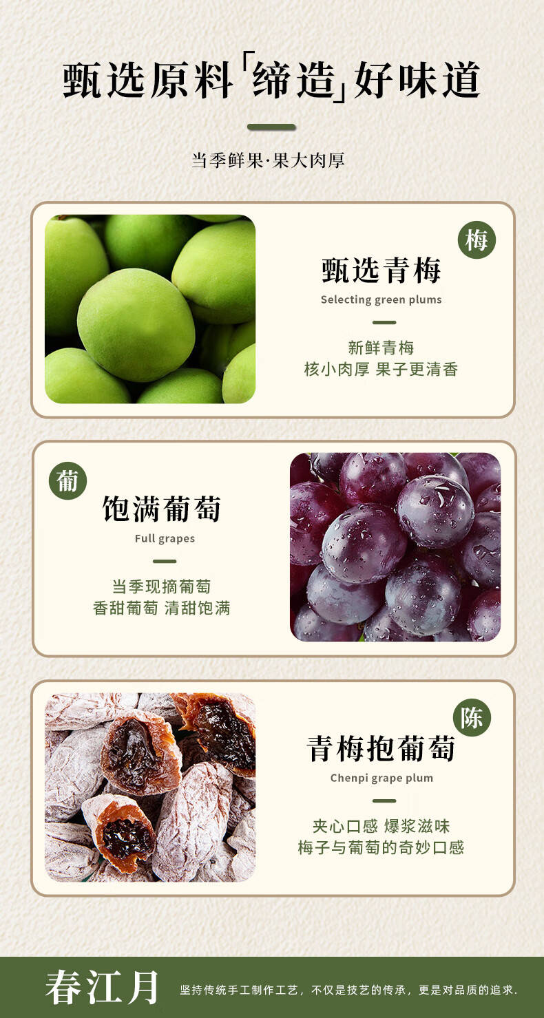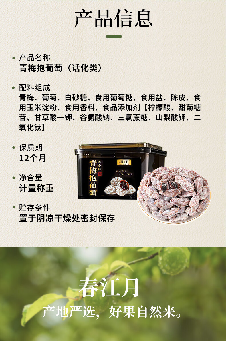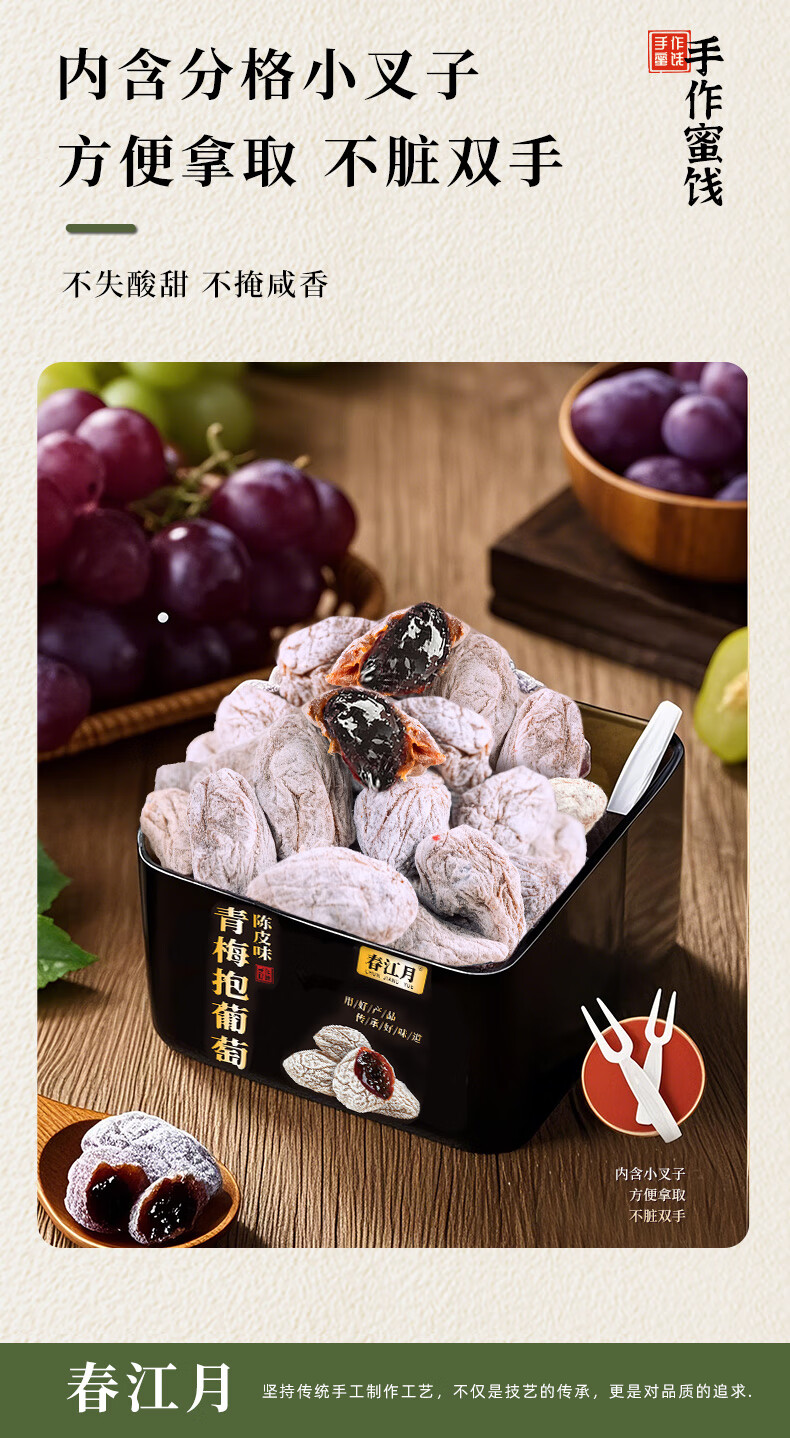 春江月青梅抱葡萄516g酸梅话梅肉梅子大杂烩陈皮葡萄梅果粒梅爆浆梅子干 青梅抱葡萄100g*1袋酸甜解腻