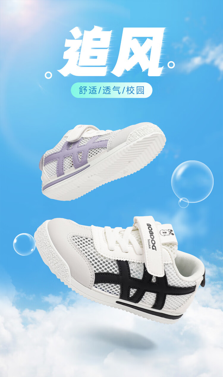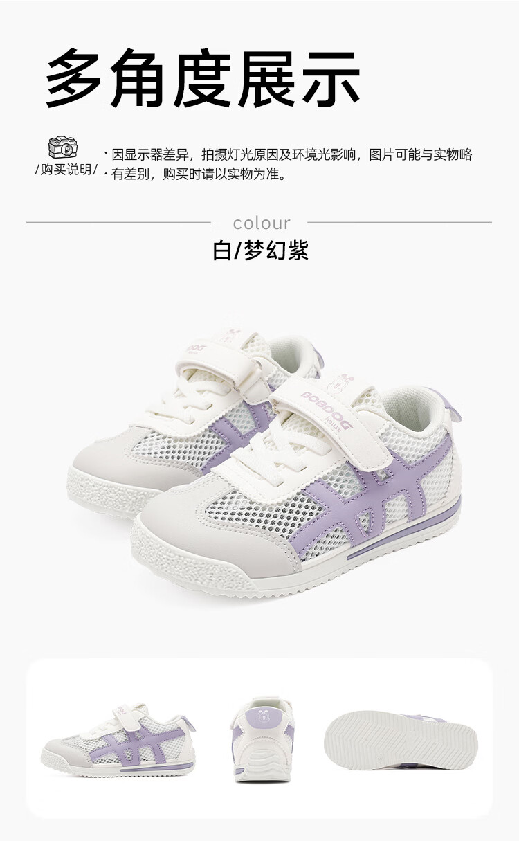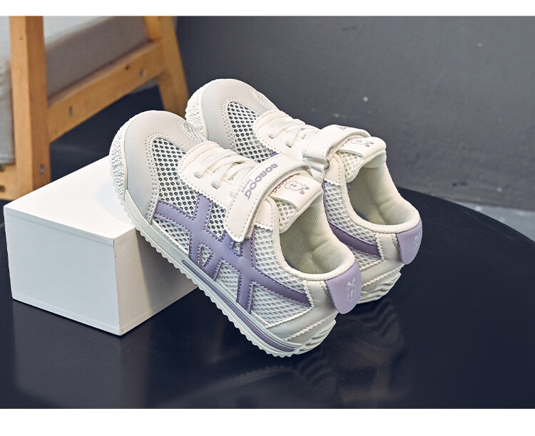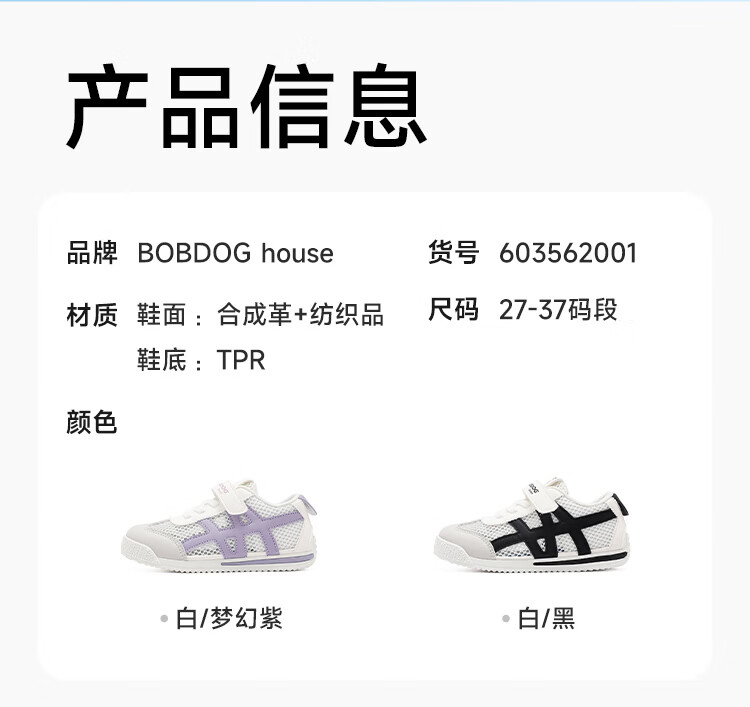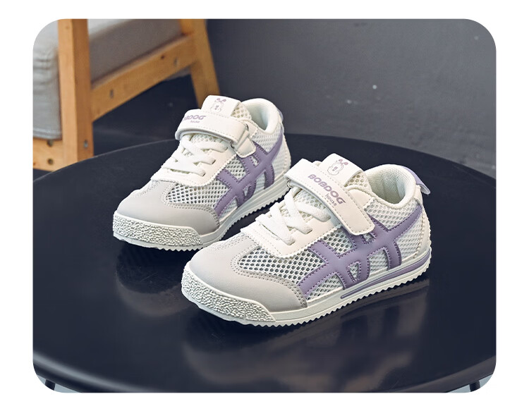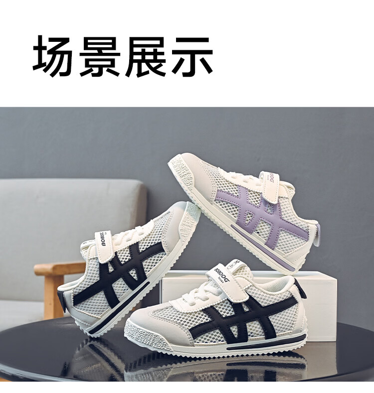 BOBDOG house童鞋2026夏季网面德训鞋女孩低帮儿童运动鞋男童休闲鞋子跑步鞋 白/黑 34 适合脚长21.0cm