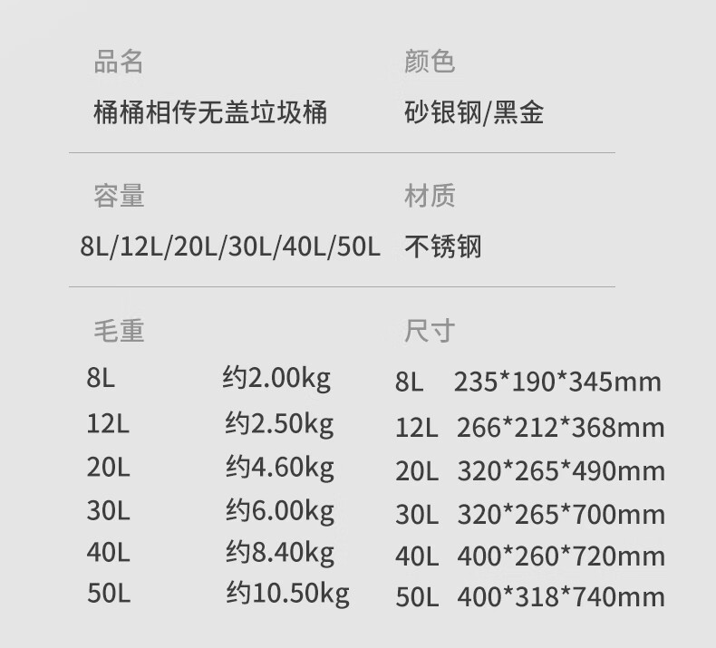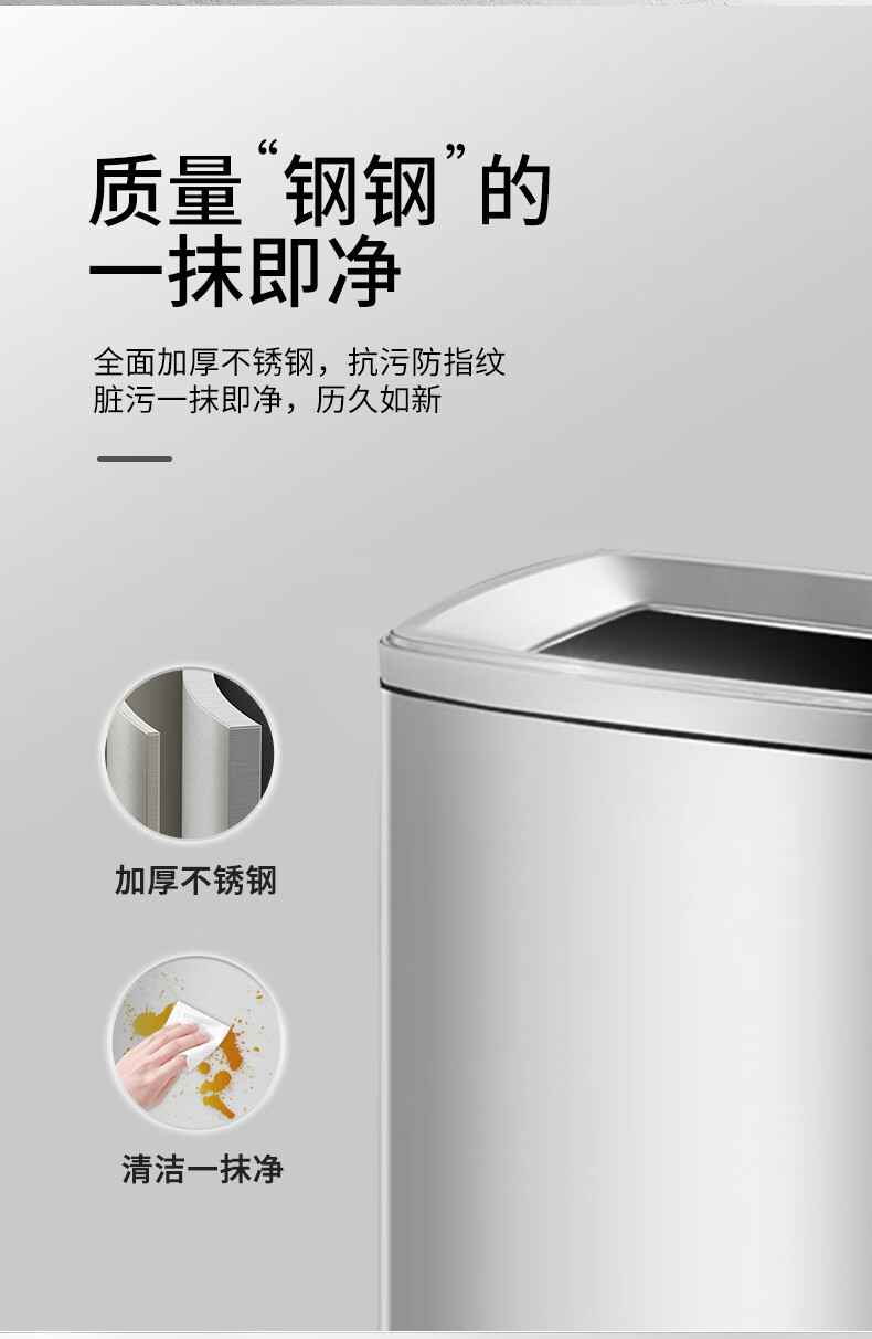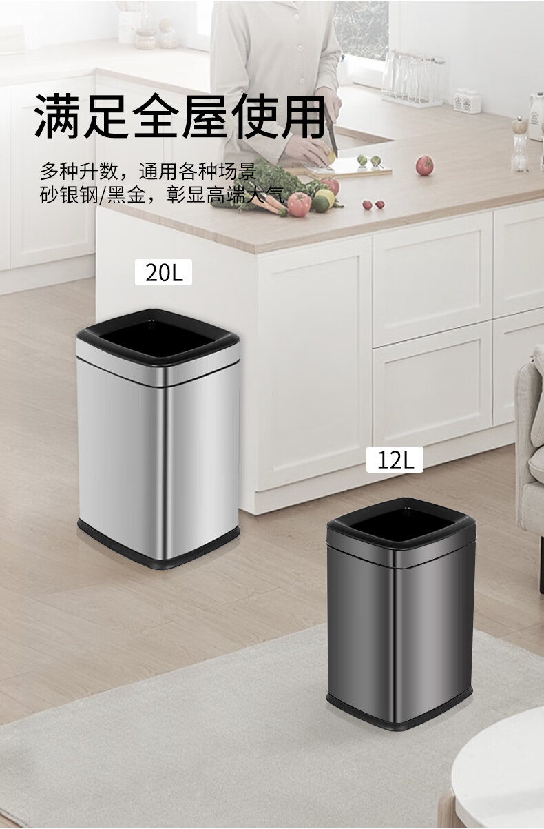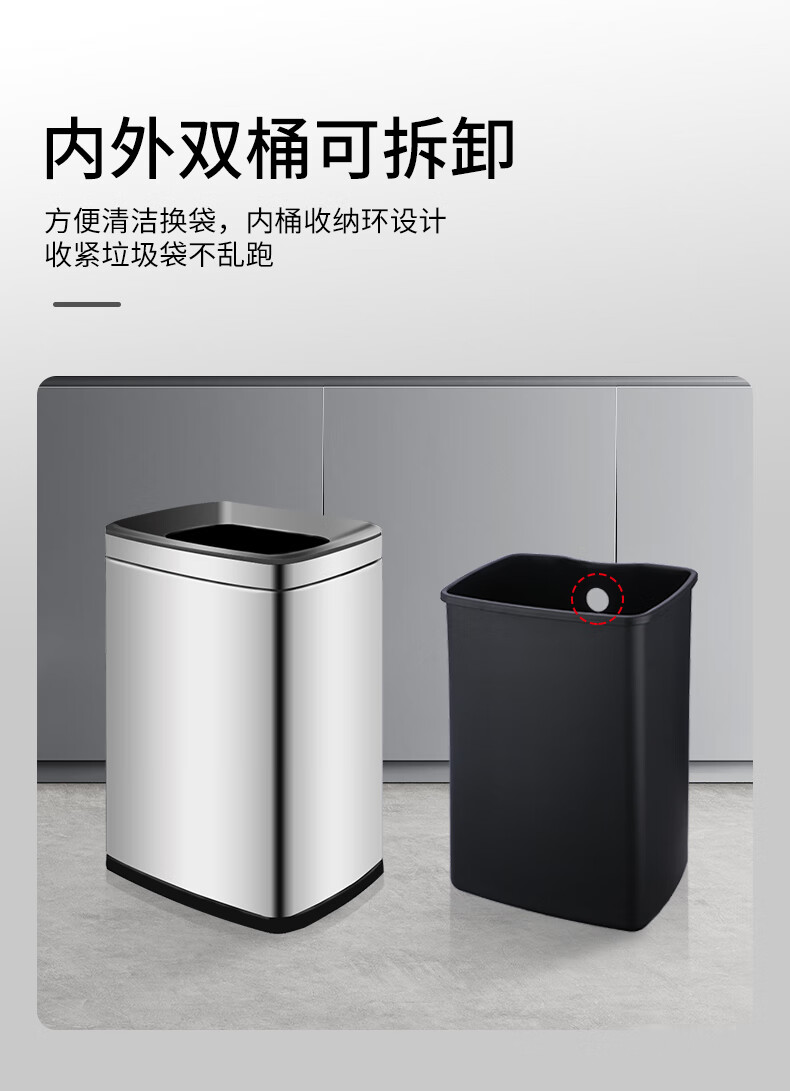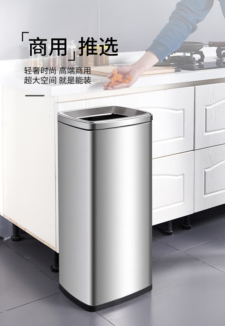 桶桶相传不锈钢分类垃圾桶家用商用无盖客厅厨房卧室酒店卫生间办公室大号 100L黑金分类款(50L+50L)