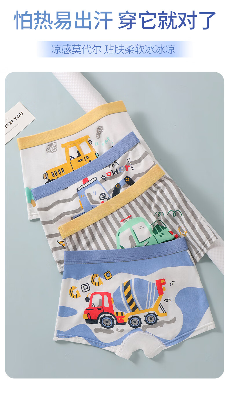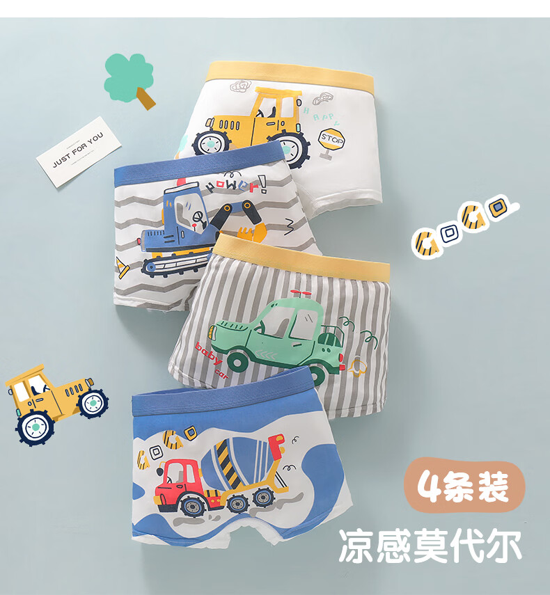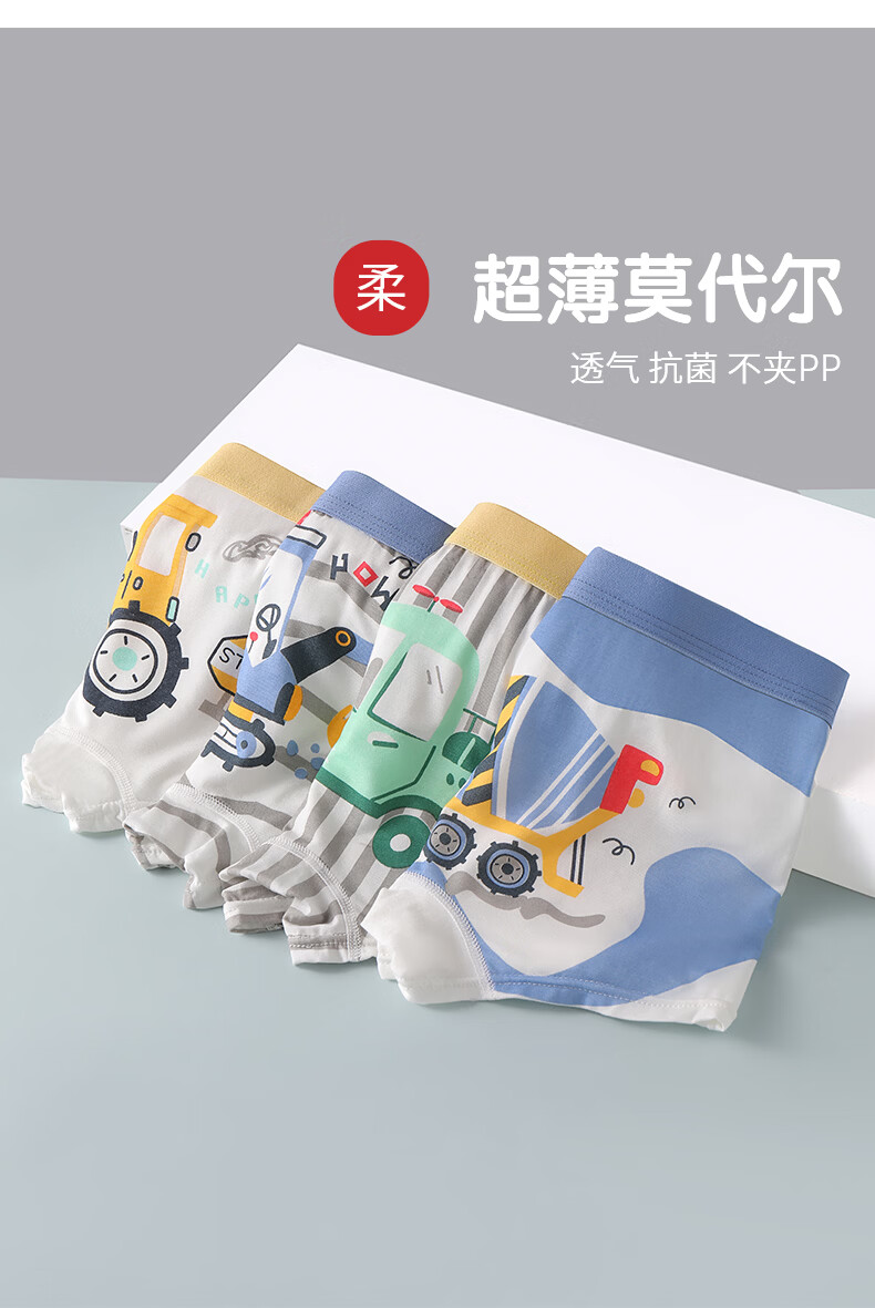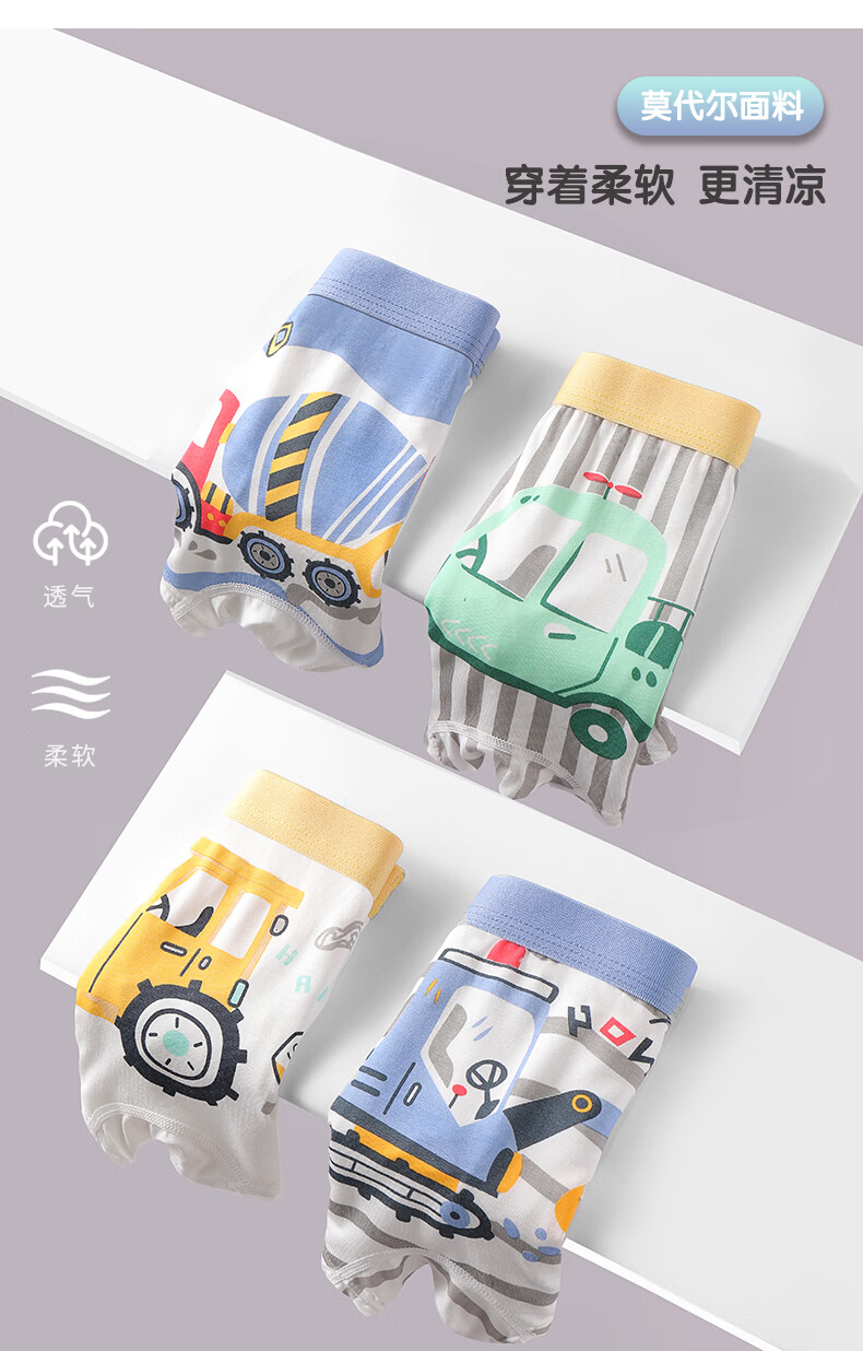 MQDMINI儿童内裤男童莫代尔青少年小男孩男生中大童男宝卡通男孩平角短裤 工程车BK811 均码 XL码7-9岁45-55斤