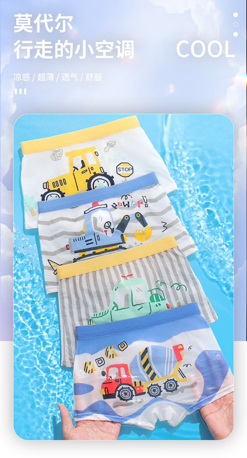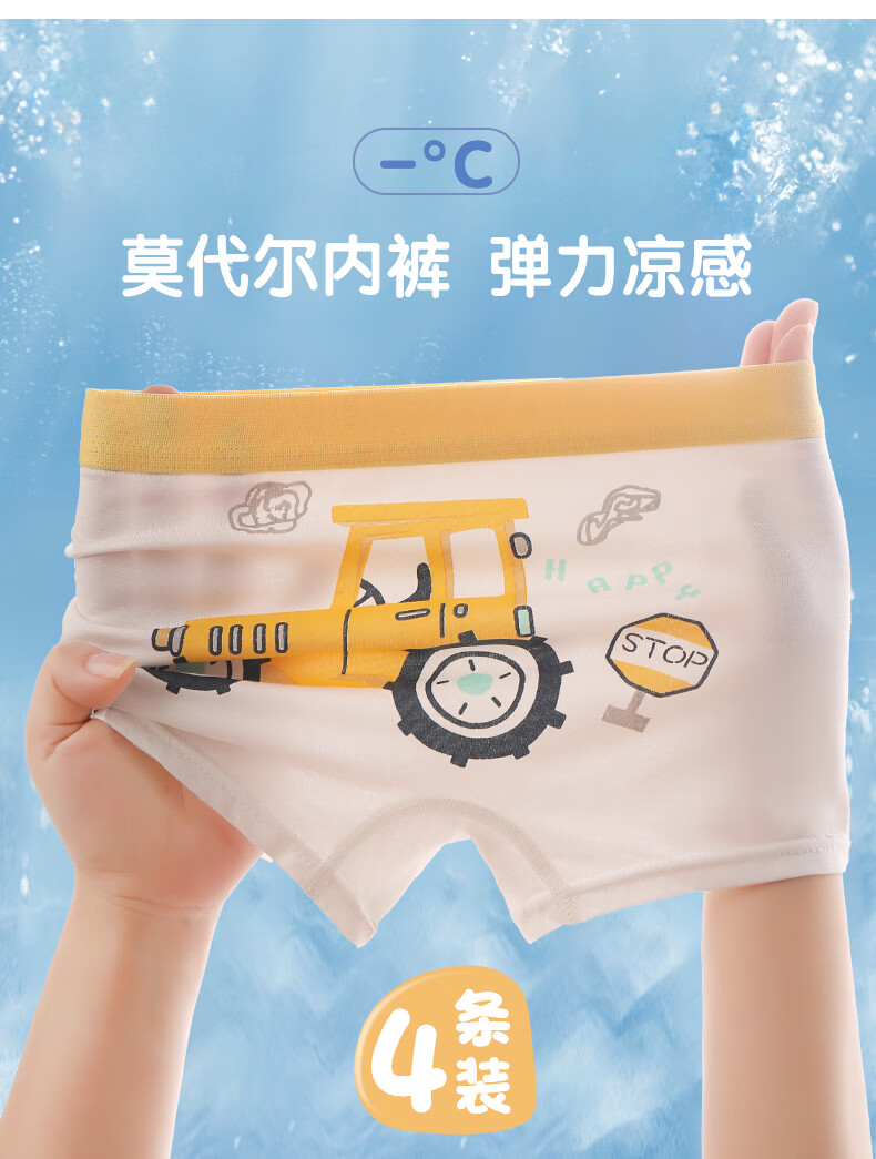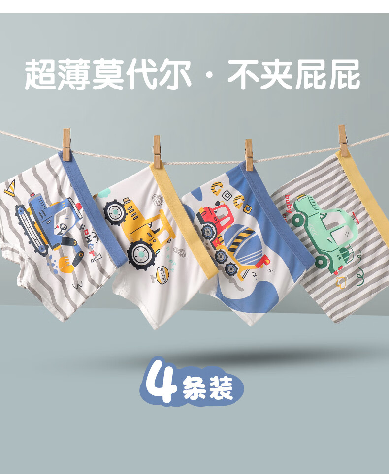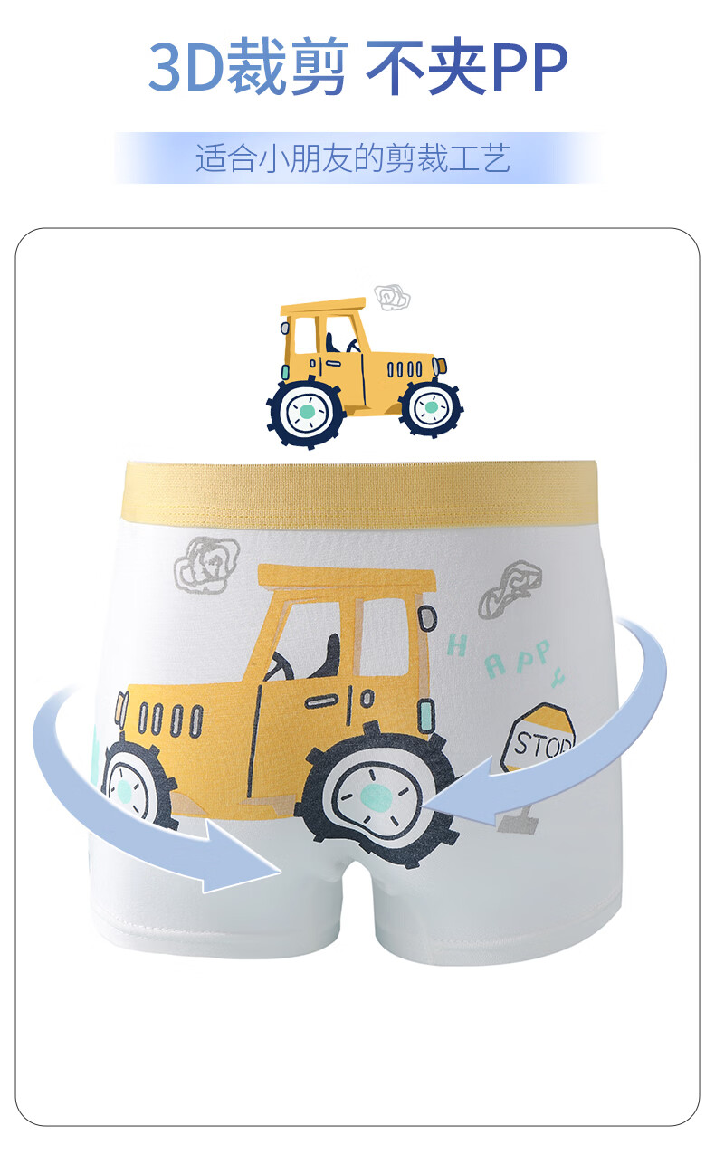 MQDMINI儿童内裤男童莫代尔青少年小男孩男生中大童男宝卡通男孩平角短裤 工程车BK811 均码 XL码7-9岁45-55斤