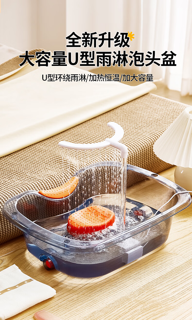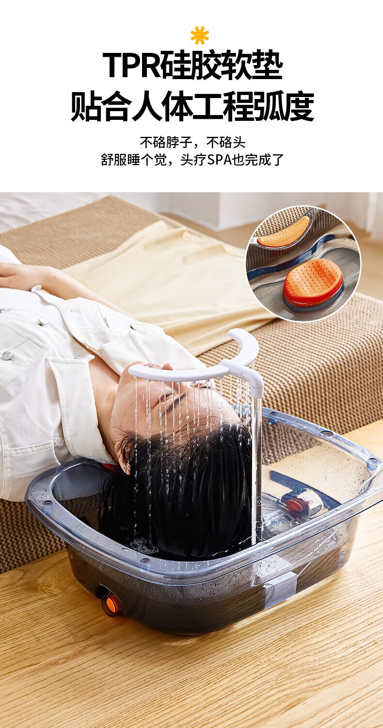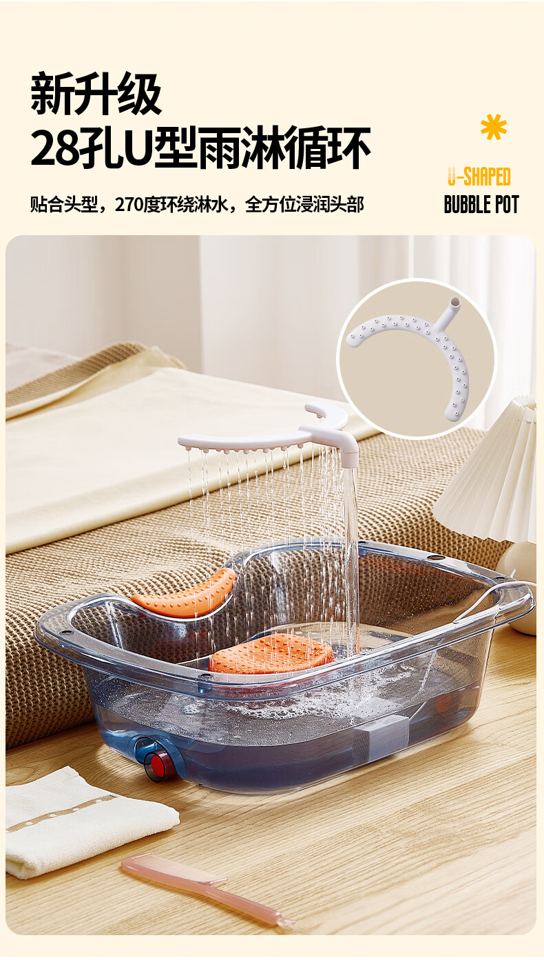 本来新选大号头疗泡头盆水循环恒温平躺洗头盆多功能养发泡头神器U型雨淋 冰川蓝+U型雨淋【头疗升级】
