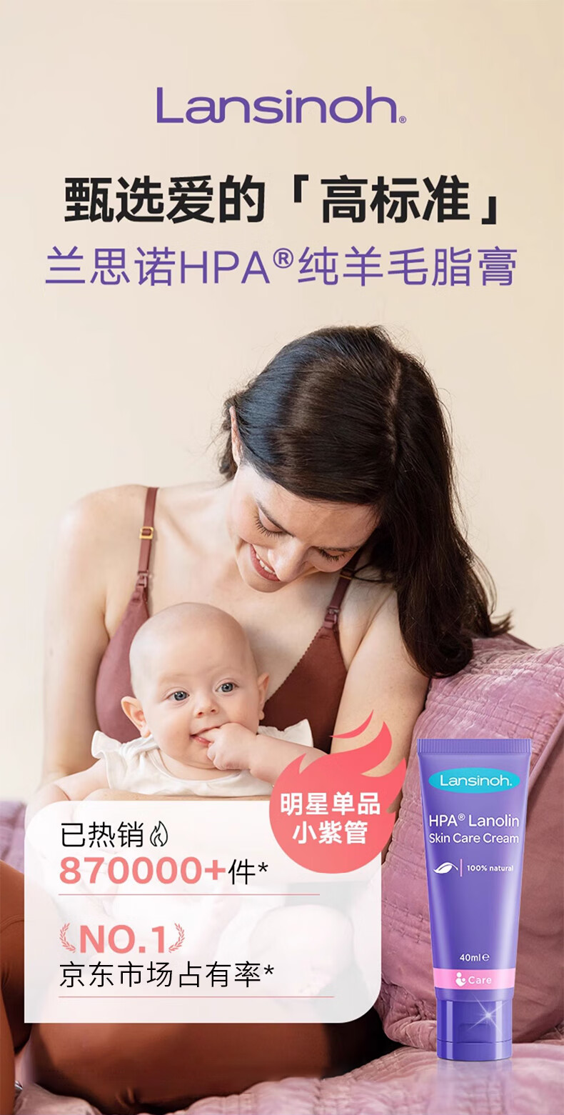 兰思诺(LANSINOH)羊脂膏乳头膏哺乳期乳头皲裂膏滋润舒缓保湿乳头霜26年7月 羊毛脂膏40ml