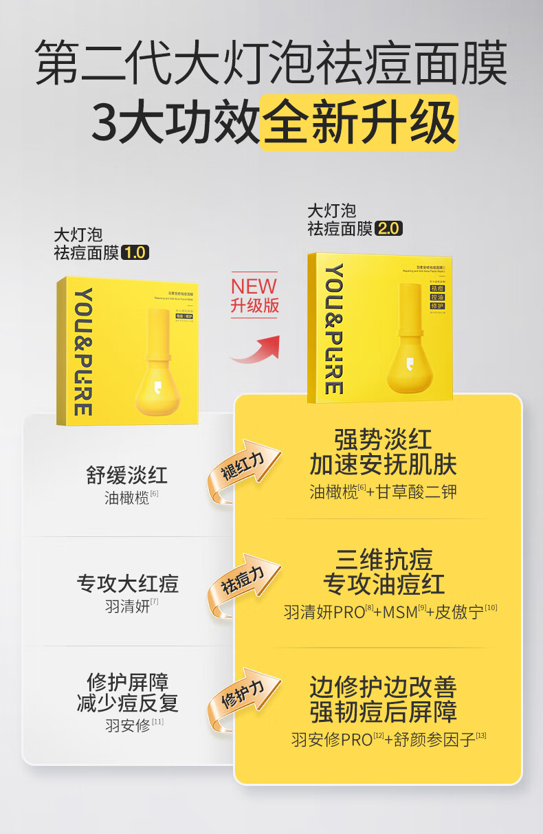 羽素安修祛痘面膜保湿修护舒缓肌肤男女学生面膜 【去闭口套装】闭口水30ml*2+闭口乳20g