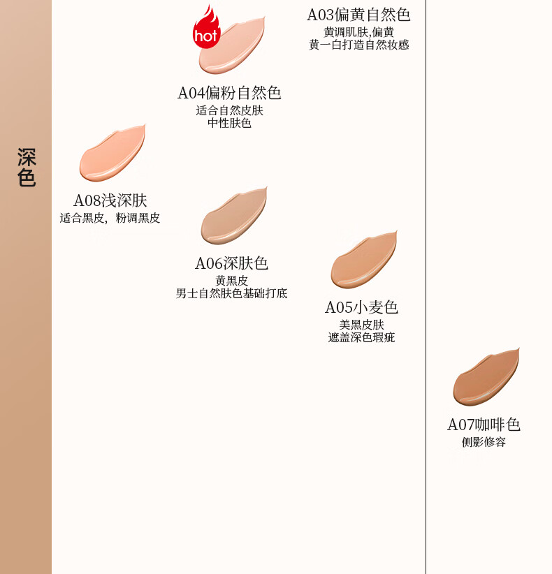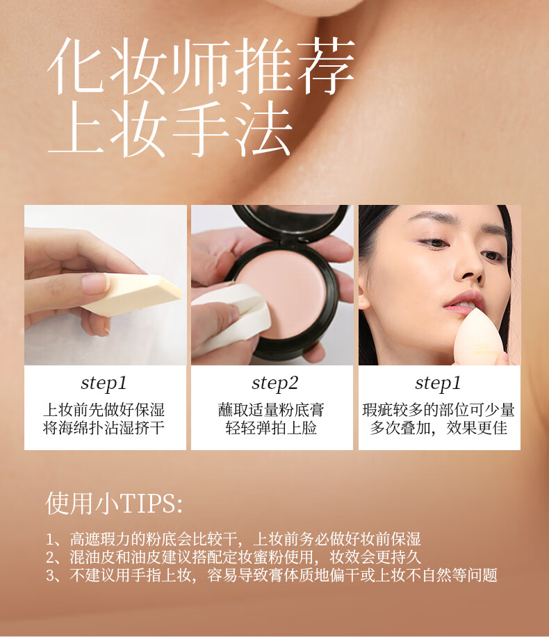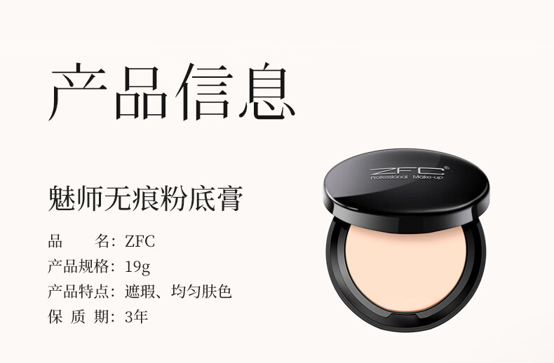 ZFC魅师无痕粉底膏防水不脱妆控油遮瑕膏雀斑痘印持妆无瑕湿粉底 偏黄自然色A03