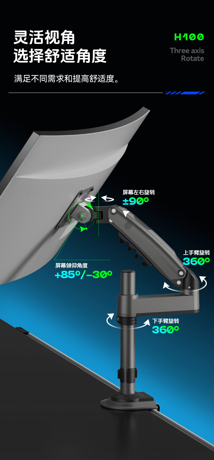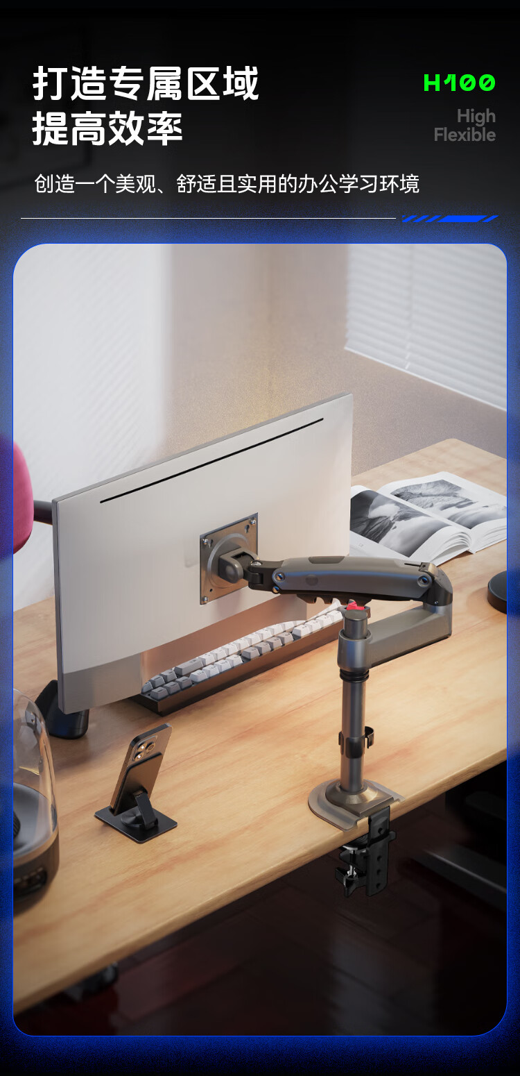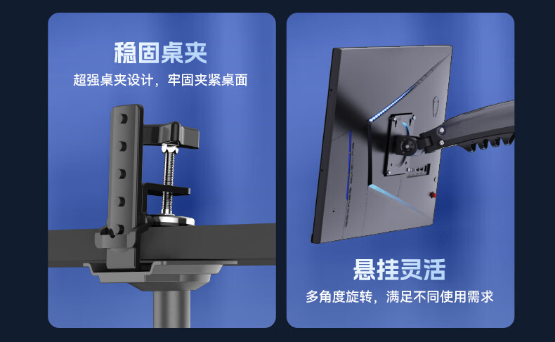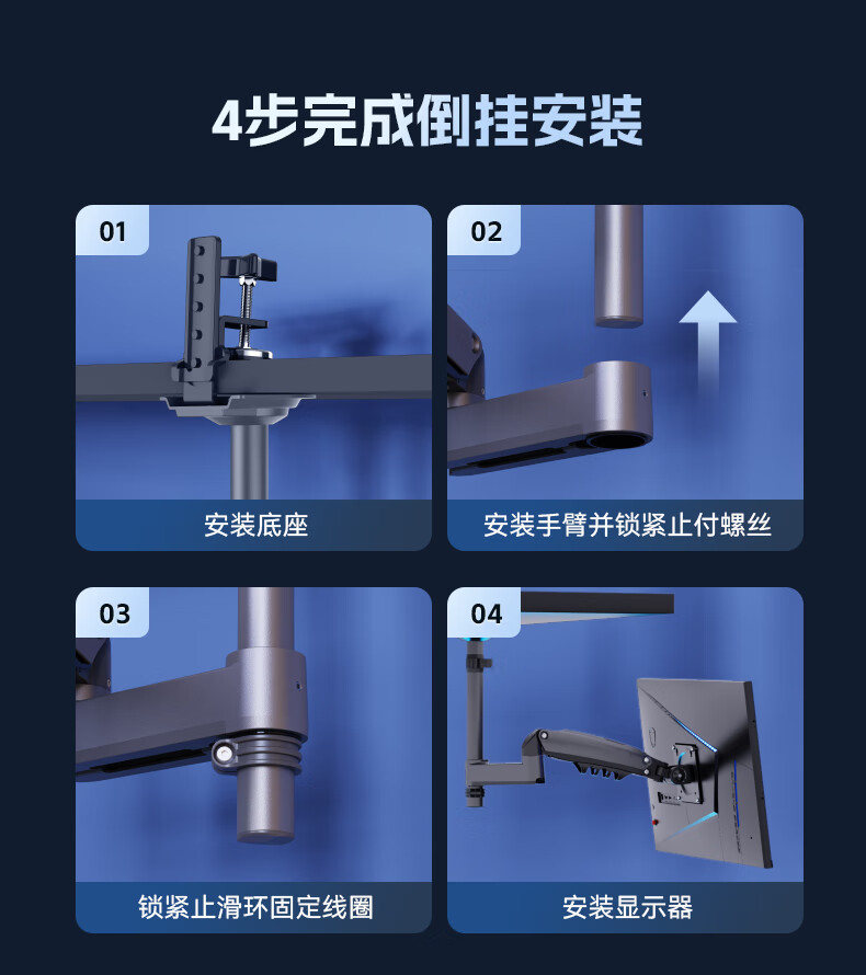 NBH100显示器支架倒挂机械臂 电脑支架桌面夹式底座倒装屏幕升降臂17-32吋宿舍悬空托架适配卓威电竞