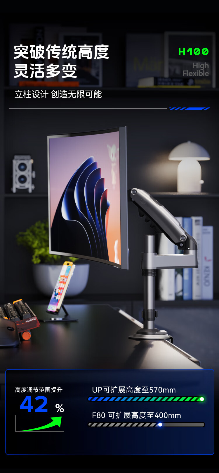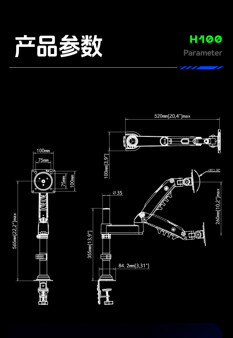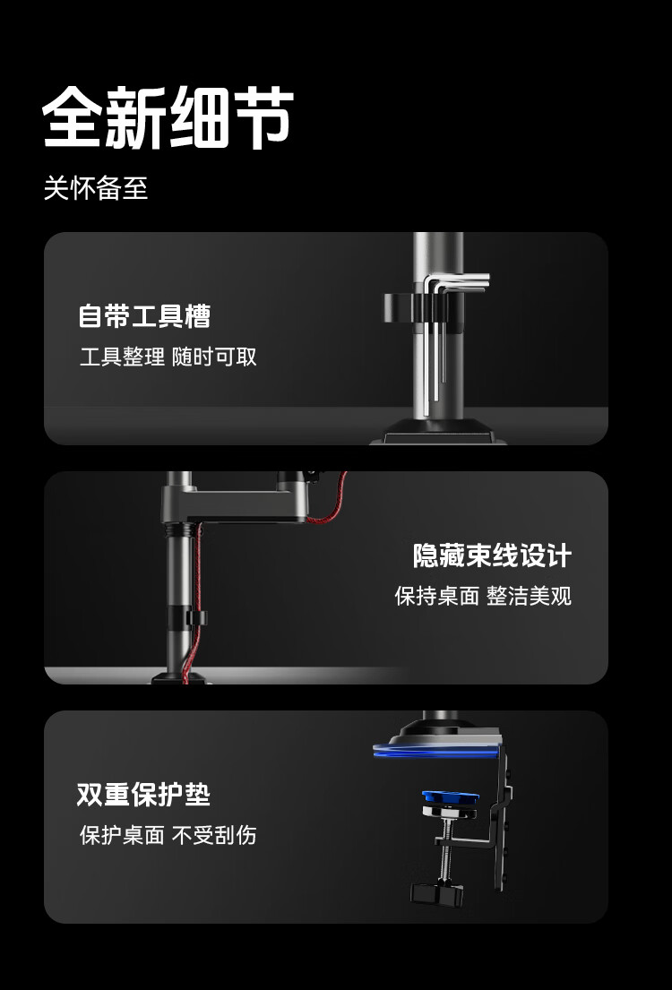 NBH100显示器支架倒挂机械臂 电脑支架桌面夹式底座倒装屏幕升降臂17-32吋宿舍悬空托架适配卓威电竞