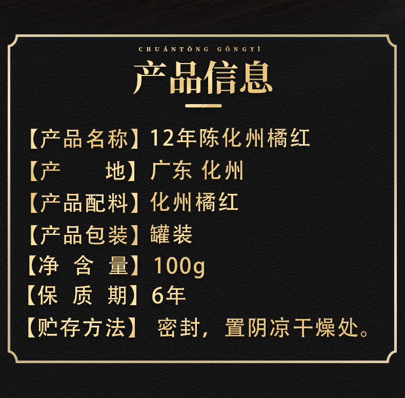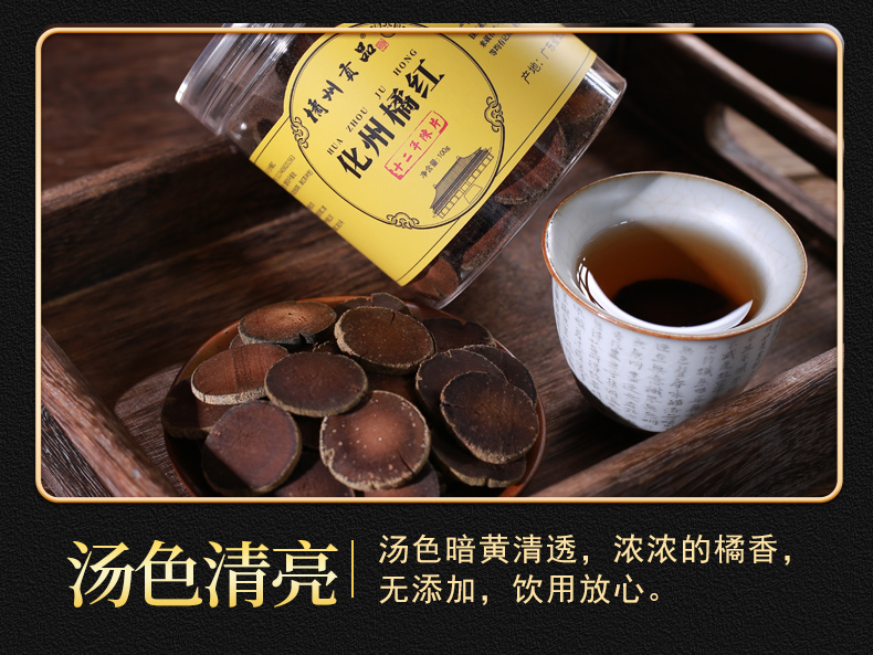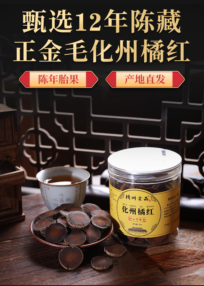 橘州贡品 正宗化橘红 12年陈年化州橘红100g 正毛橘红胎果切片 化桔红茶 一罐