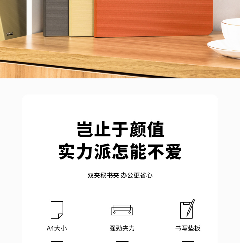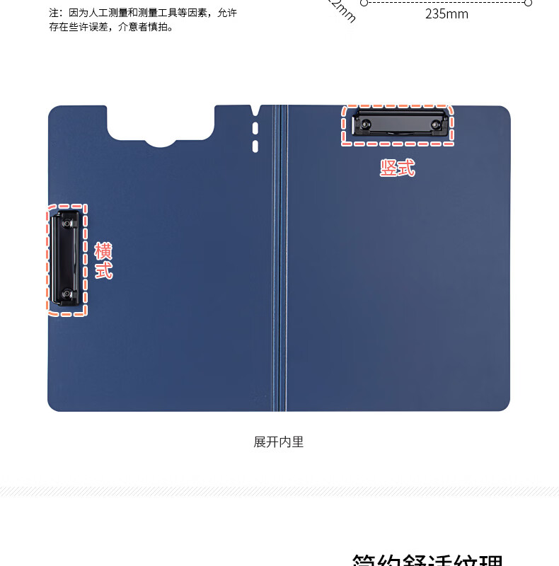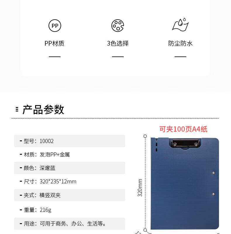 天色 A4文件夹夹板双夹折页板夹 会议夹秘书夹资料夹试卷夹签字签约呈阅夹 办公用品 TS-10002 深邃蓝