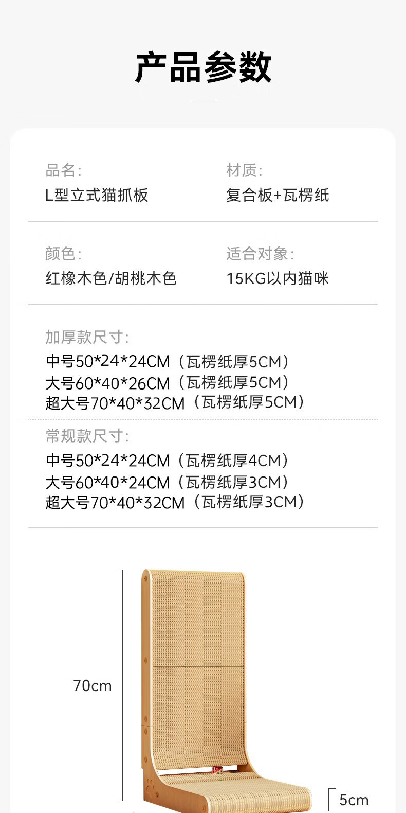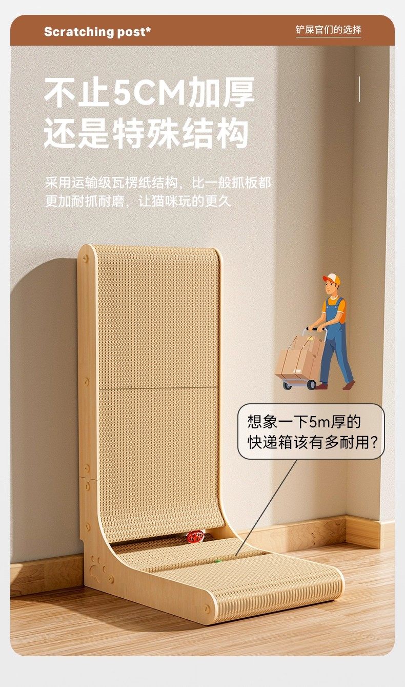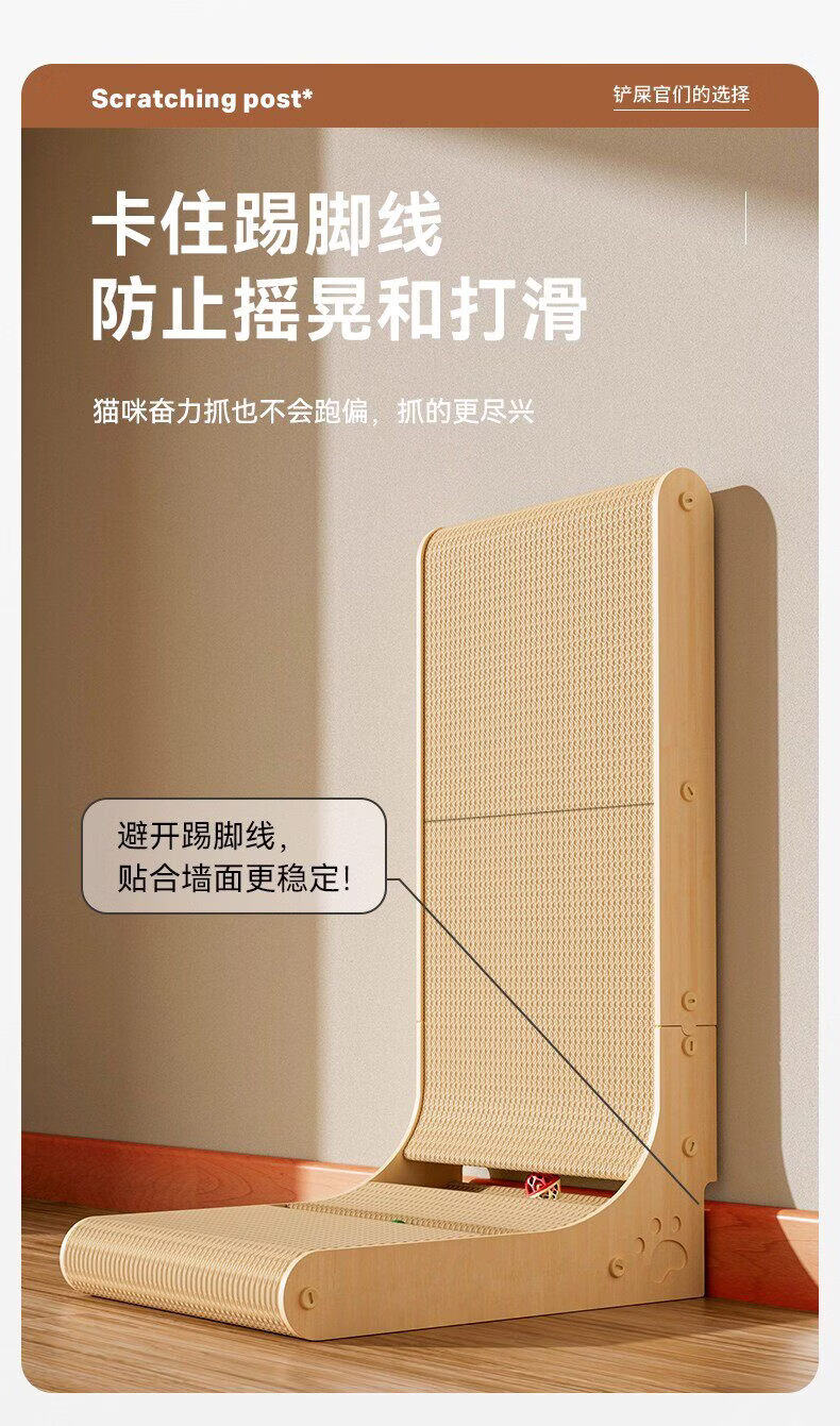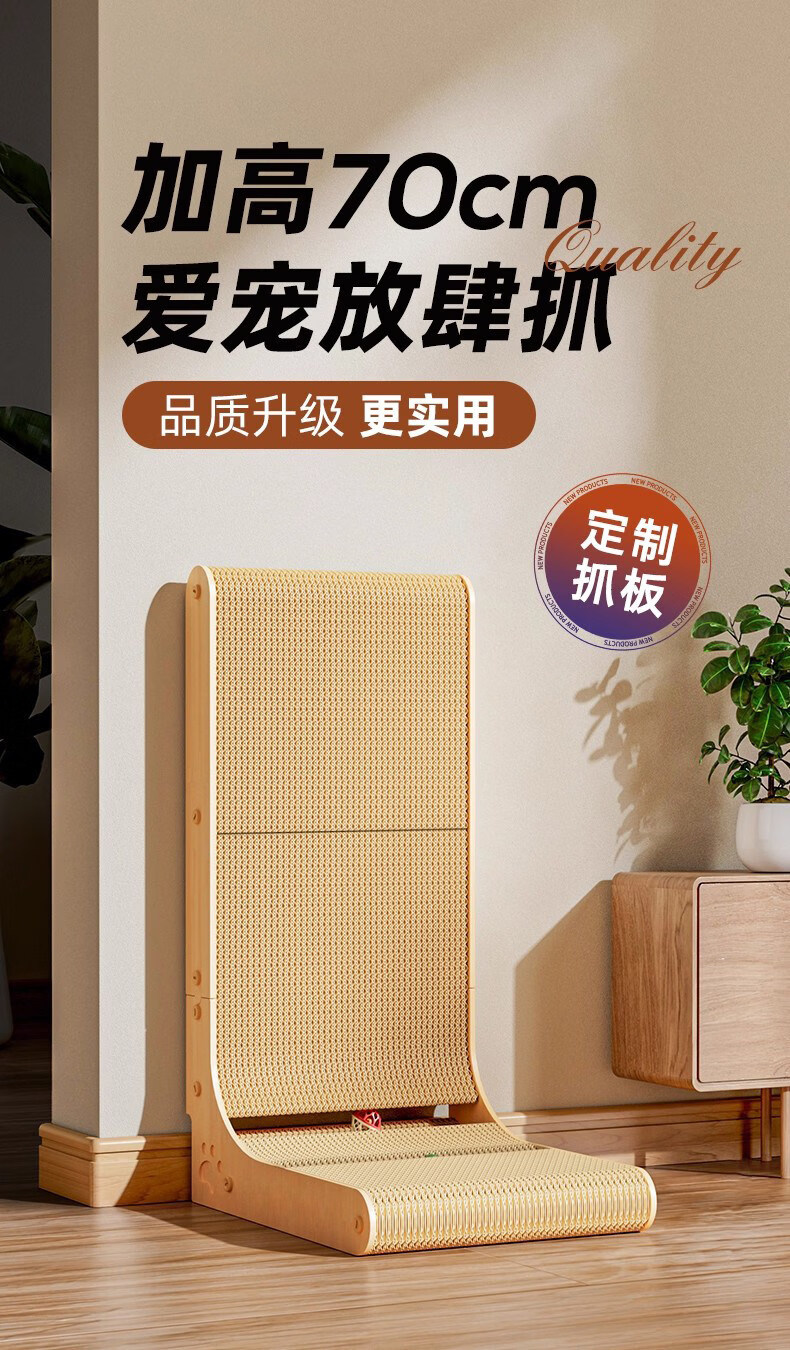 瓜洲牧立式猫抓板耐磨不掉屑加厚L型猫抓板防猫抓四季通用猫咪玩具用品 【常规款】中号-高50cm-厚度3cm【 无踢脚线】