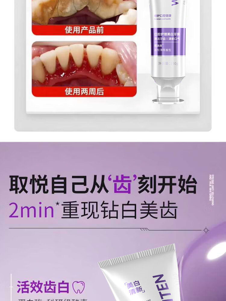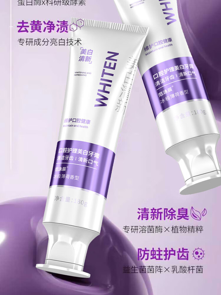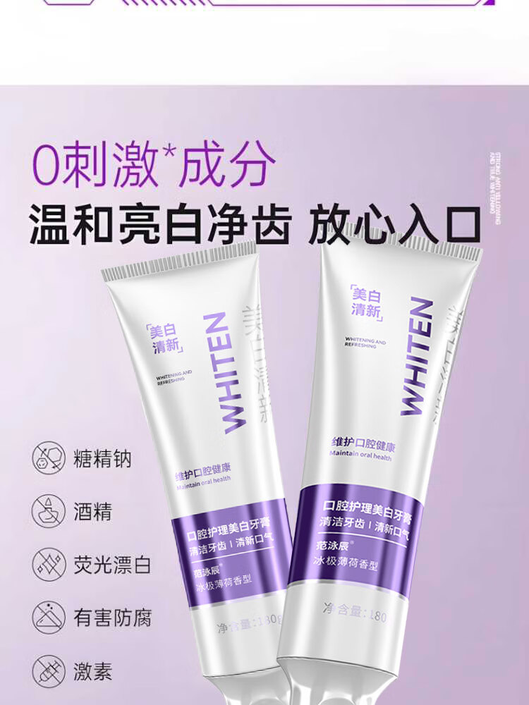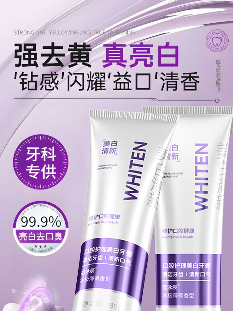 范泳辰美白牙膏抑菌口臭去黄去牙渍去烟渍牙垢口气减轻口臭清新口气 清新美白牙膏180g*1支
