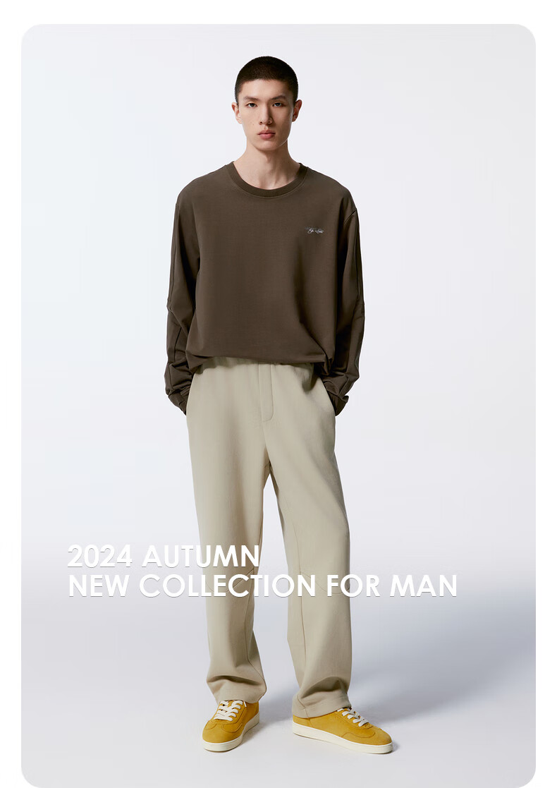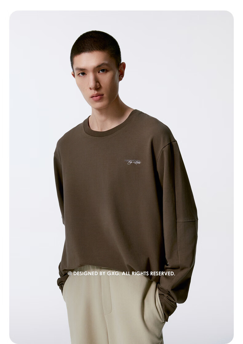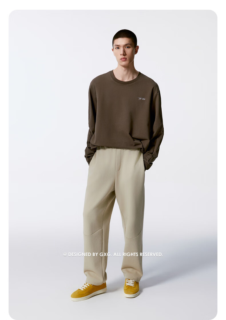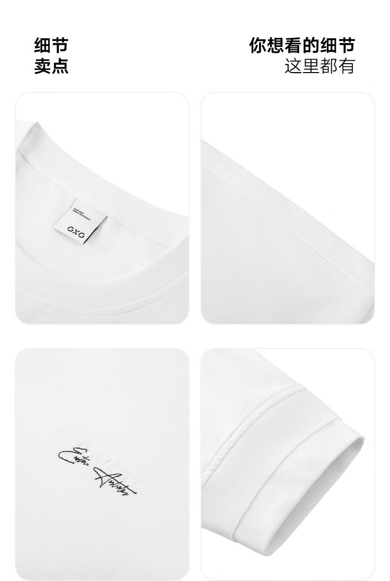 GXG男装宽松圆领长袖T恤男士 24秋季新品 白色 180/XL