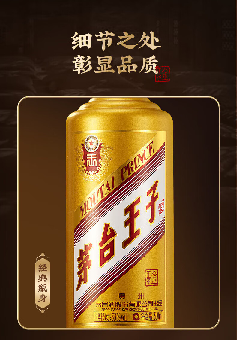 茅台金王子酒 酱香经典53度酱香型白酒 家宴自饮 婚宴喜酒 迎宾送礼 53%vol 500mL 2瓶 酱香经典2.0双瓶