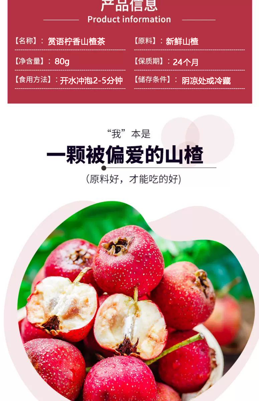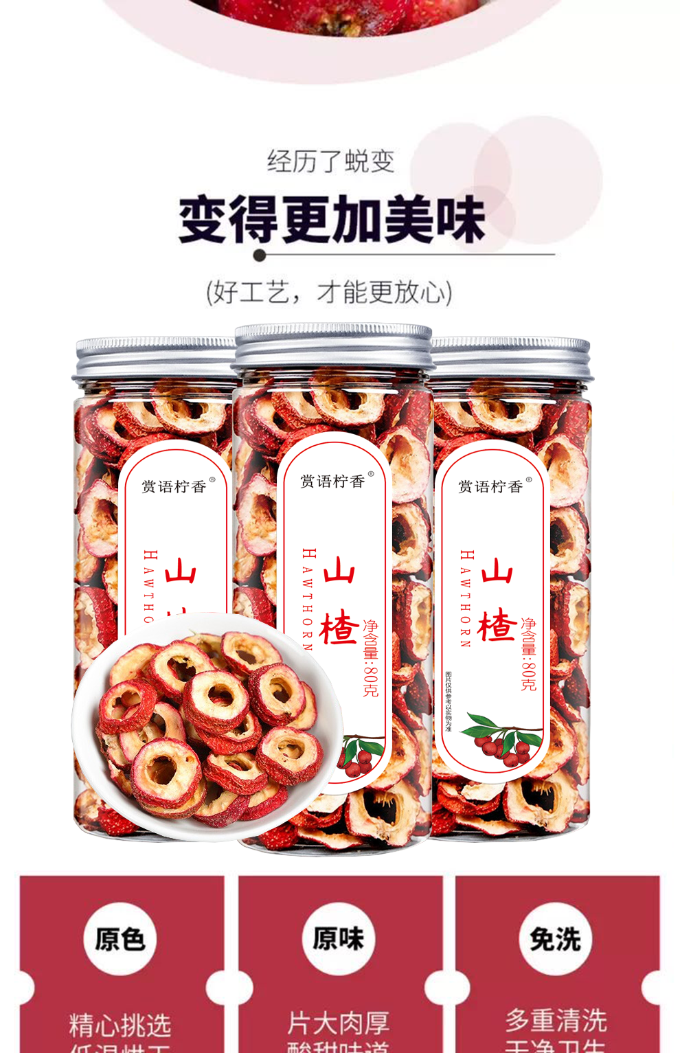 赏语柠香 山楂 无核山楂片中心圈泡茶泡水喝的花草养生水果茶 80g*3罐