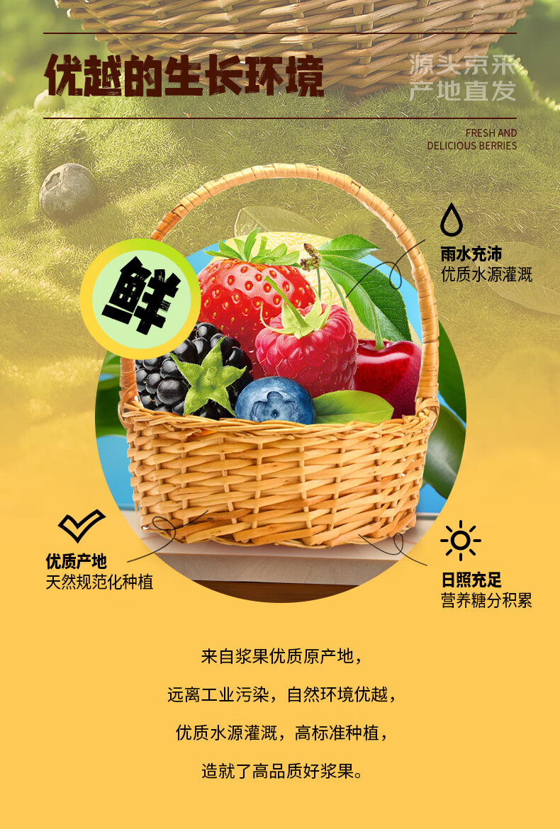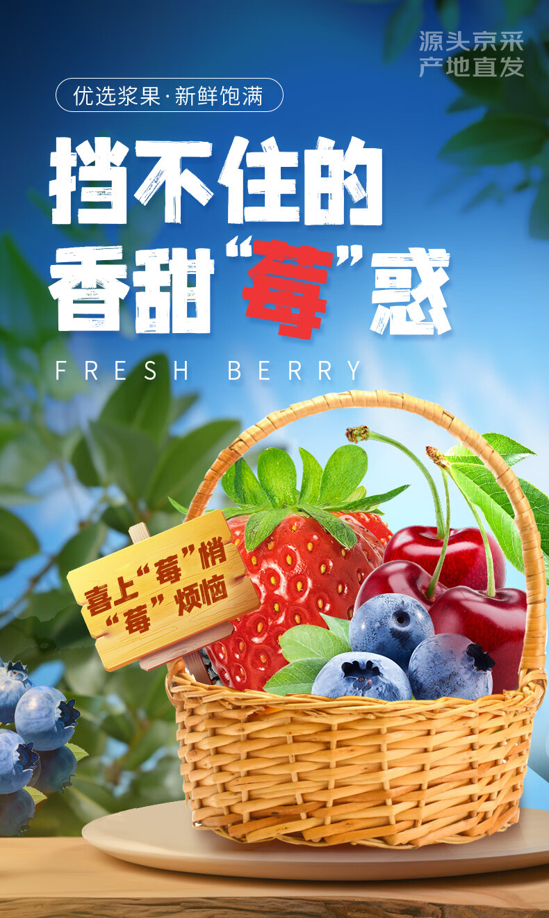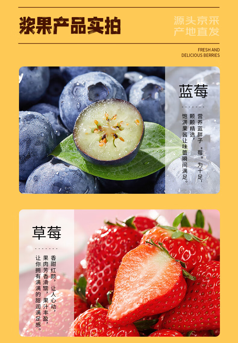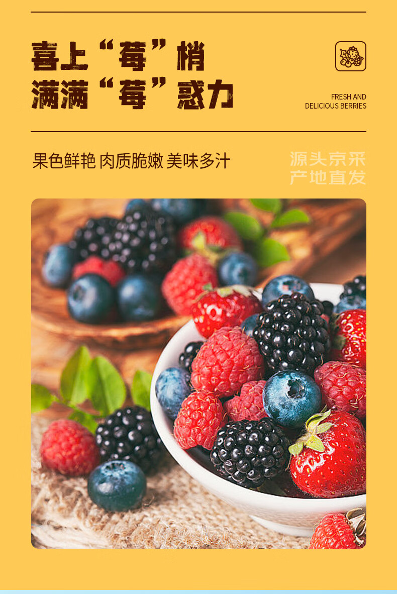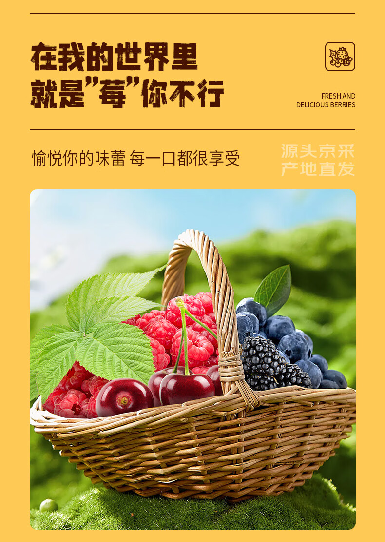 京鲜生云南蓝莓18mm+4盒+丹东草莓2斤+智利车厘子4J级5斤 水果礼盒