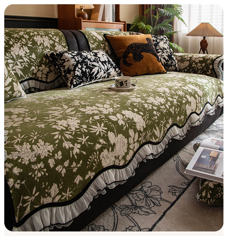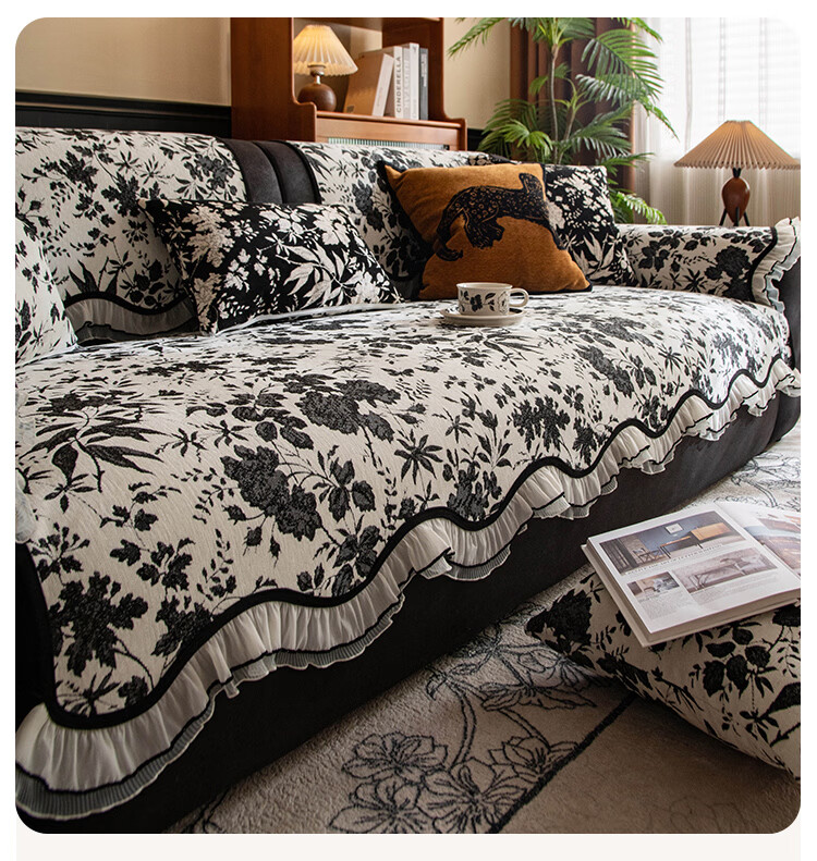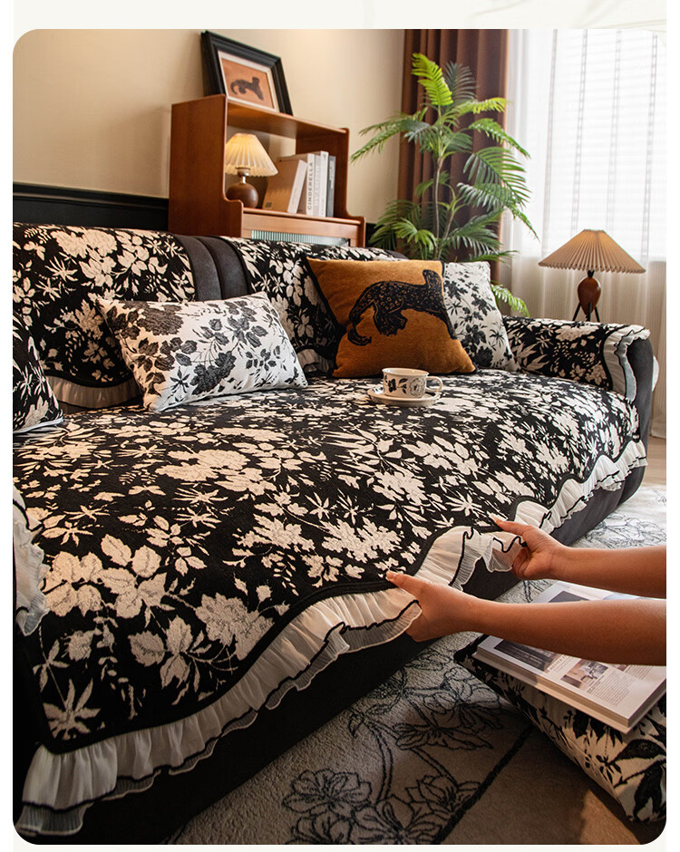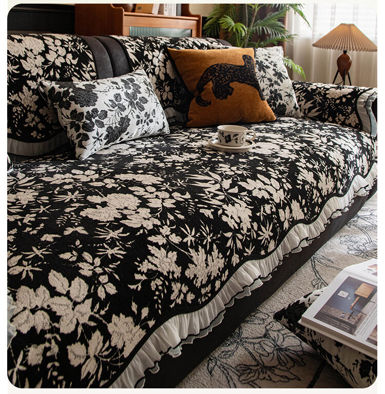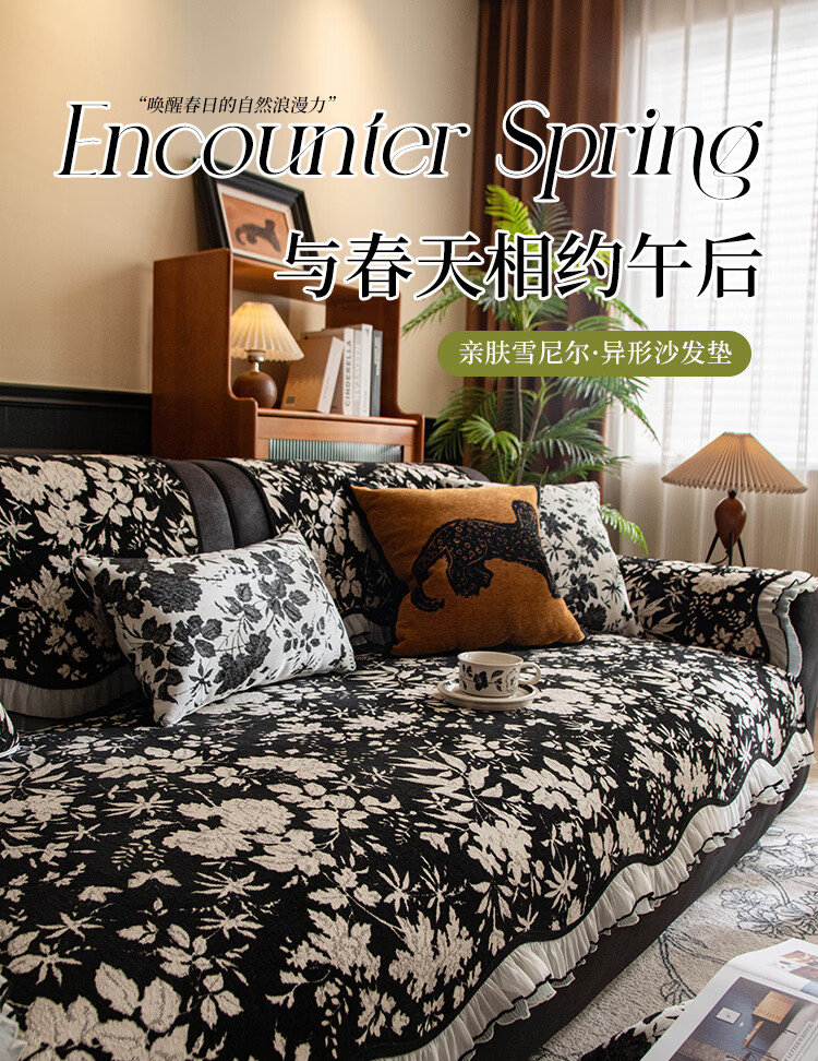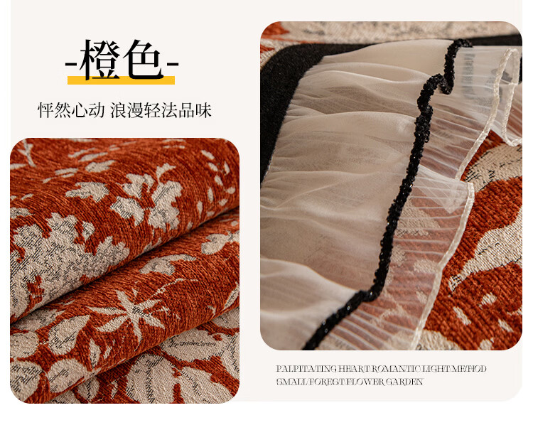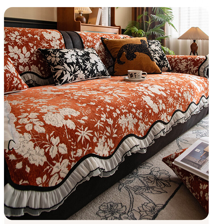 缔卓怡中古风高级异形沙发垫雪尼尔四季通用防滑坐垫套罩防猫抓盖布巾 异形繁花-橙色 70cm*70cm