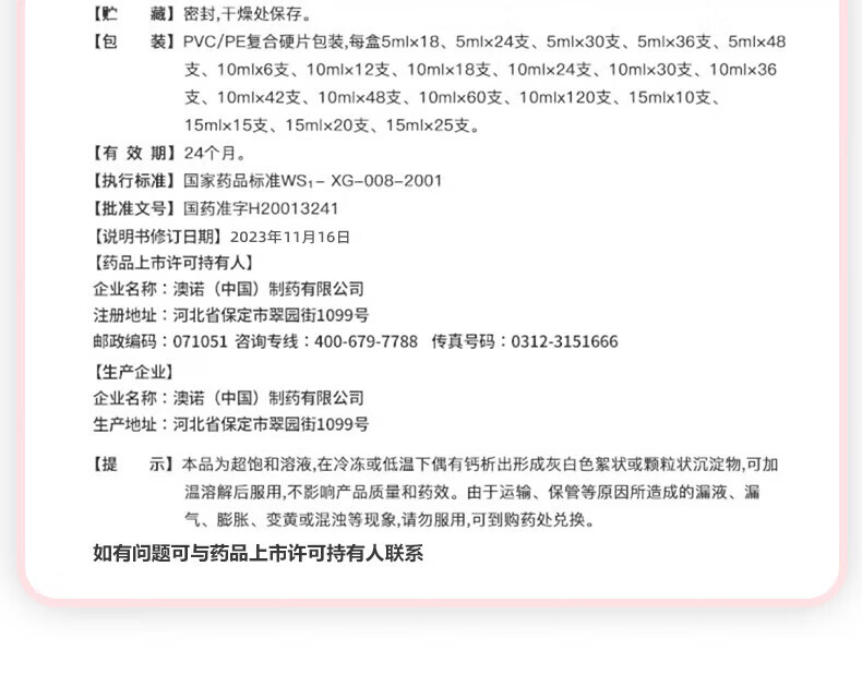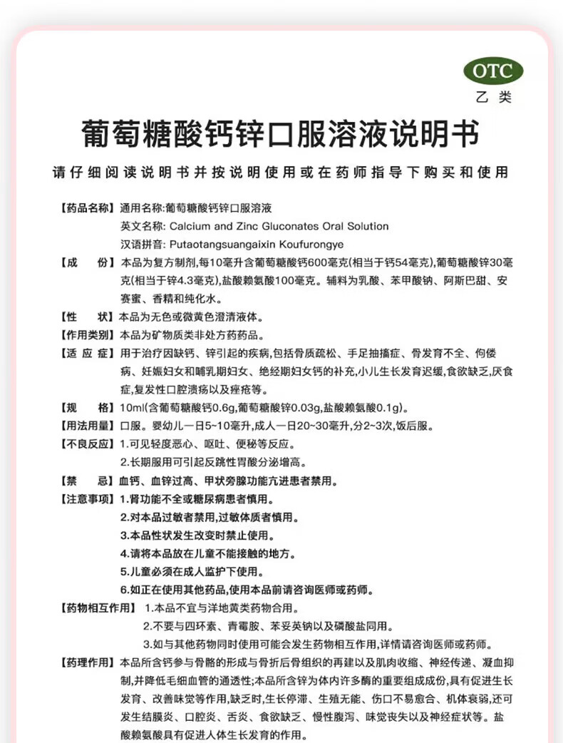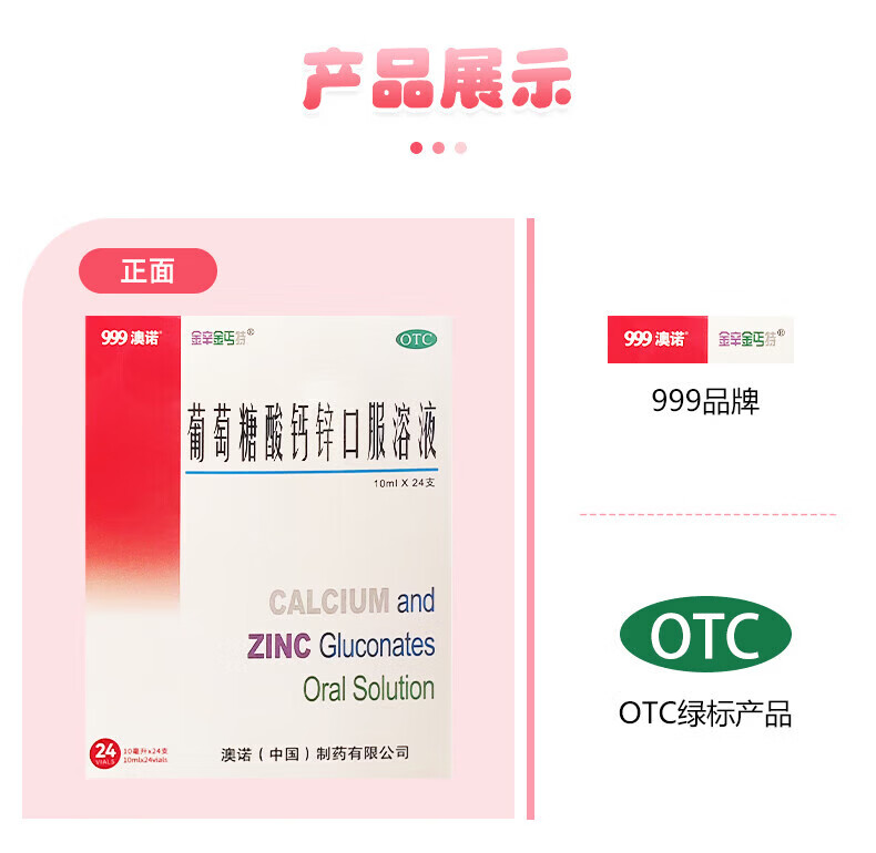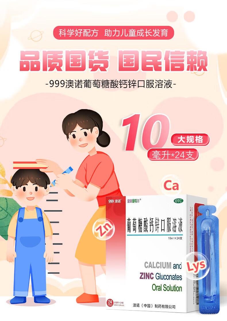 [金辛金丐特]葡萄糖酸钙锌口服溶液 10ml*24支 1盒装 【999澳诺】钙锌双补活力加营养均衡—守护骨骼为您的健康补充能量 澳诺小儿生长发育迟缓