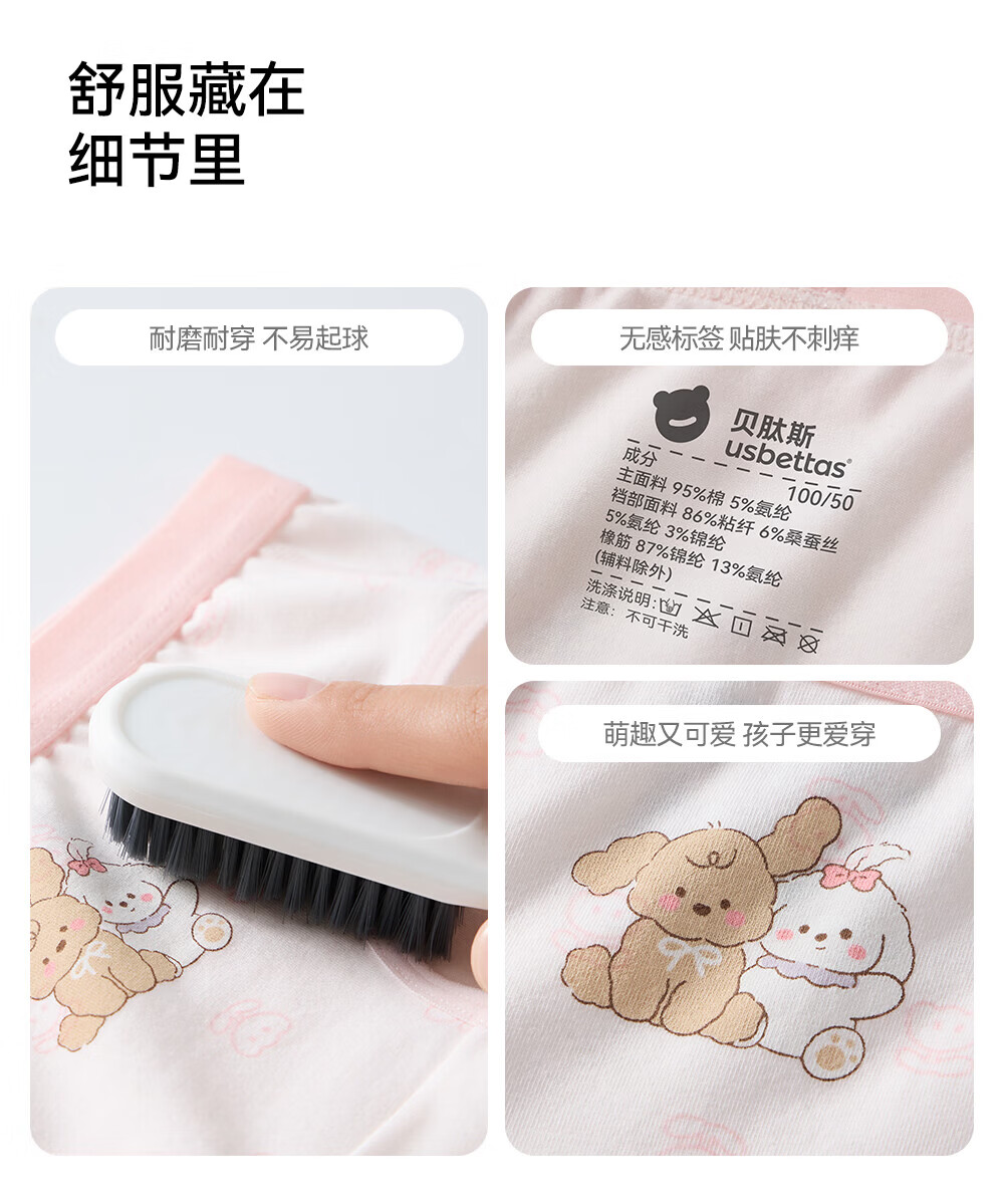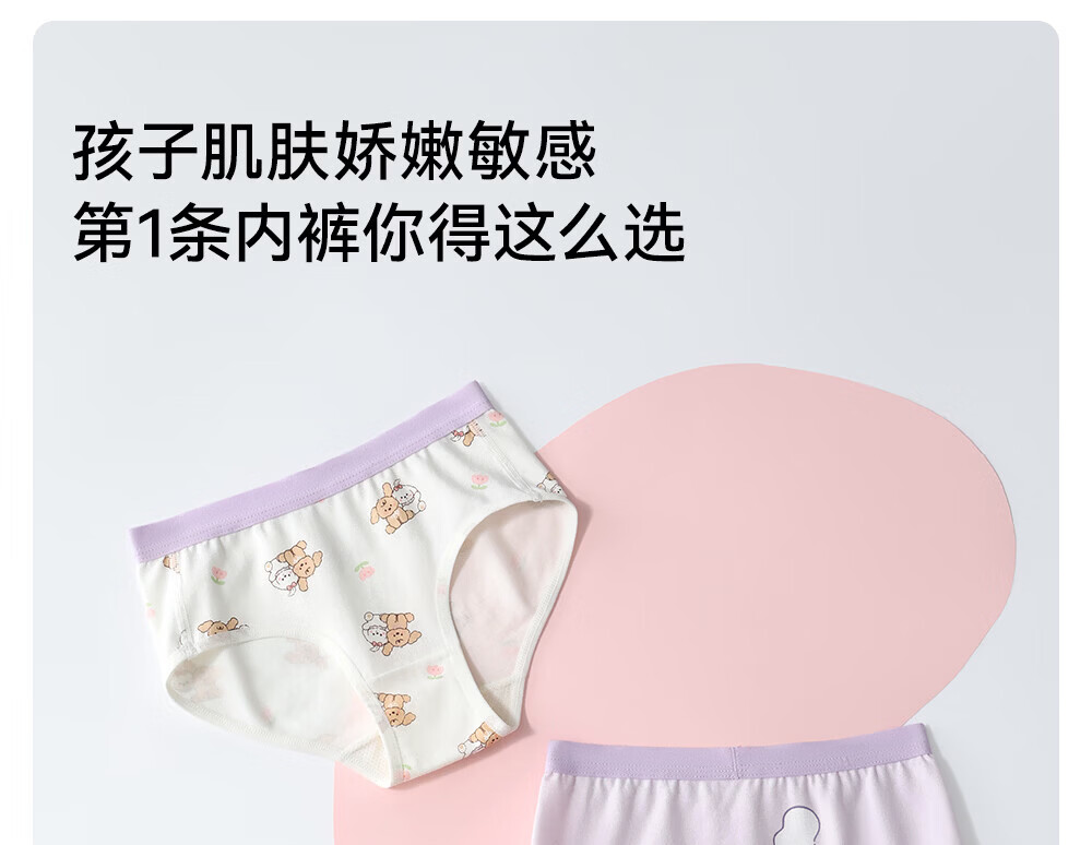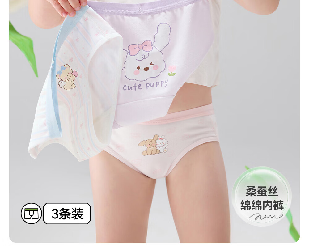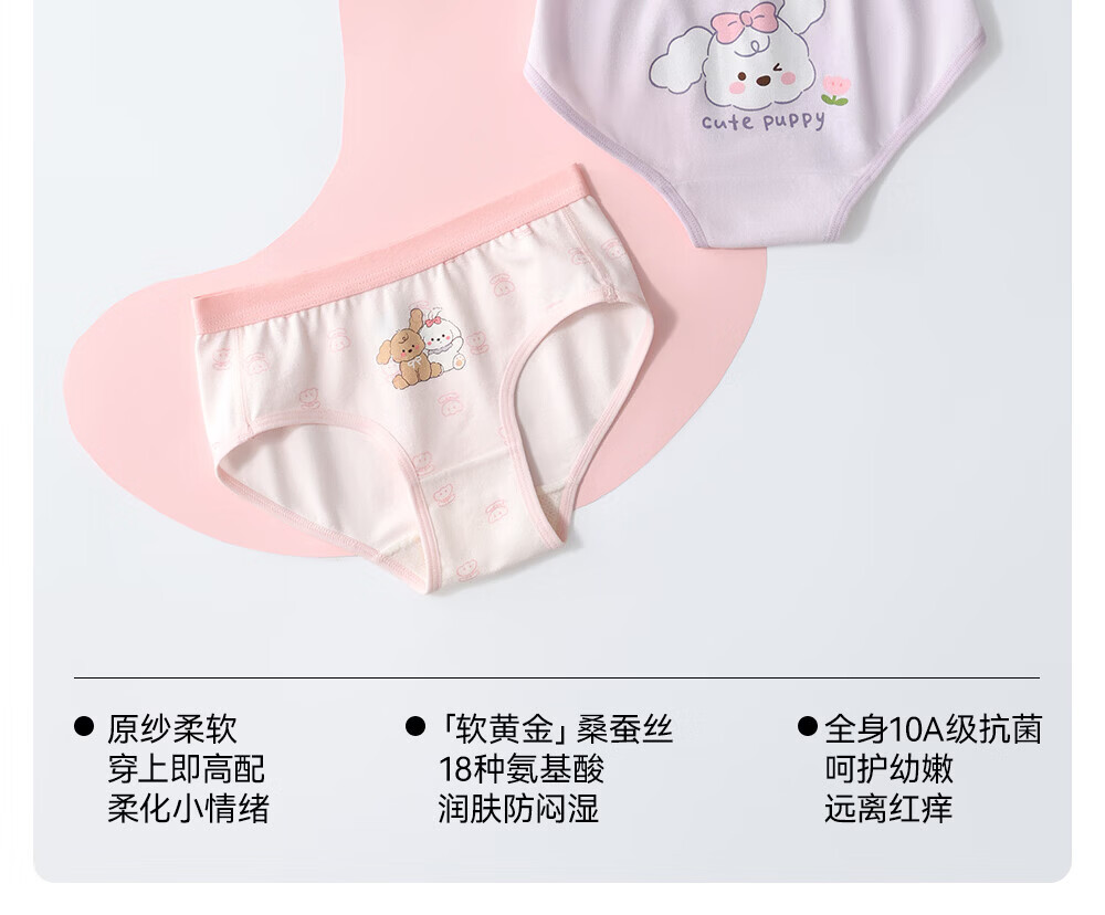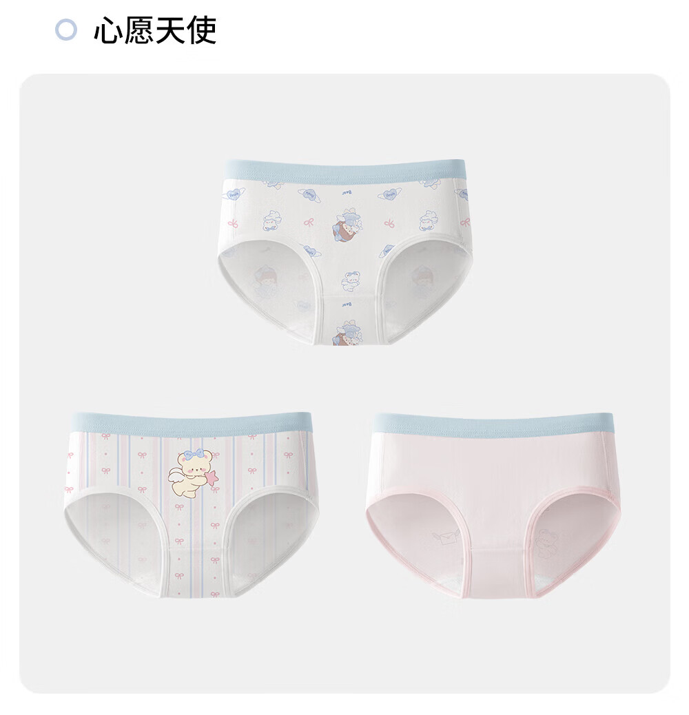 贝肽斯女童内裤春夏季纯棉3-6岁青少年a类6-12岁平角短裤 心愿天使 3条 90 cm(建议19-26斤)
