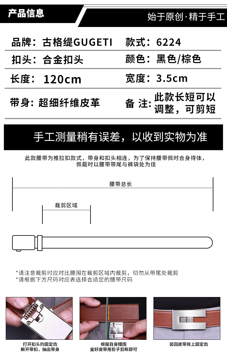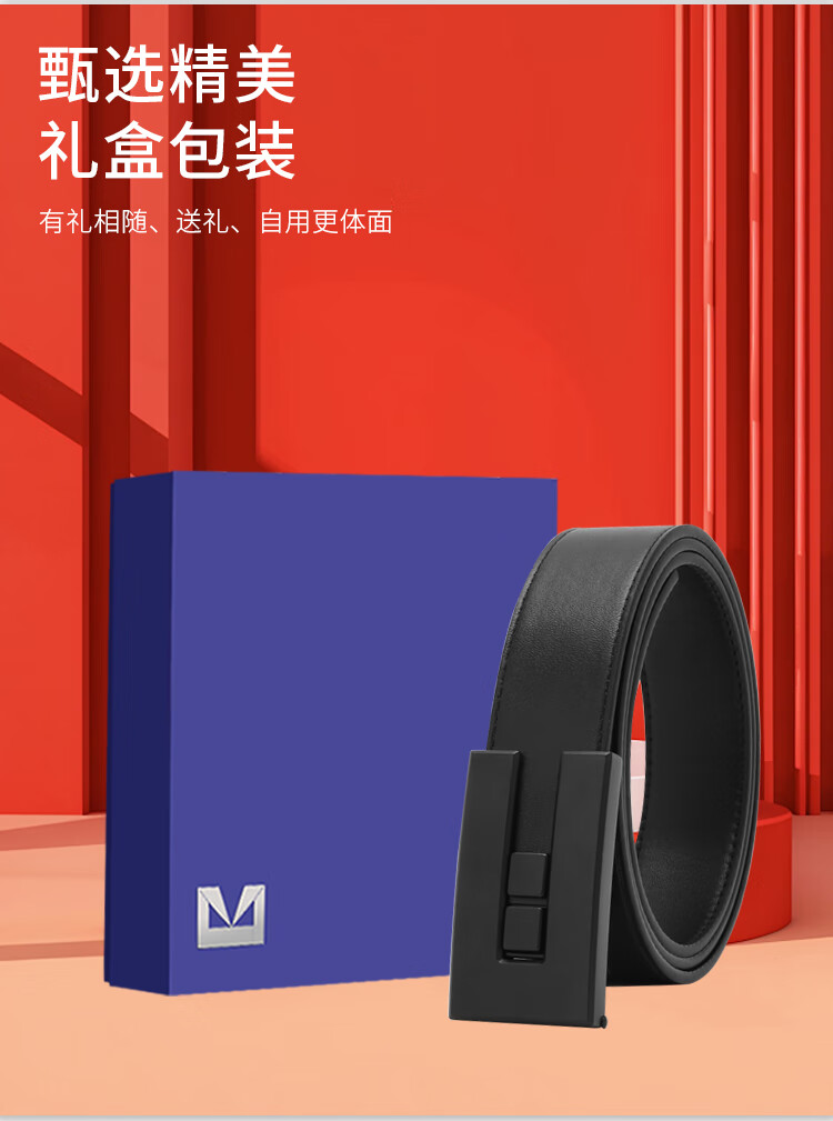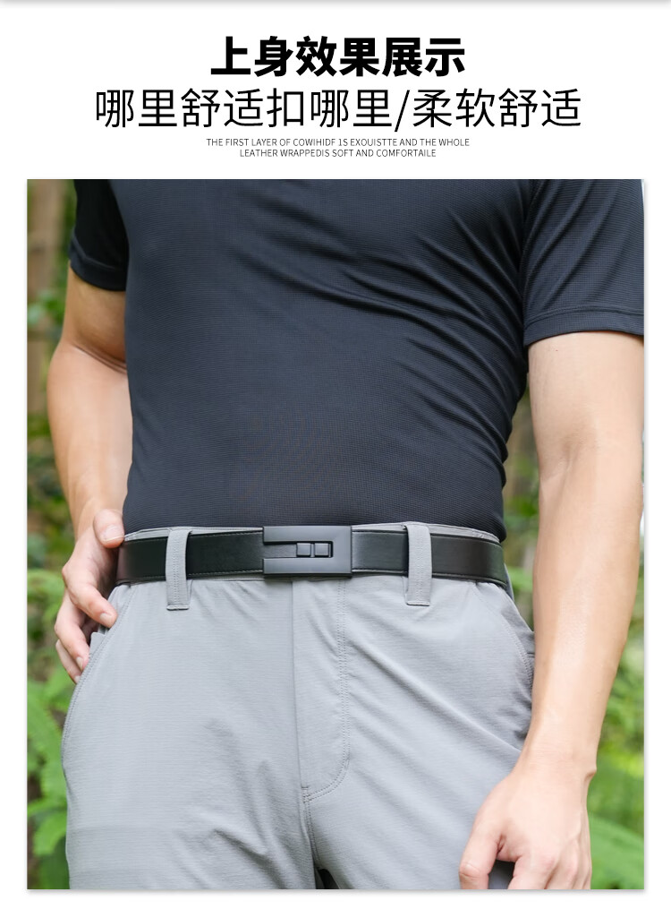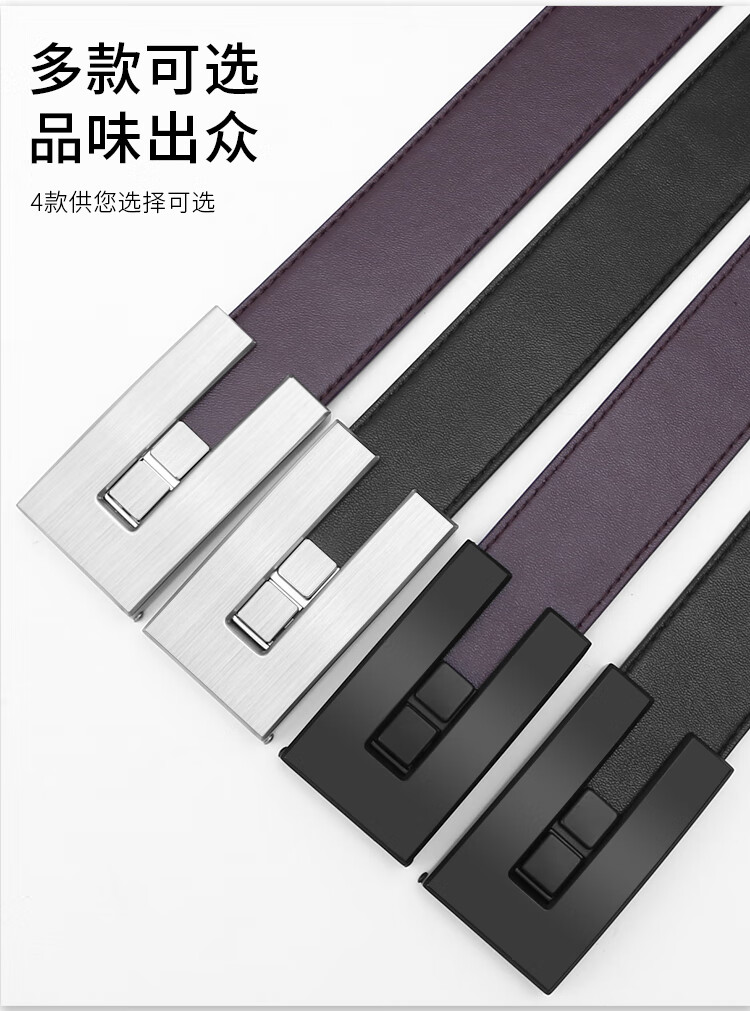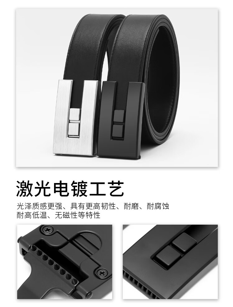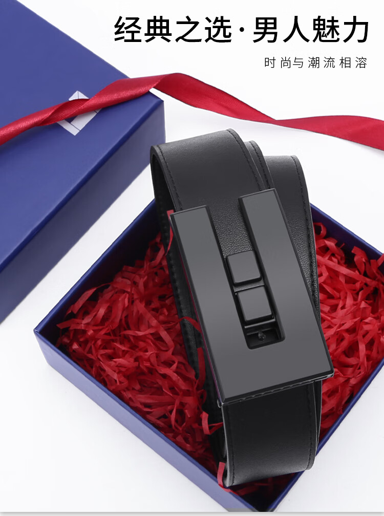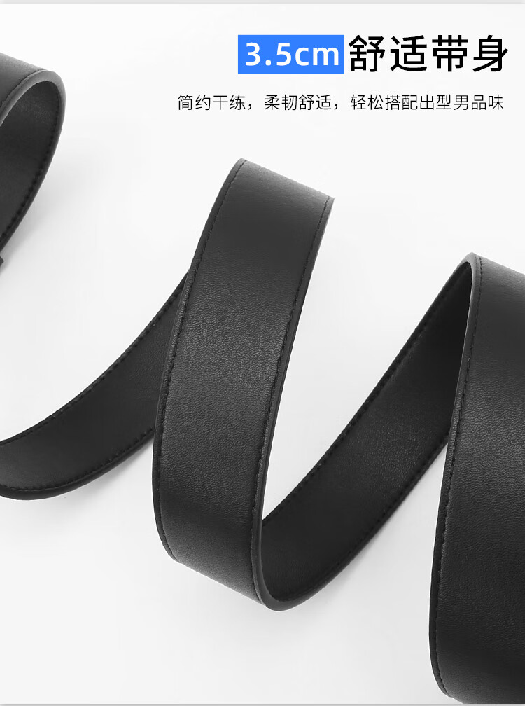 古格缇男士皮带 无带尾平滑扣腰带 时尚裤腰带生日礼物送男友老公父亲 【无带尾-平滑扣黑扣】黑色 120cm