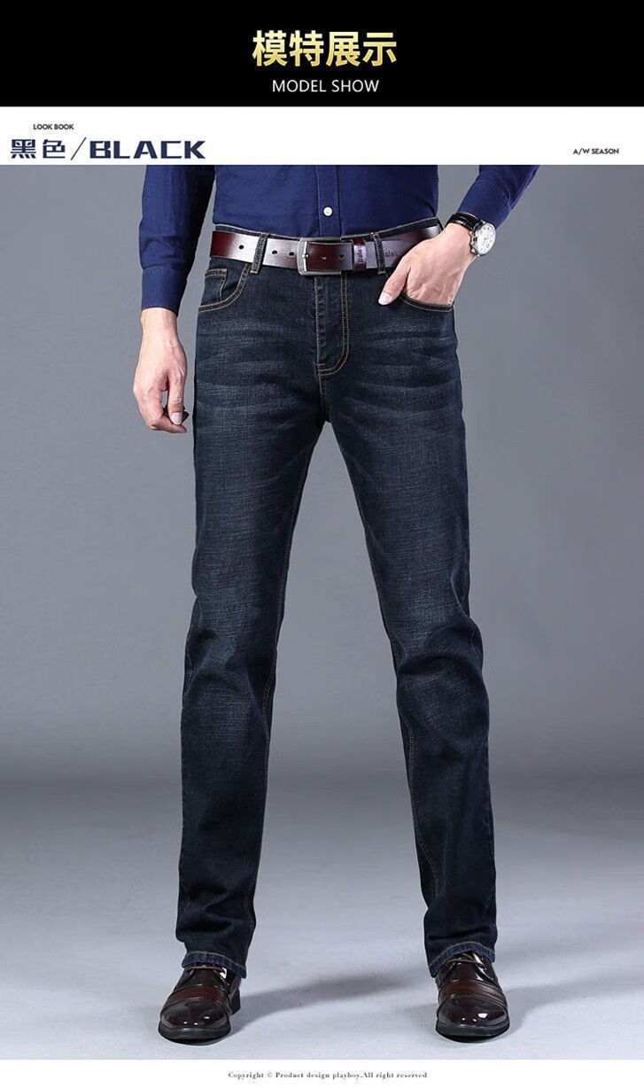 蝴蝶曼新款弹力牛仔裤男士宽松百搭裤子大码长裤直筒干活工作休闲男裤 8853黑色(款) 40 (3.0尺)