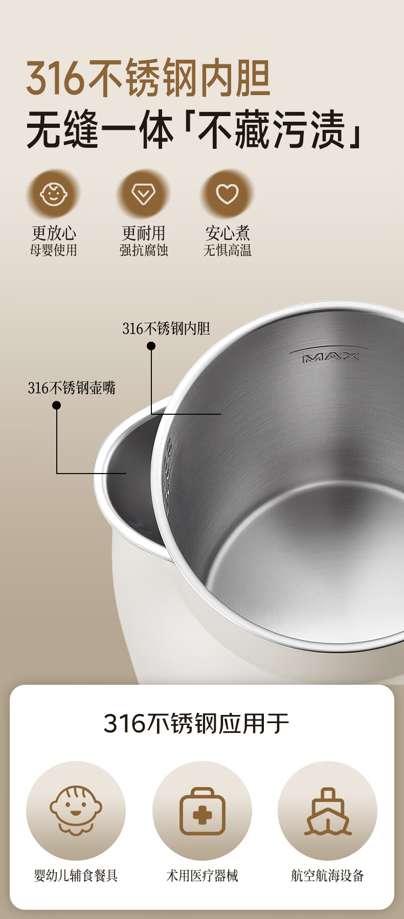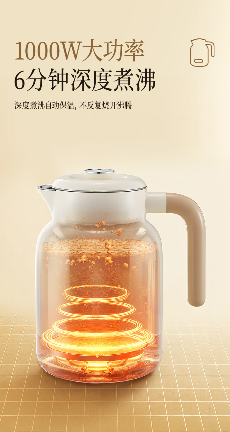 美的全玻璃养生壶 办公室烧水壶 家用多功能煮茶壶 花茶煮茶器 迷你小型电热水壶 围炉煮茶壶 【全玻璃】0金属0胶水0涂层 1L