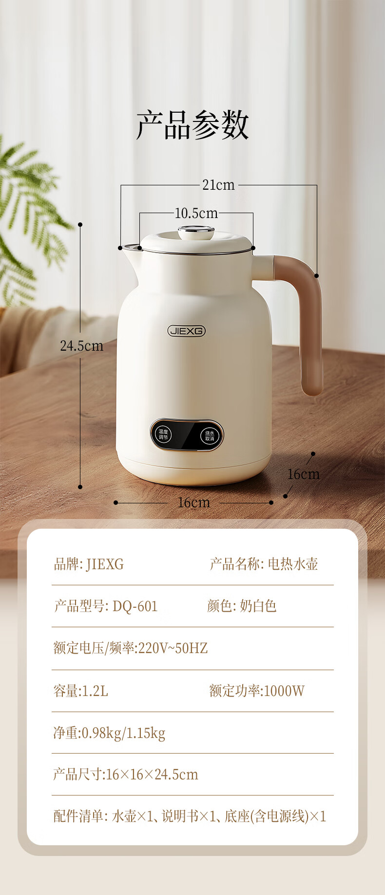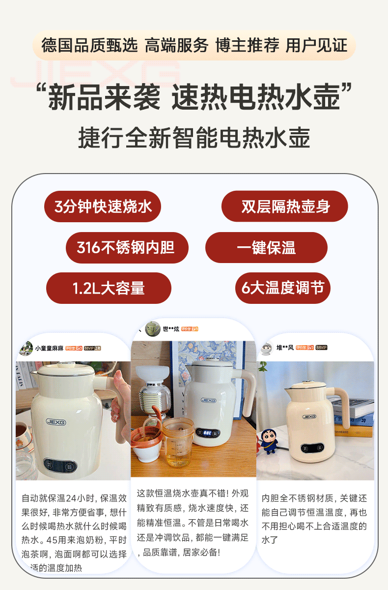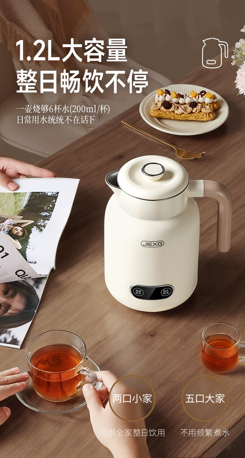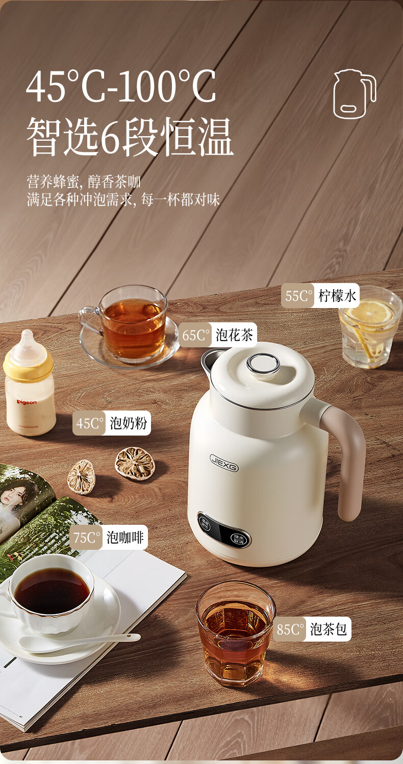 JIEXG德国电热水壶 烧水壶 智能烧水不锈钢电热壶电水壶开水壶全自动恒温壶婴儿冲奶保温一体无缝内胆 1.2L 【六档恒温保温】升级316无缝内胆