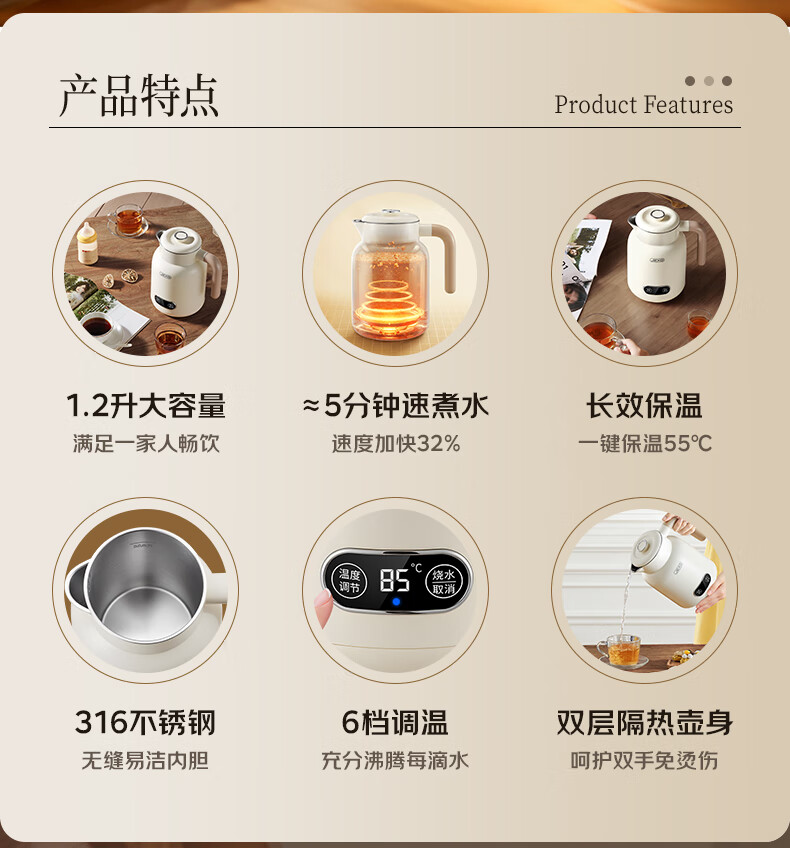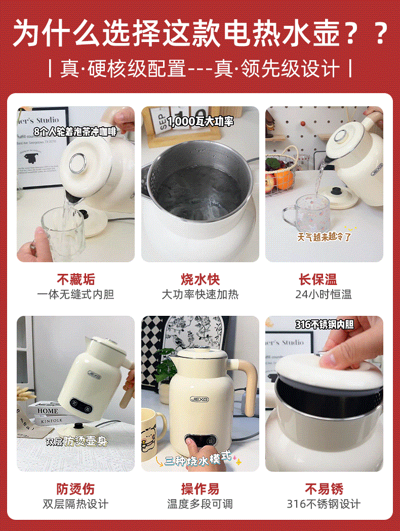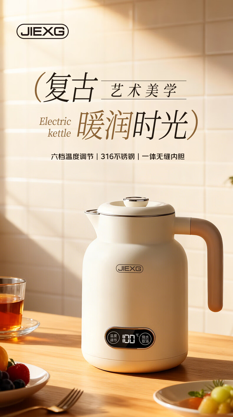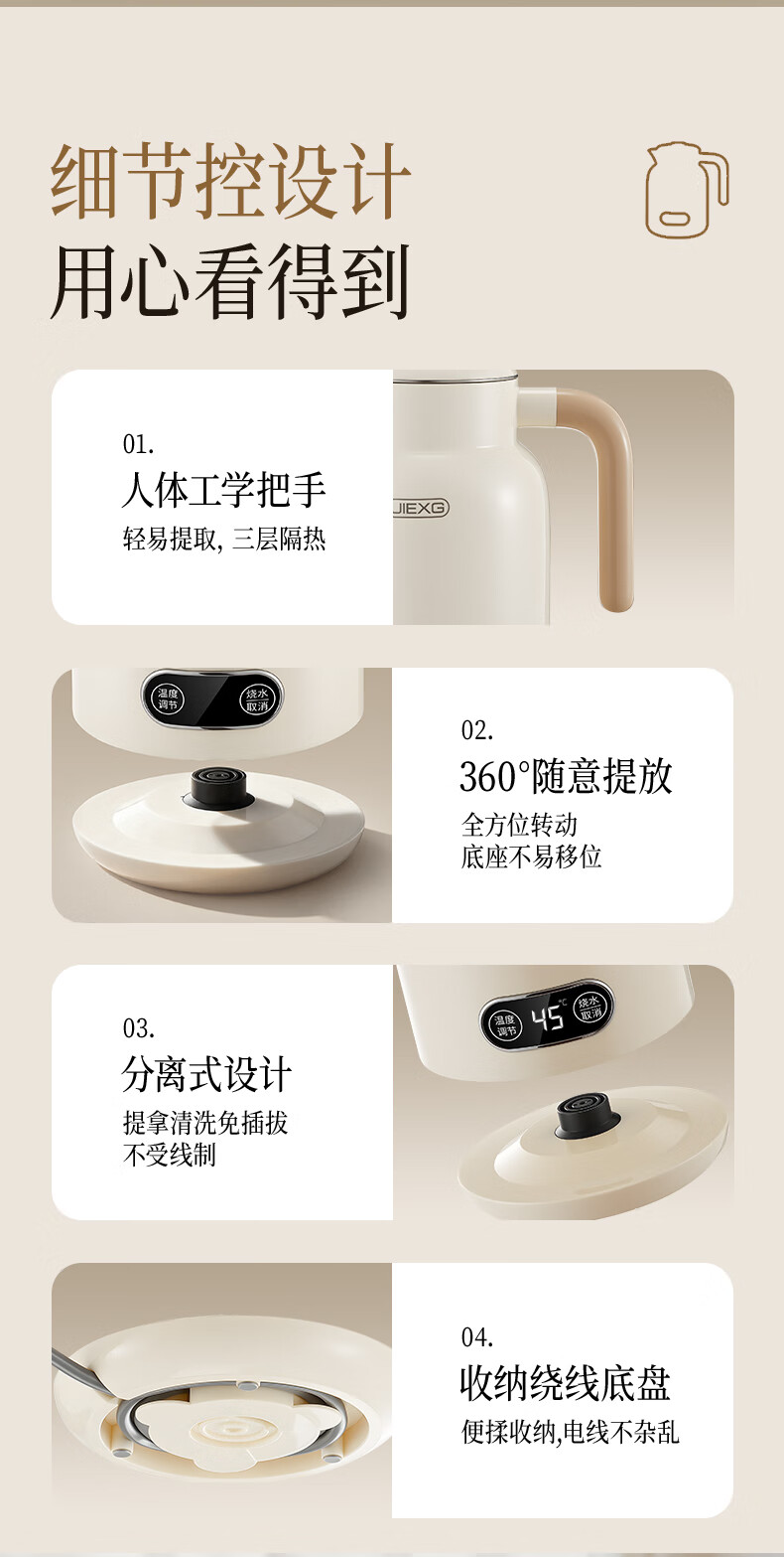 JIEXG德国电热水壶 烧水壶 智能烧水不锈钢电热壶电水壶开水壶全自动恒温壶婴儿冲奶保温一体无缝内胆 1.2L 【六档恒温保温】升级316无缝内胆