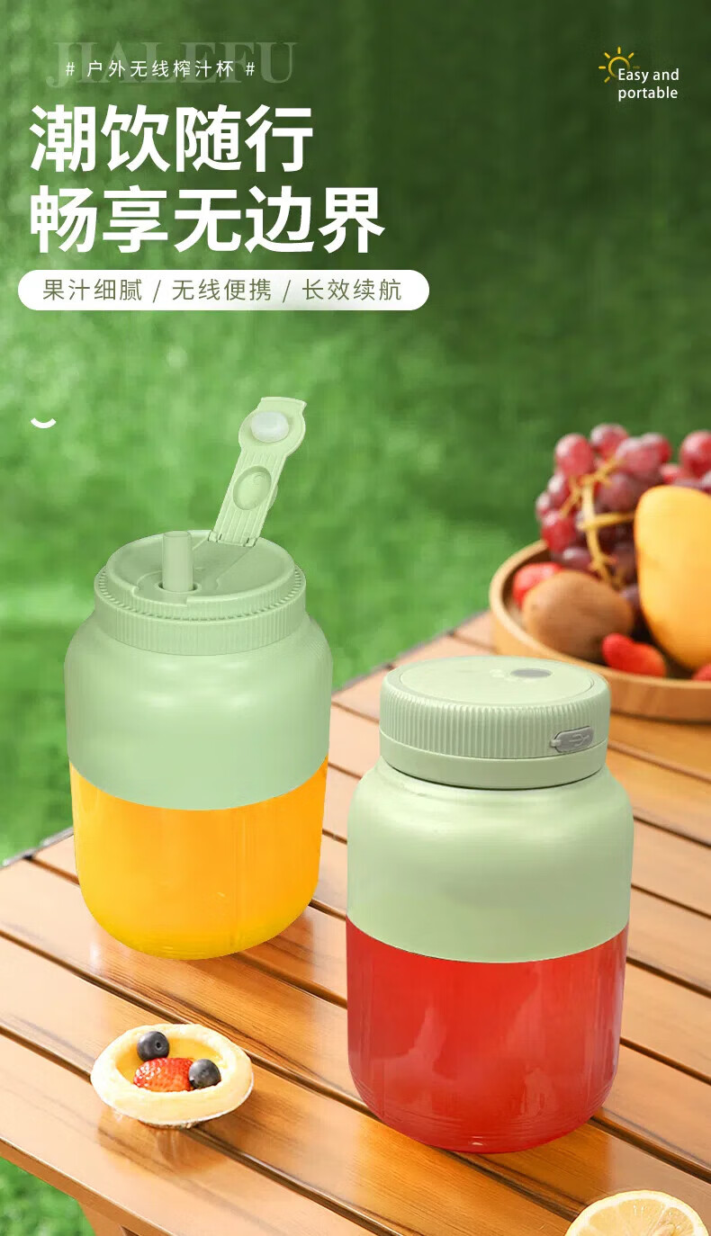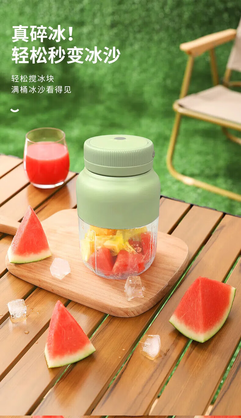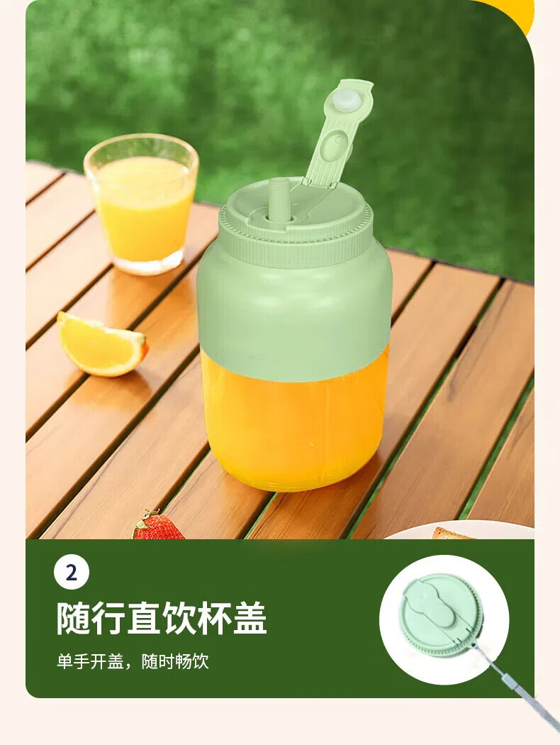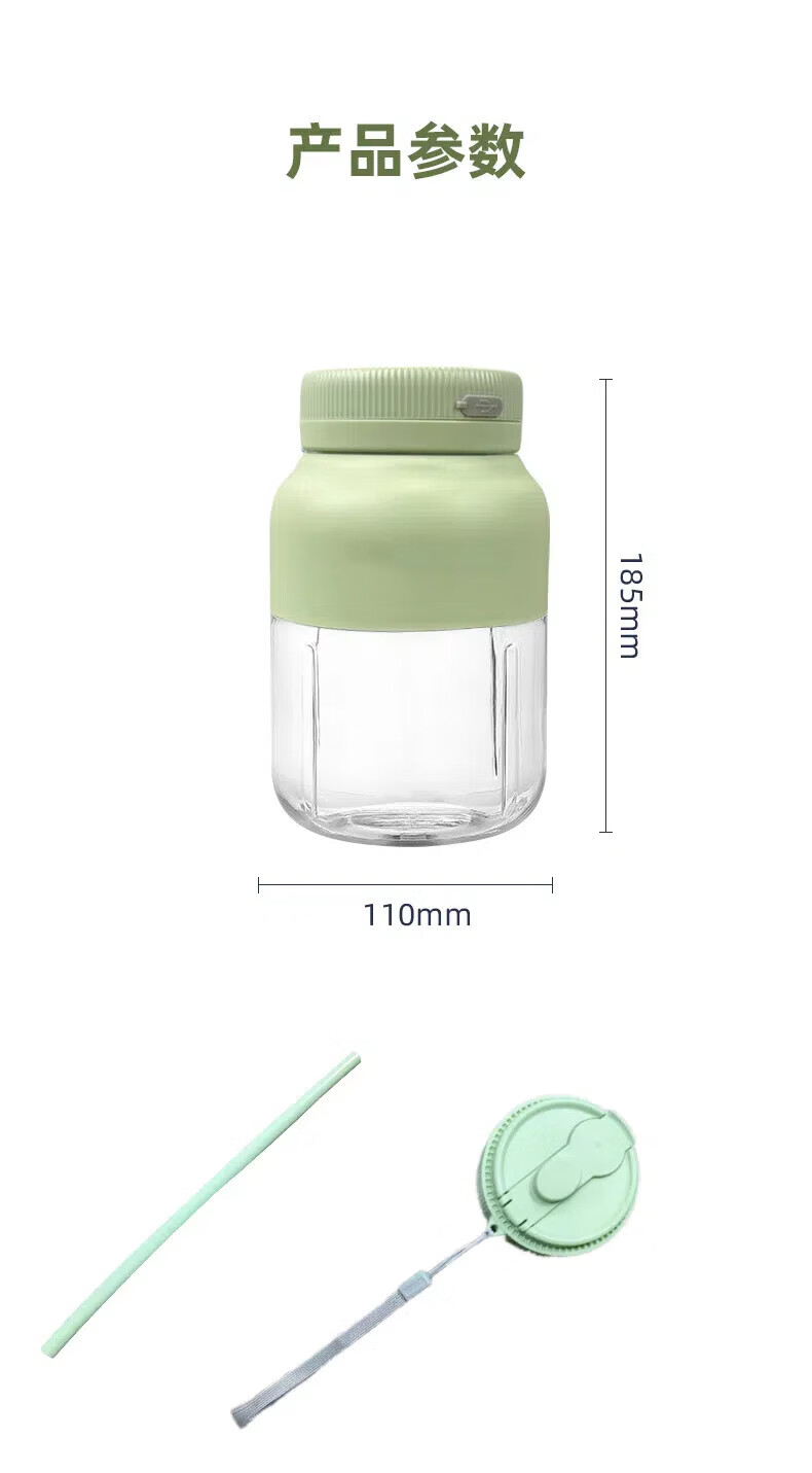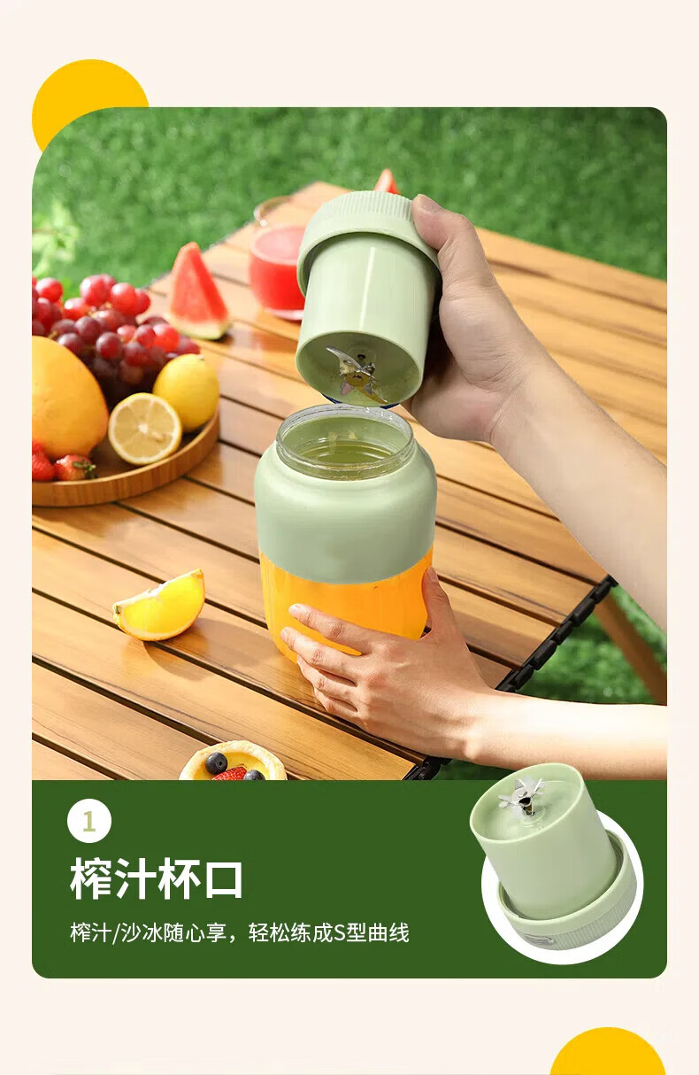 可携式榨汁机1300ML大容量38叶刀家用小型鲜榨汁吨吨杯搅拌碎冰奶 [1300毫升单杯双盖]浅绿色旗舰款