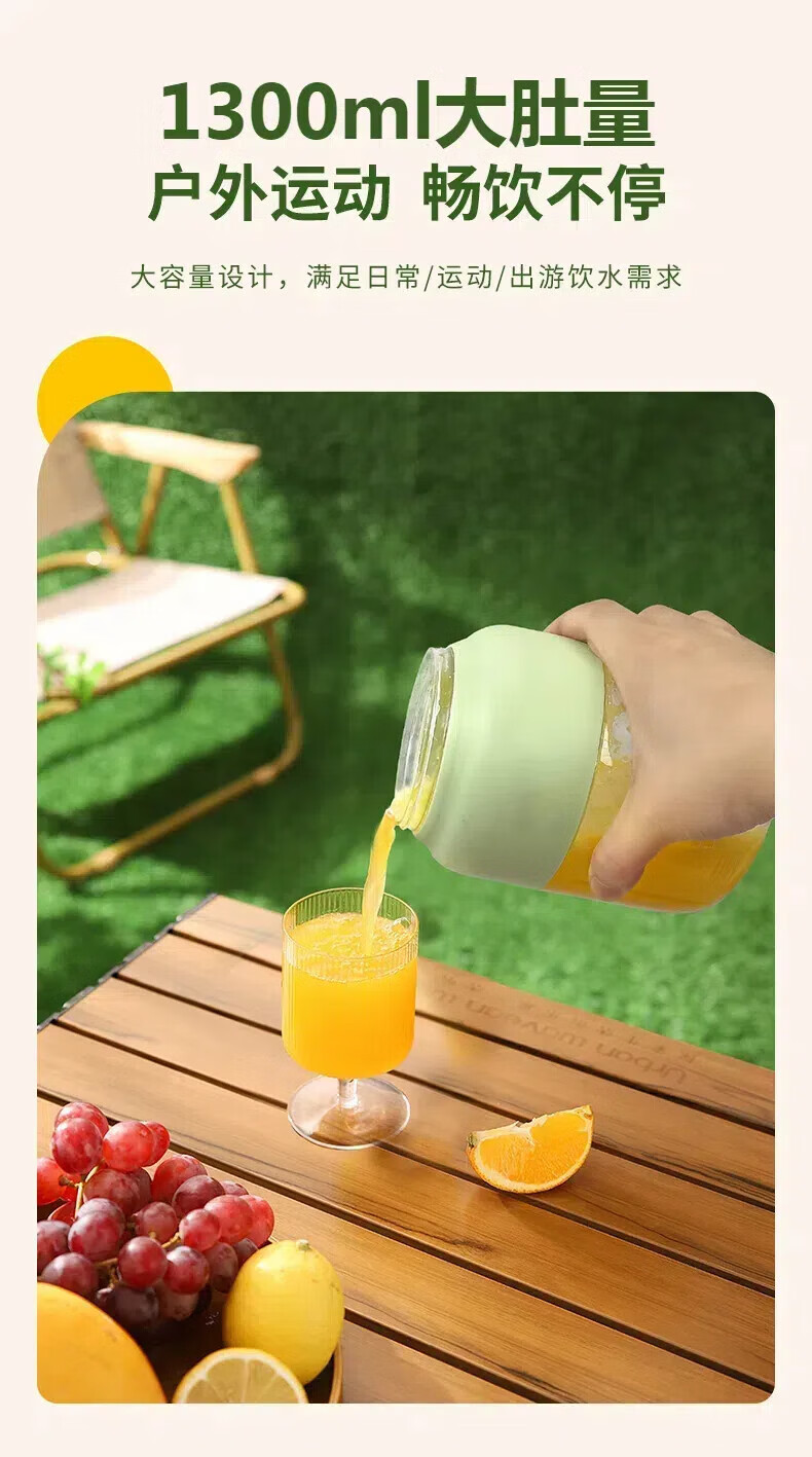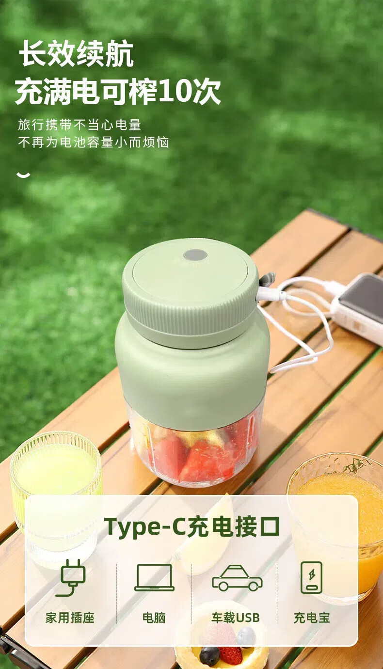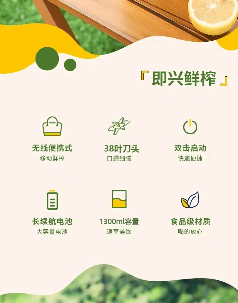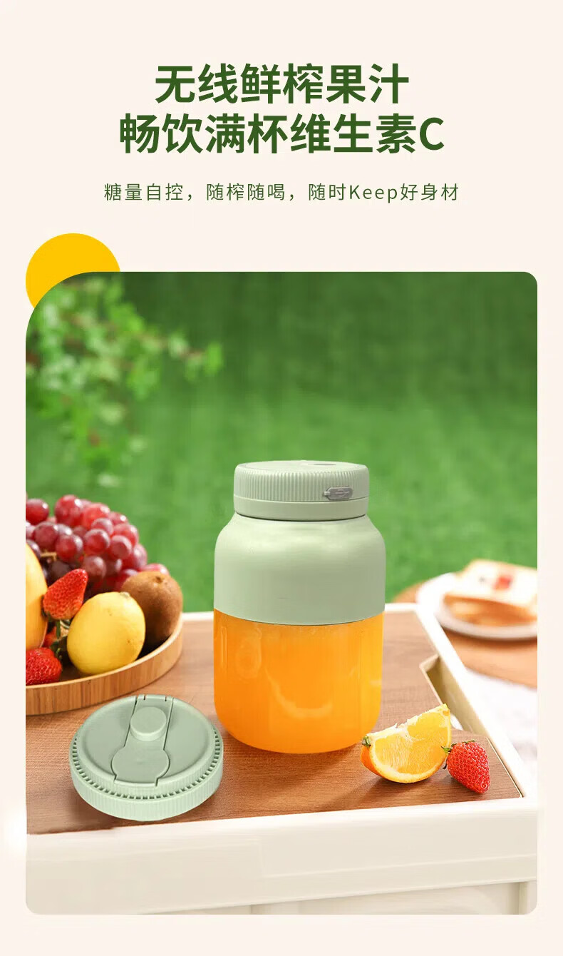 可携式榨汁机1300ML大容量38叶刀家用小型鲜榨汁吨吨杯搅拌碎冰奶 [1300毫升单杯双盖]浅绿色旗舰款