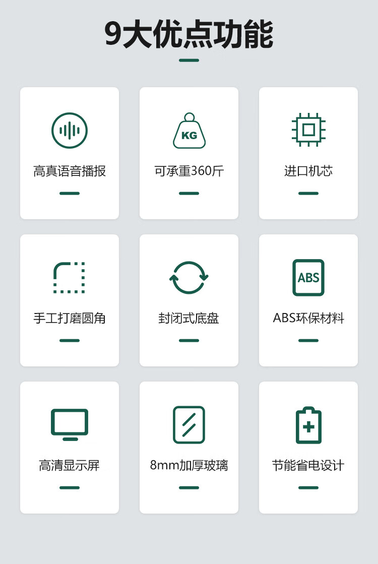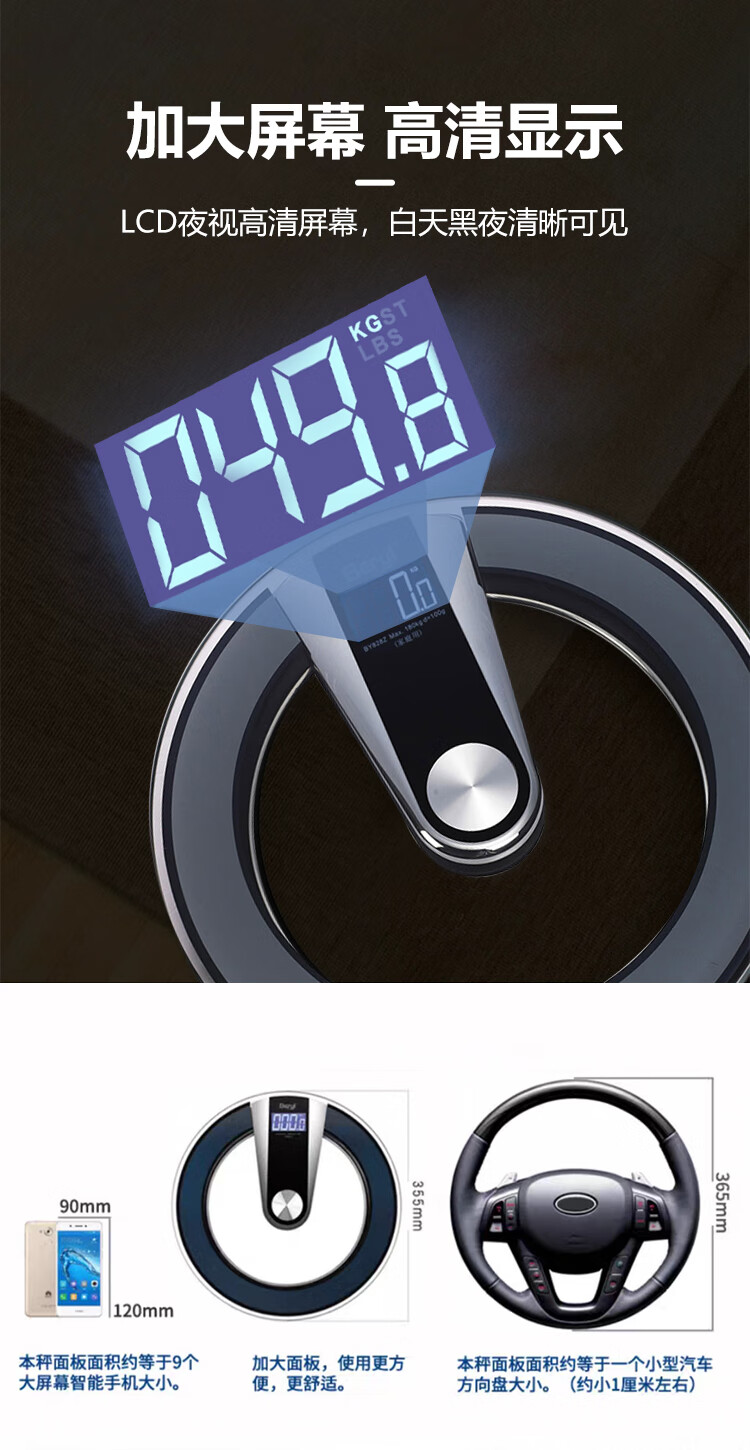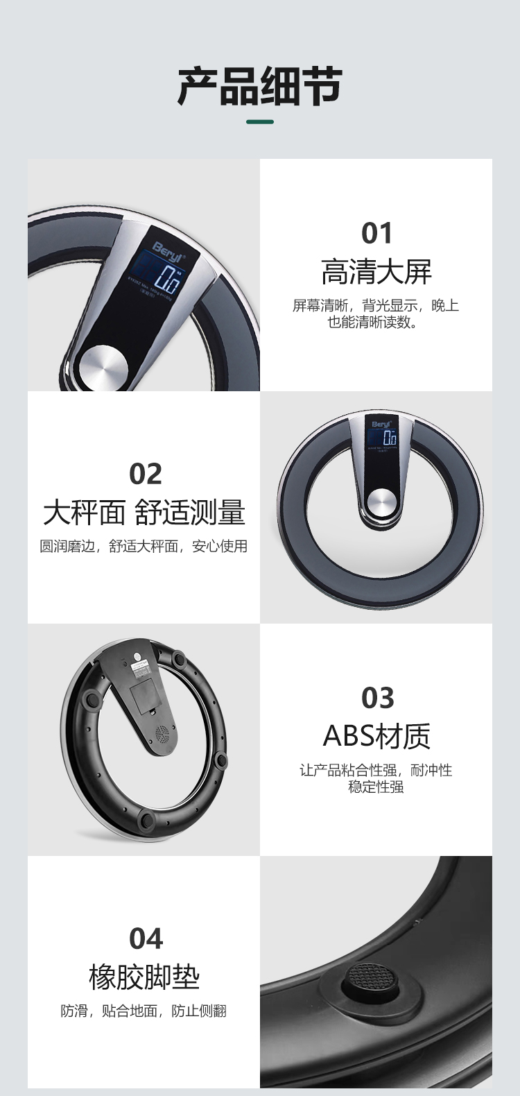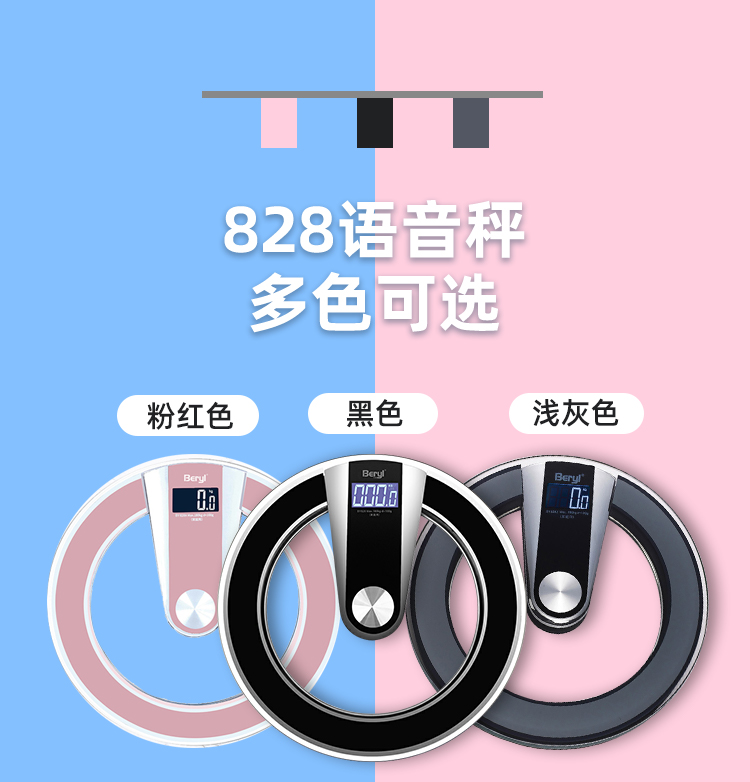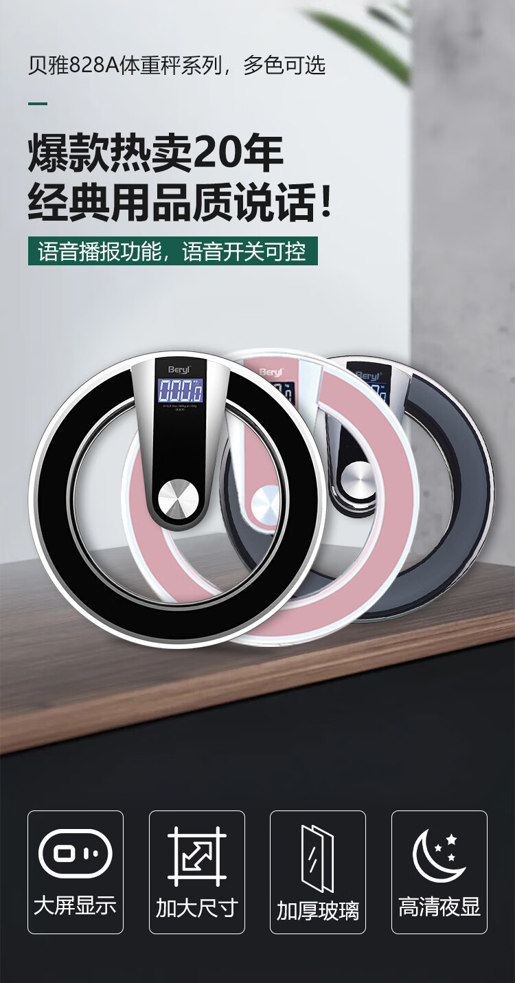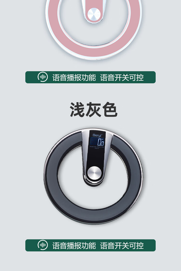 贝雅(Beryl)语音电子秤大屏高端质感钢化玻璃有语音带开关浅灰色BY828A /台 黑色有语音带开关