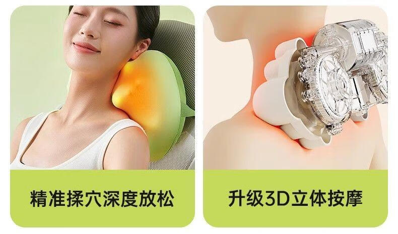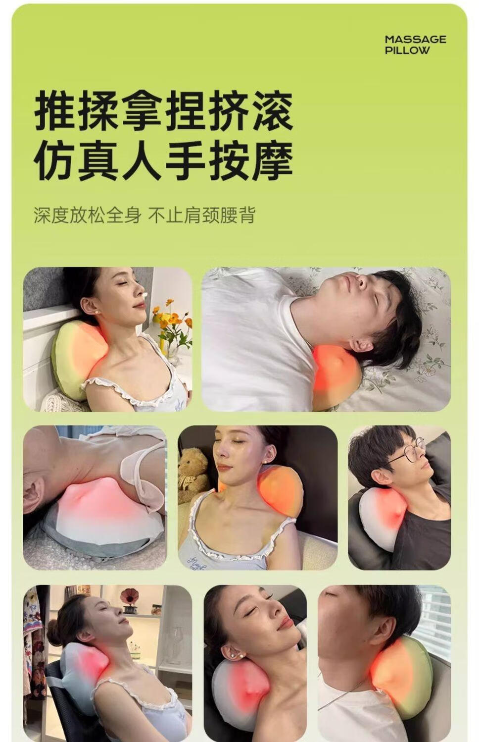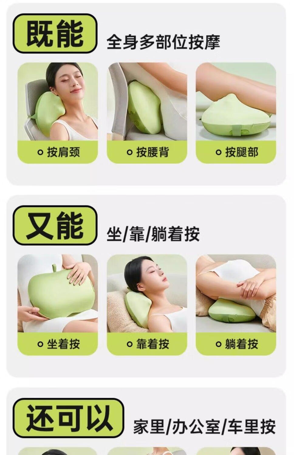 志高圣诞礼物颈椎按摩器全自动肩颈按摩枕头腰部按摩仪背部揉捏靠垫送父母长辈朋友礼品实用 绿色彩盒插电款【揉捏推拿+恒温加热】