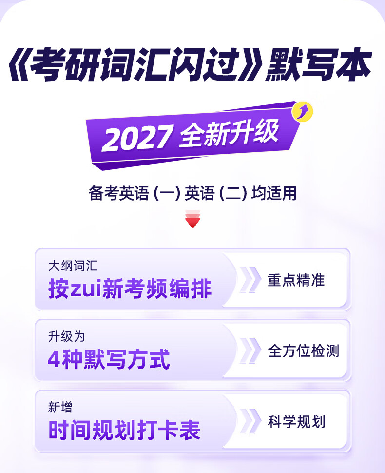 【官方旗舰店】2026/2027考研词汇闪过英语一英语二通用单词书默写本语法写作36法则长难句乱序版线装可平铺赠液晶版 2027【旗舰线装版】考研词汇+默写本(赠液晶版)