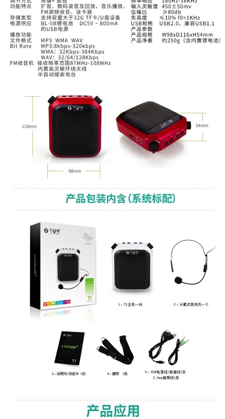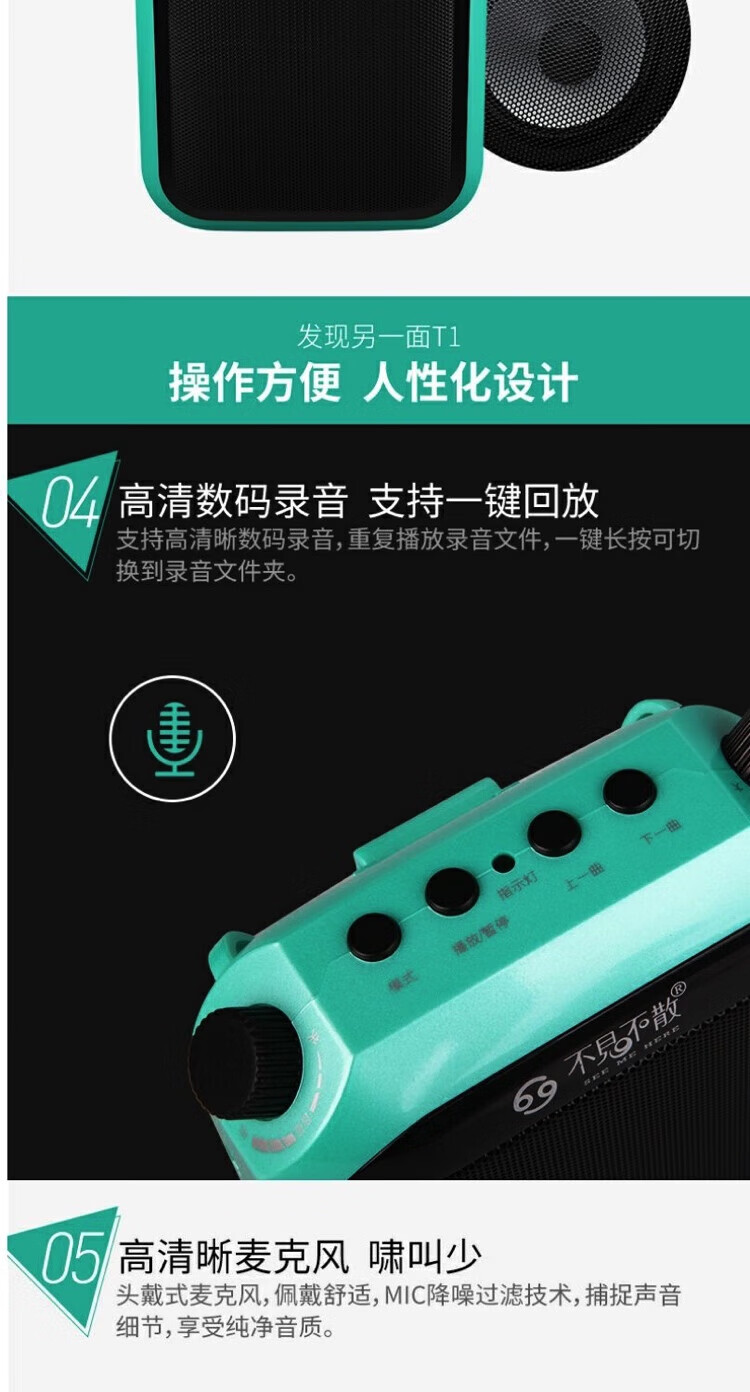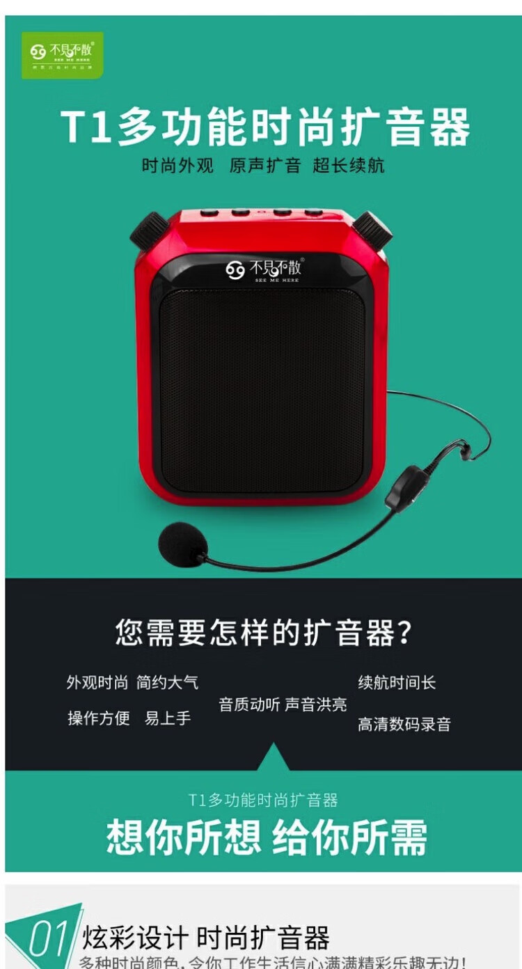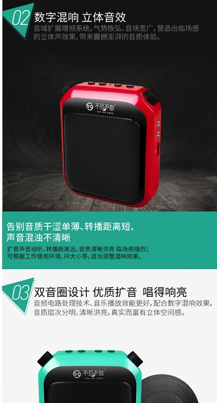 不见不散 SEE ME HERE 69T1小蜜蜂扩音器教师专用有线耳麦克风上讲课导游大功率喇叭扬声器 黑色(蓝牙版)