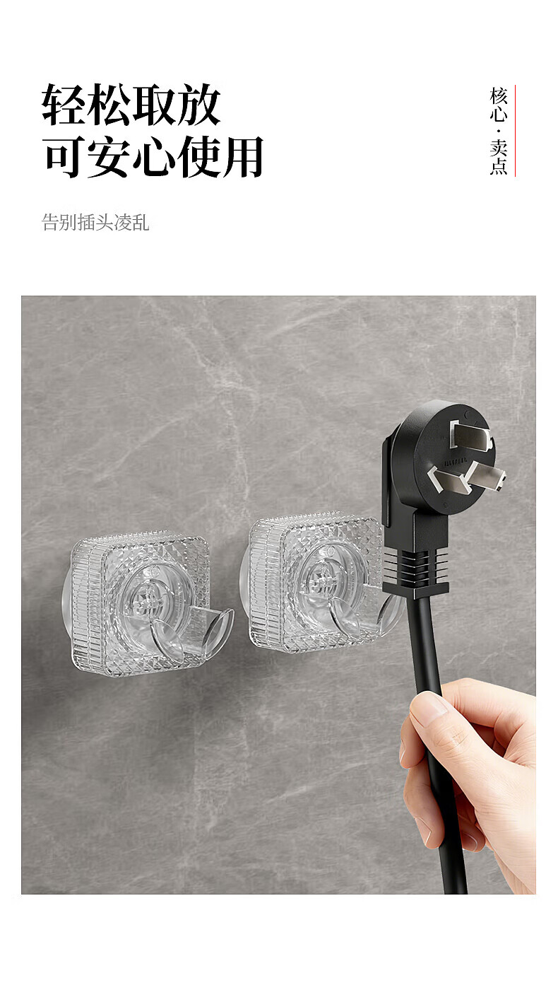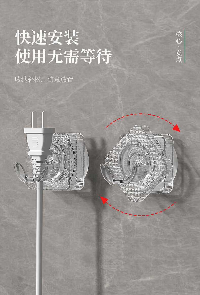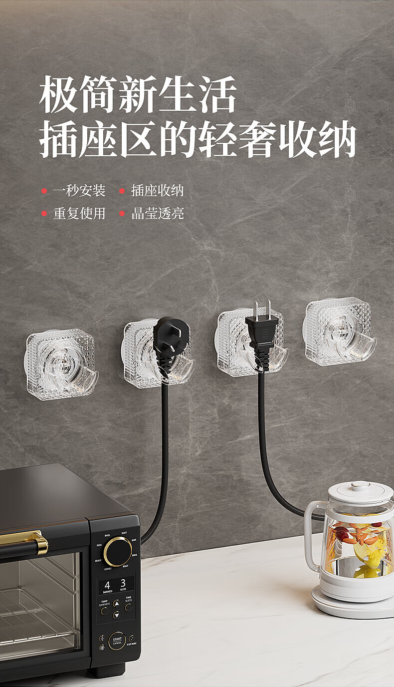 国际电工旋转吸盘挂钩插头固定器强力承重免打孔厨房插座电源多功能收纳器 插头收纳器【1只装】