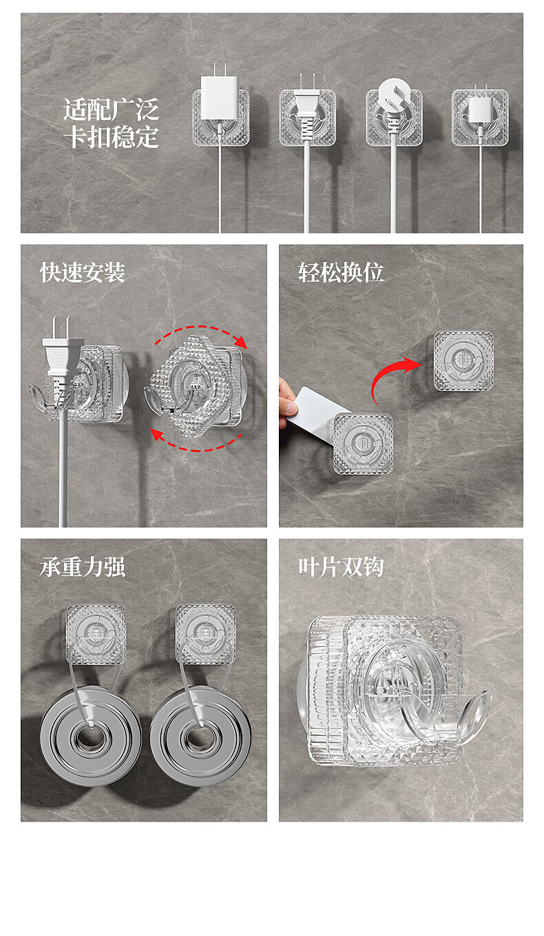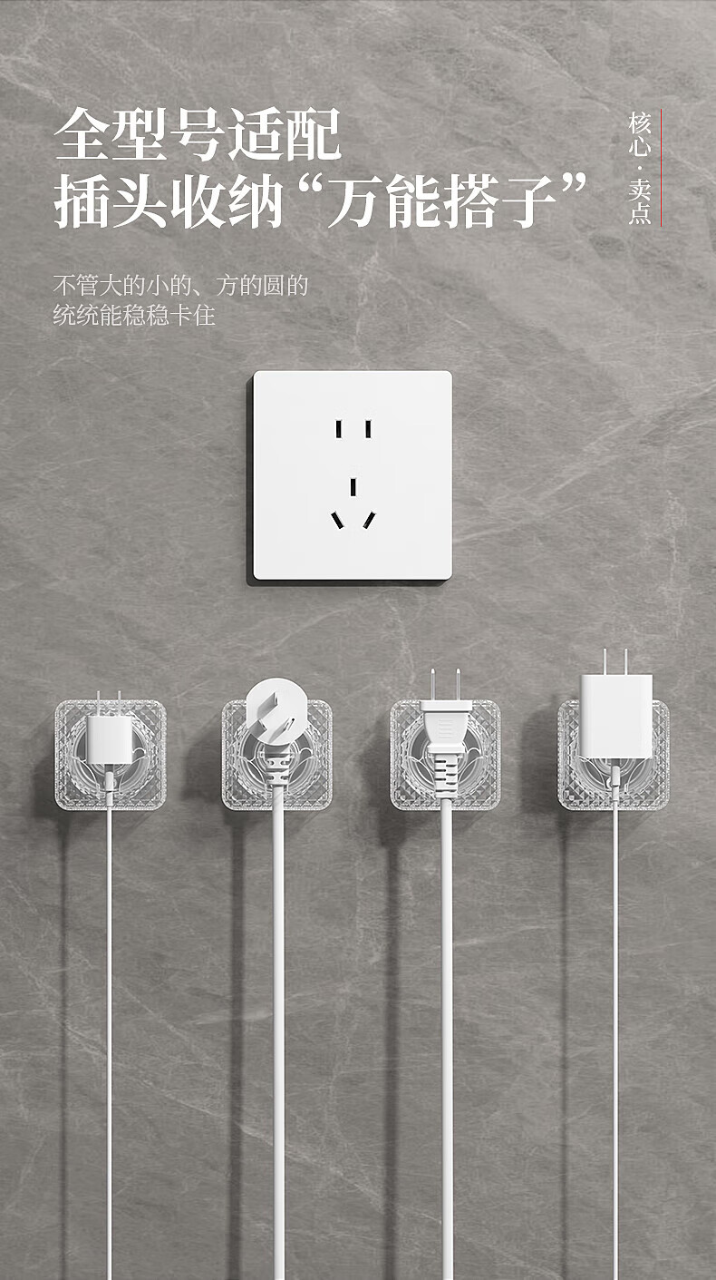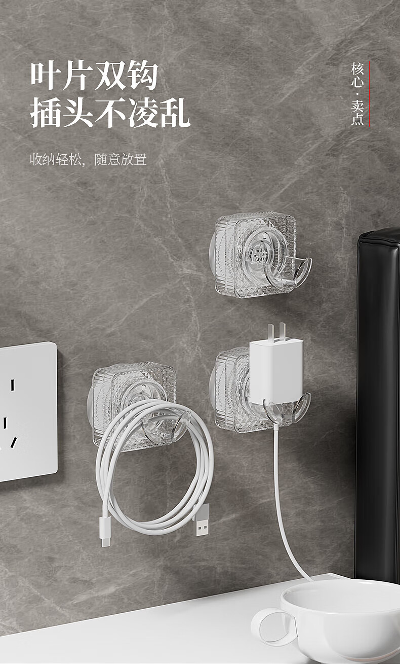 国际电工旋转吸盘挂钩插头固定器强力承重免打孔厨房插座电源多功能收纳器 插头收纳器【1只装】