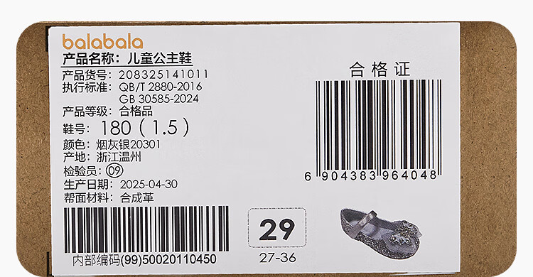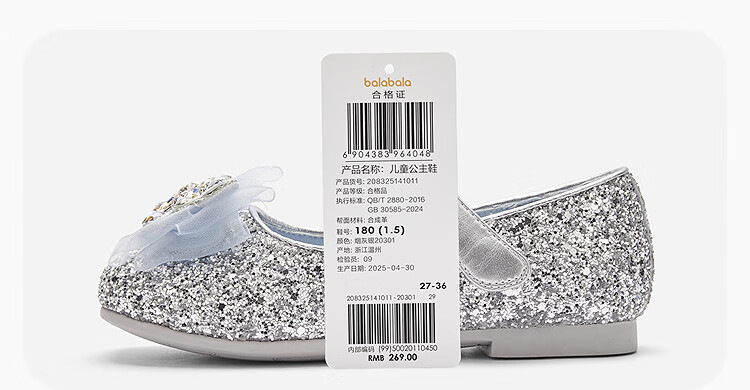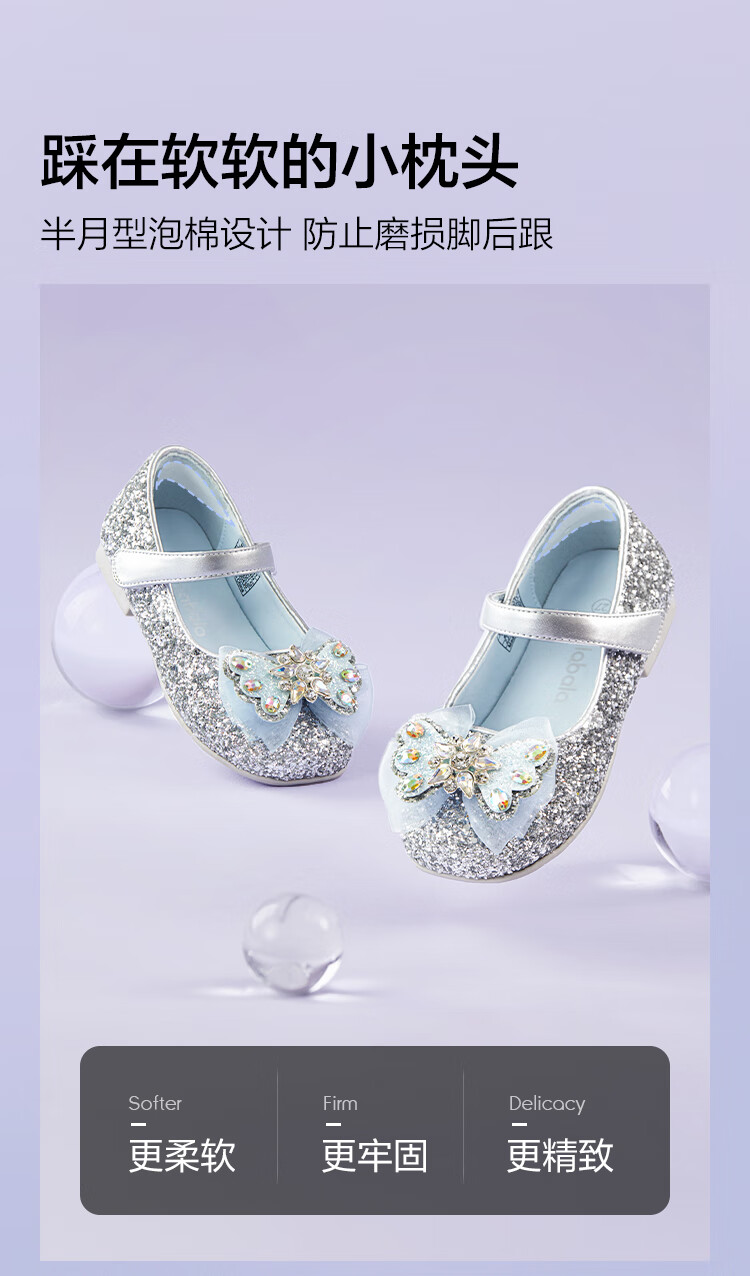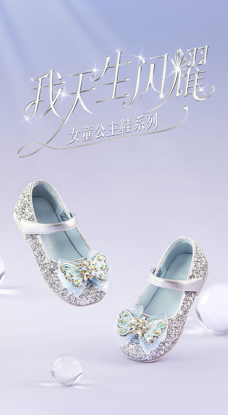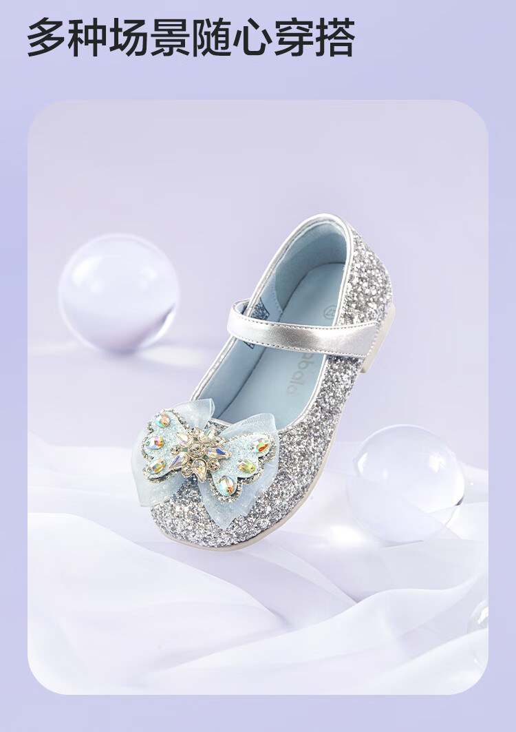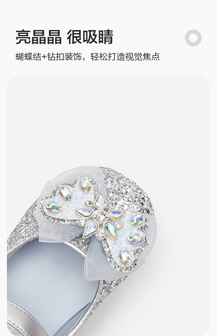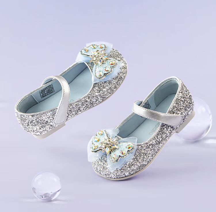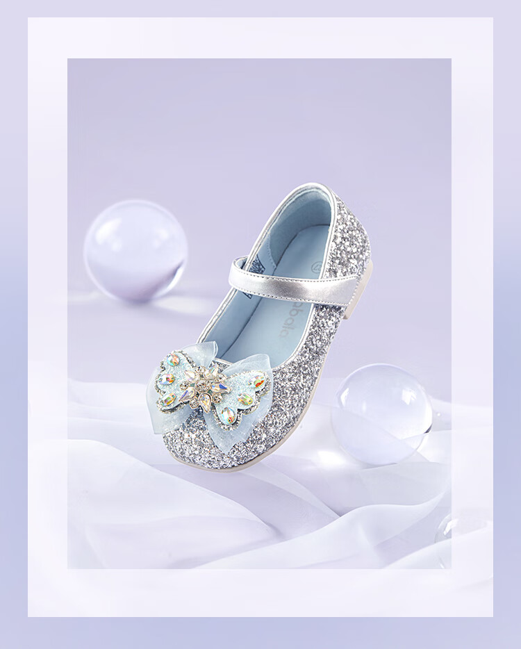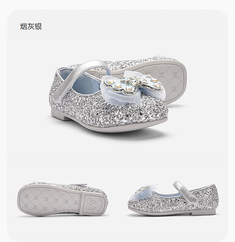 巴拉巴拉童鞋女童公主鞋春秋鞋子儿童蝴蝶结凉鞋洋气甜美 烟灰银20301 28 (脚长16.8-17.2/内长18.4)