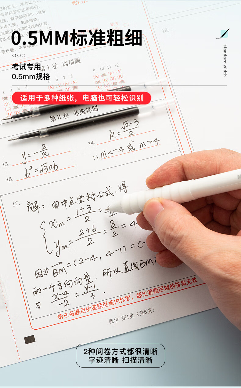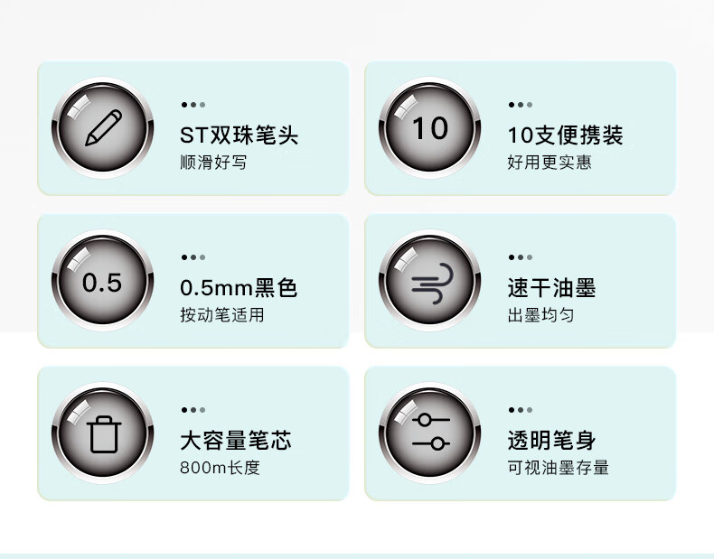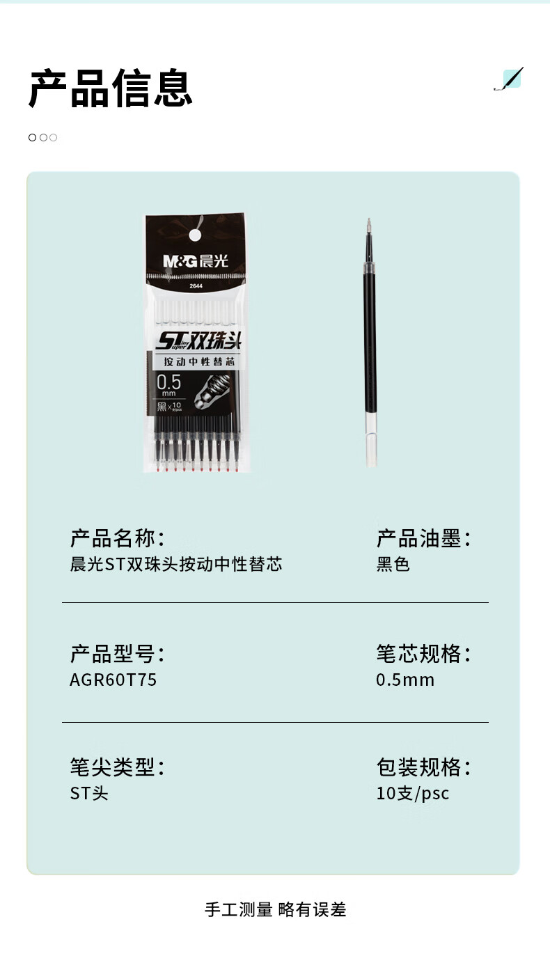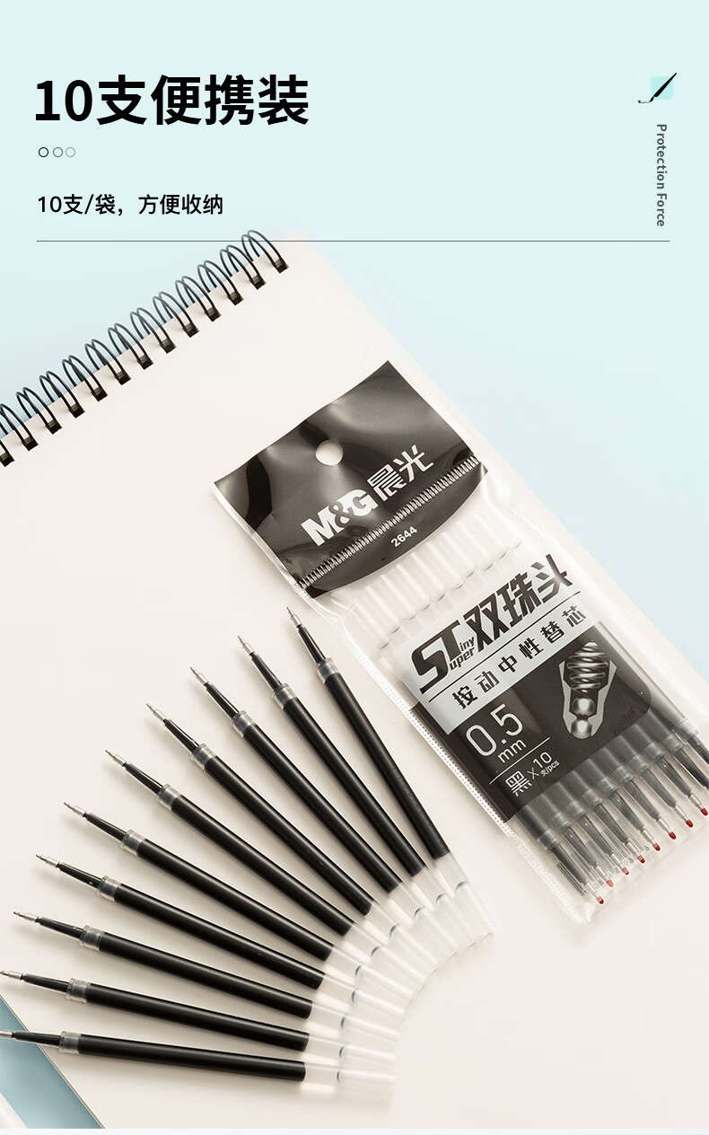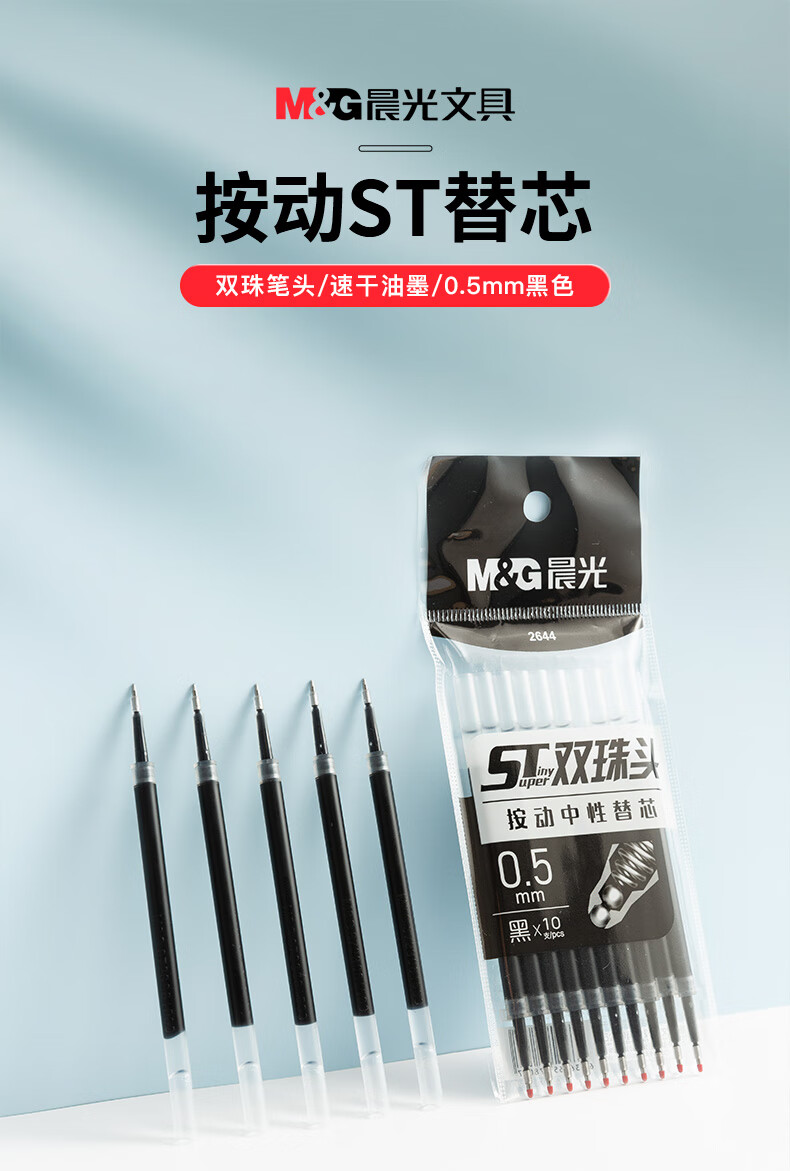 晨光(M&G)文具0.5mm黑色按动中性笔替芯 秒干ST头学生考试水笔芯 双珠双倍顺滑办公签字笔芯 10支装2644A