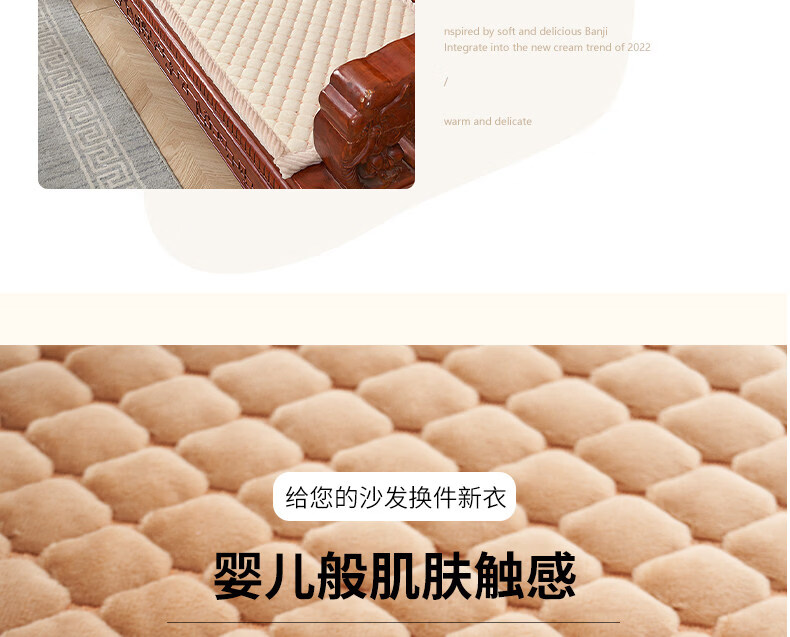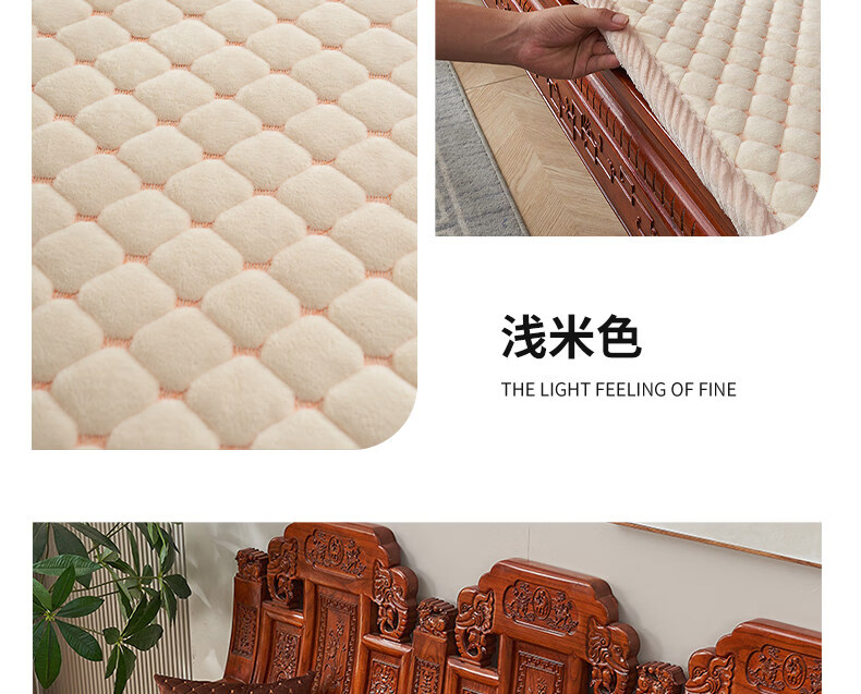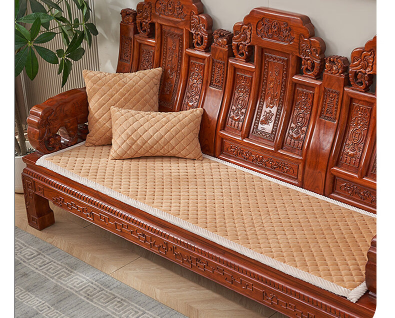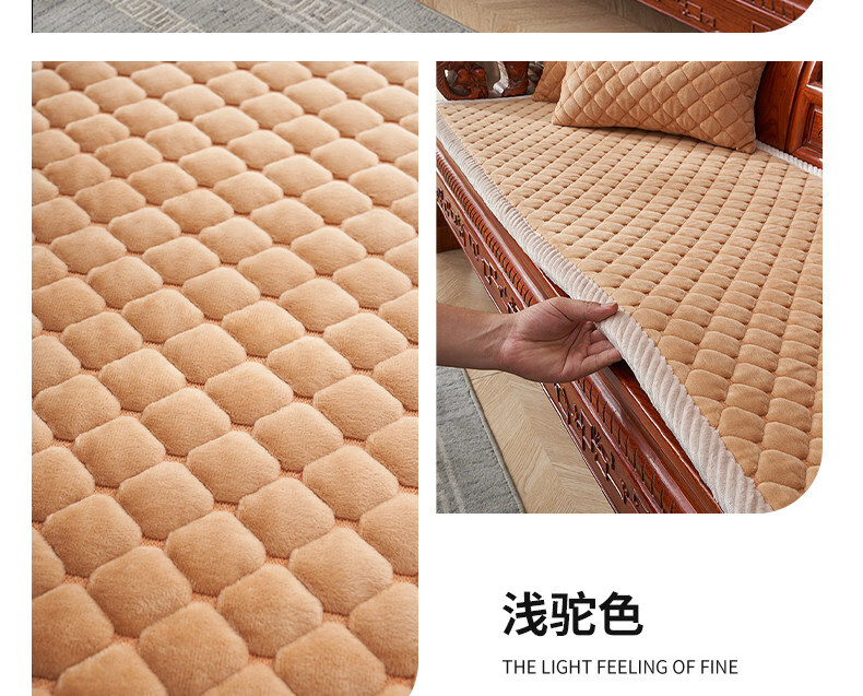 正圣直排沙发垫三座加厚红木冬季毛绒椅垫实木椅子座垫防滑实木沙发垫 牛奶绒浅驼色【加厚款】 1cm*1cm 定制联系客服需改价